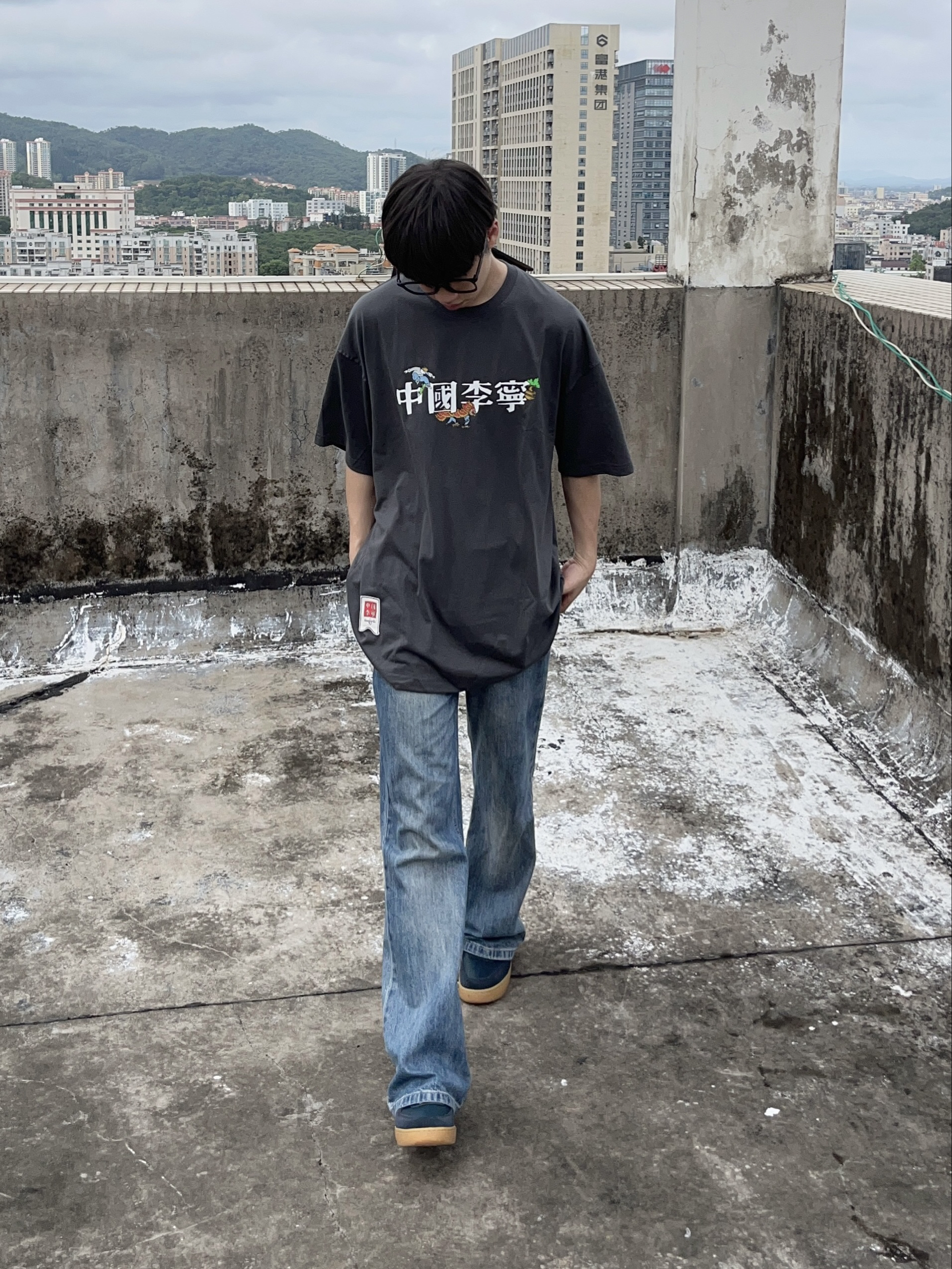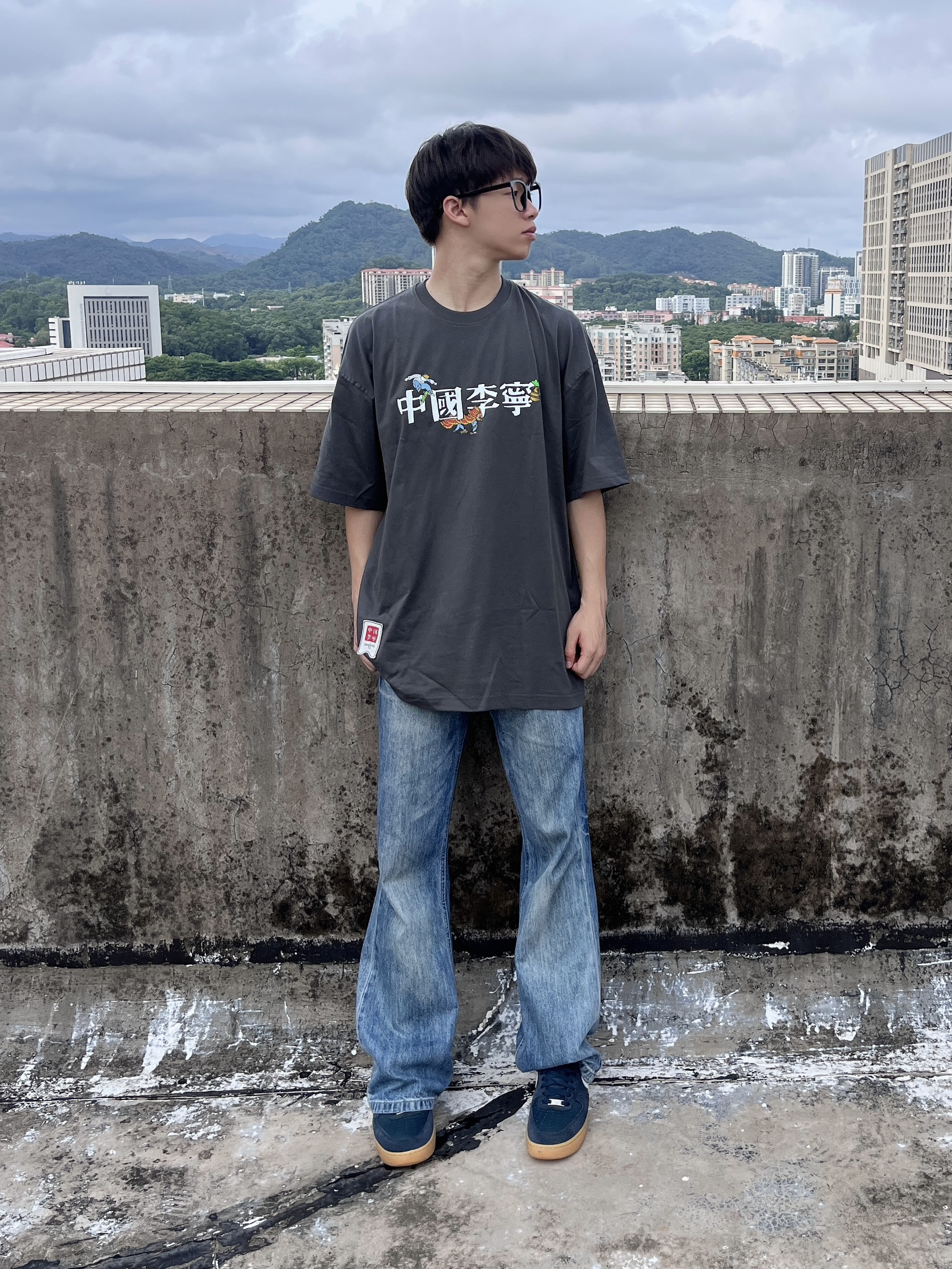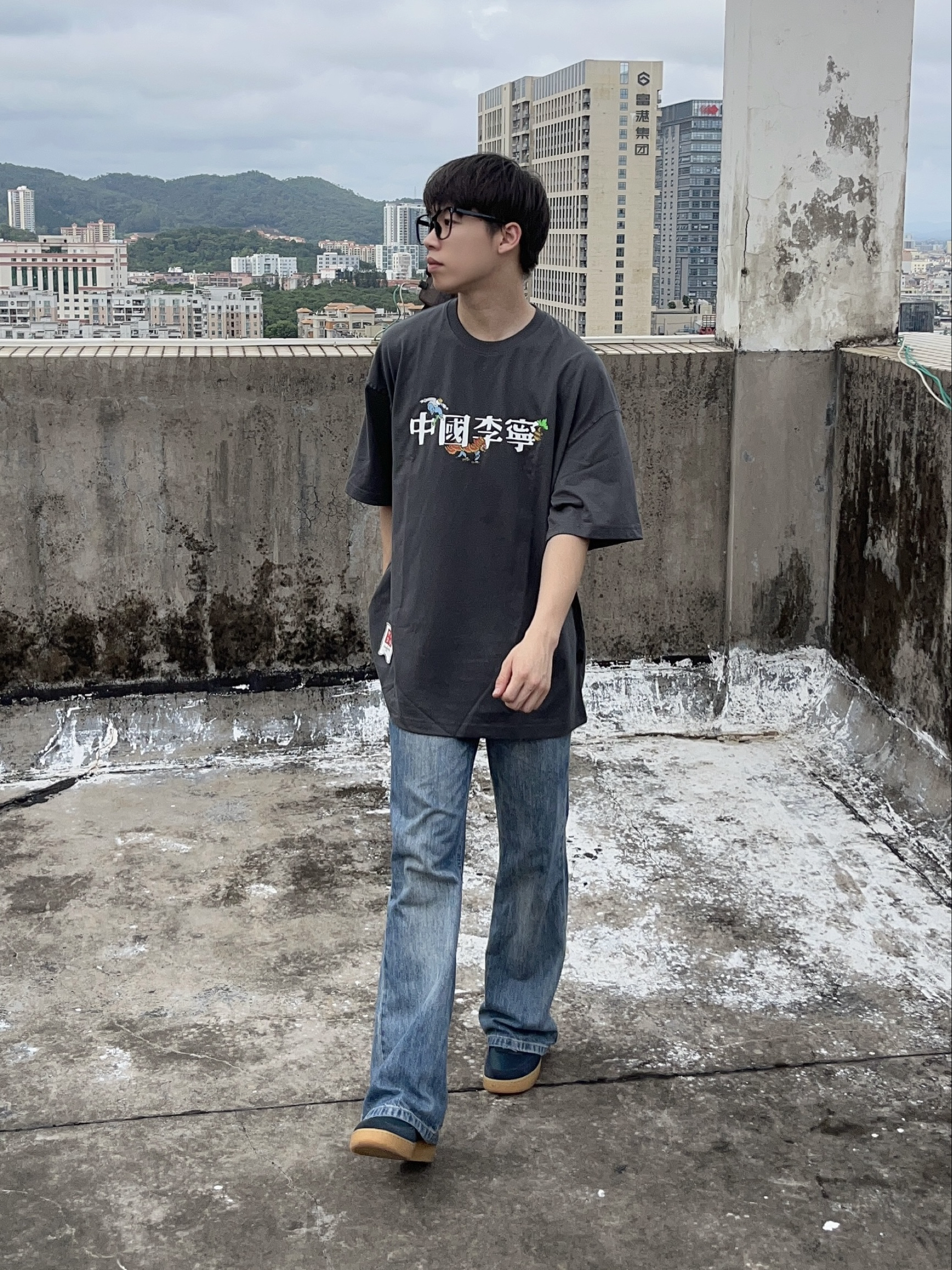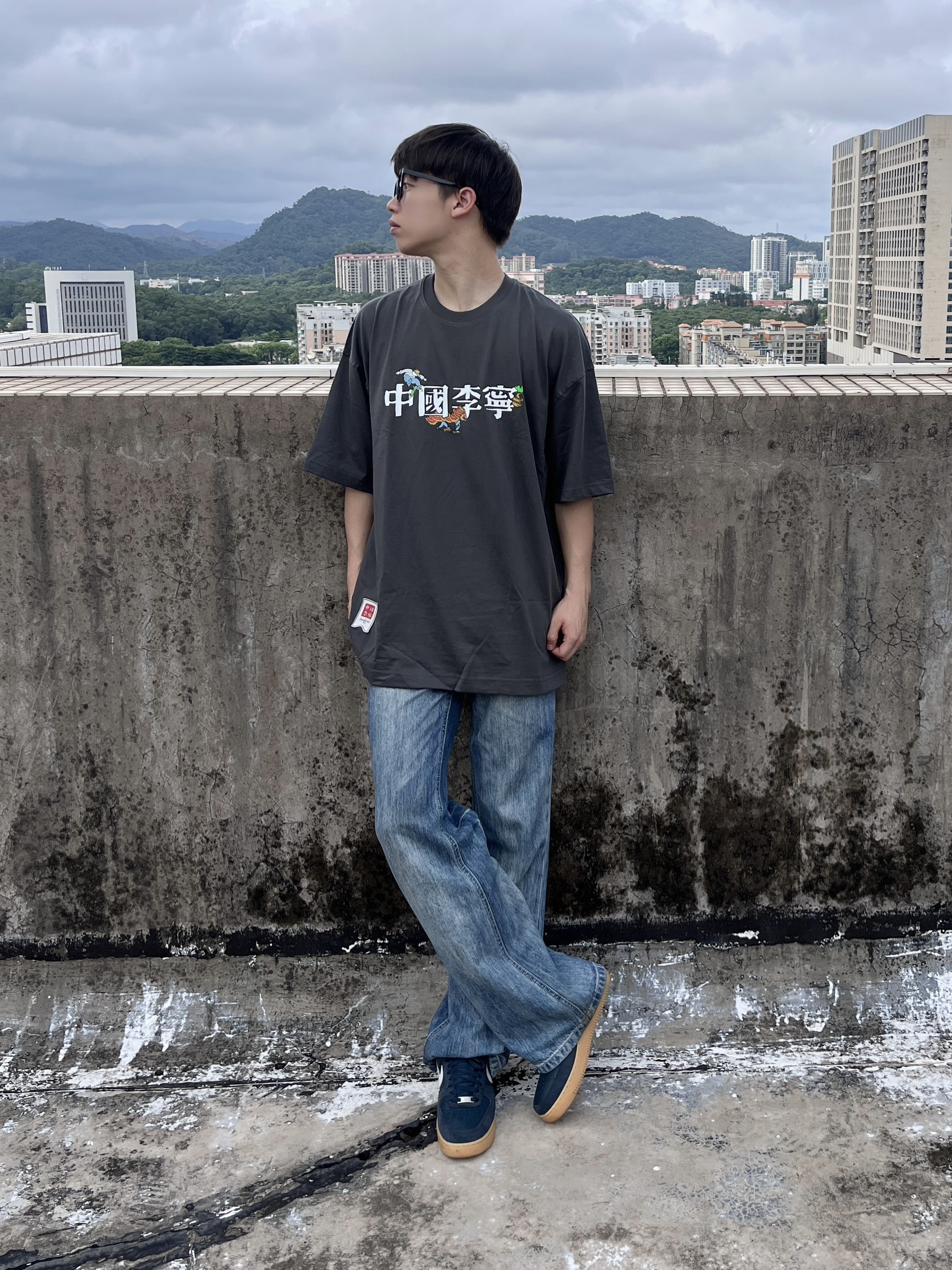 今日份穿搭分享look👀 衣服是 中国李宁 × Henry Jones 艺术家联名款煤烟灰美式短袖👔 植物花卉印花简约时尚🔥 面料舒适透气 版型宽松又显瘦 再搭配一条水洗蓝牛仔裤 一套搭配下来 夏日出街百搭又好看🚶