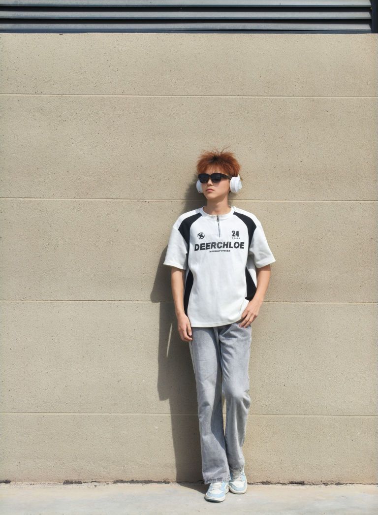 今日份穿搭分享look👀 衣服是 NSTNEW START 白色美式短袖👔 贴布映象logo复古时尚 面料舒适有质感🔥 再搭配一条水洗蓝直筒牛仔裤 一套搭配下来 夏天出街做最靓的仔🌟