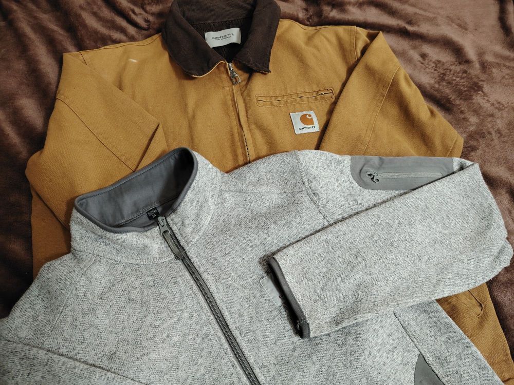 卡哈特经典工装风,复古又硬朗,棕黄配色自带街头感,灰色那件简约休闲,两件风格不同但都很有质感,搭一起还能玩叠穿,轻松穿出潮流范儿,很适合日常出街或者打造美式复古look~