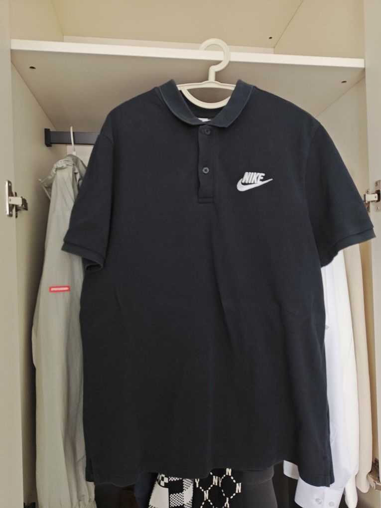 炎炎夏日,相信大家都很纠结怎么选择通勤的衣服,我来推荐一下😘: #Nike 的这件polo衫就很不错,版型很正,穿在身上给人干净利索的感觉,而且修身,和休闲短袖完全两种风格!🤩 面料透气、吸汗,通过图片可以看到网眼,出汗后吹一吹就干了吧,下身搭配黑色休闲裤就🉑以啦 万针刺绣的logo,洗很多次也不用担心会掉👿 尺码推荐:本人身高175cm,体重165斤,推荐L码,刚好合身!🏷️