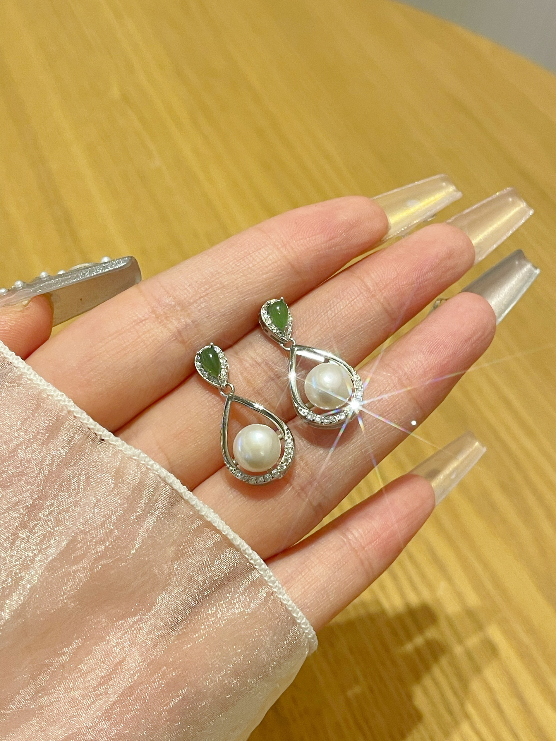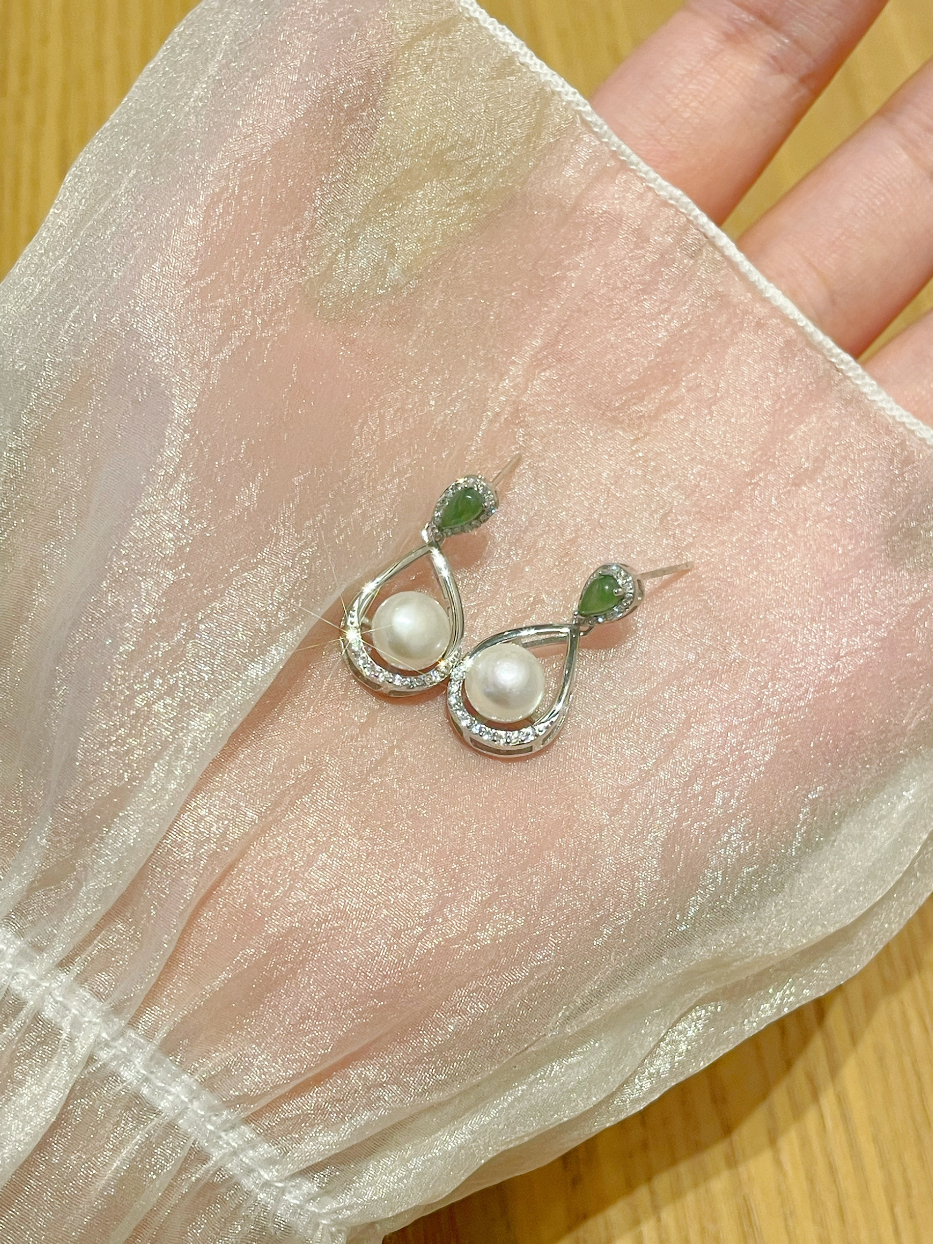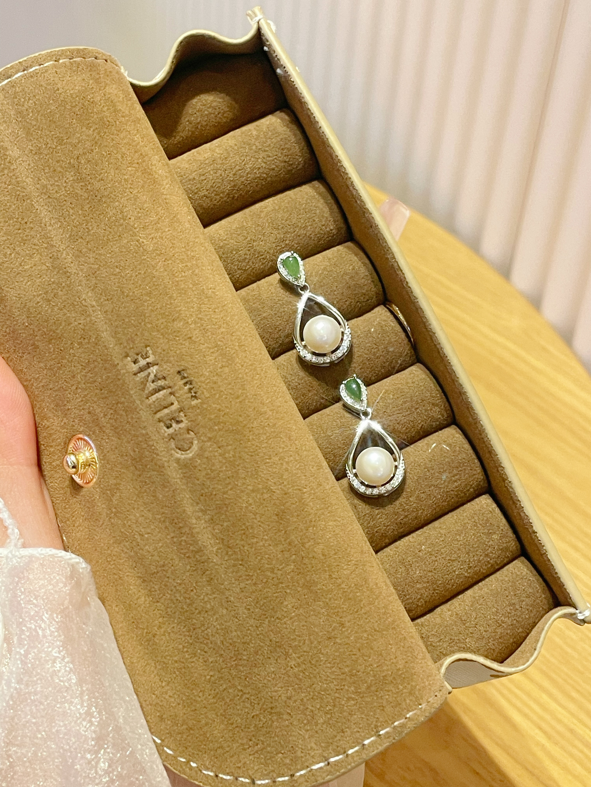 介个耳钉周围镶满锆石,阳光下blingbling的 淡水珍珠圆润饱满 戴上敲显脸小 平时搭配旗袍或者小裙子都敲美