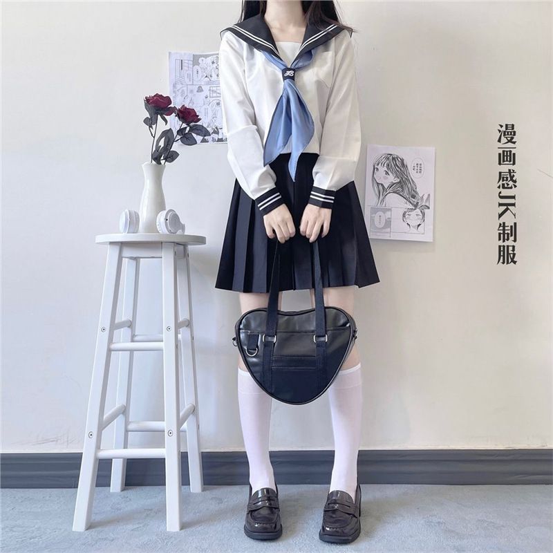 原创JK基础款校园漫画制服套装白二本学院风校供感水手服女校服 穿搭