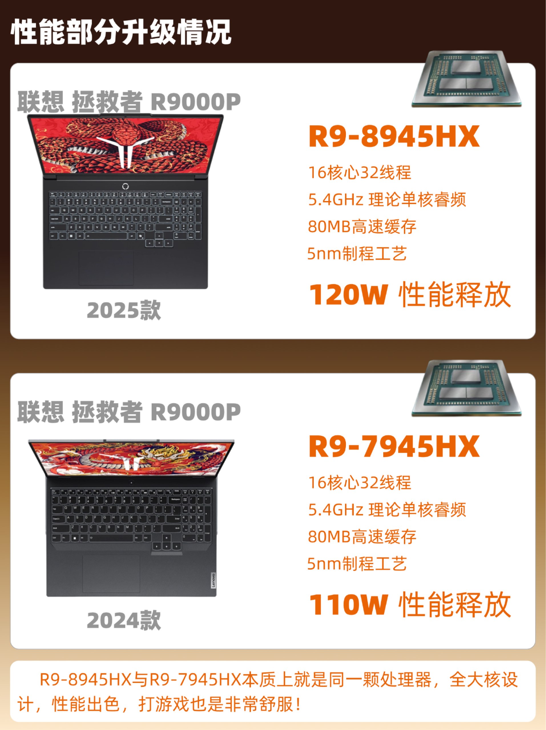在联想 拯救者系列中要说既有性能价格又相对划算的机型有哪些?那联想 拯救者 R9000P 2025款也许真的值得考虑一番~ 相比2024款又有哪些提升?看完这篇你就明白❗️ - ✅主要升级点: 1️⃣外观方面 2025款采用了新模具,「碳晶黑」配色相比上代「碳晶灰」配色更有质感,但会比较容易沾染指纹同时接口移至左右两侧,用起来更合理更舒服👍🏻 2️⃣处理器方面 2025款搭载R9-8945HX...