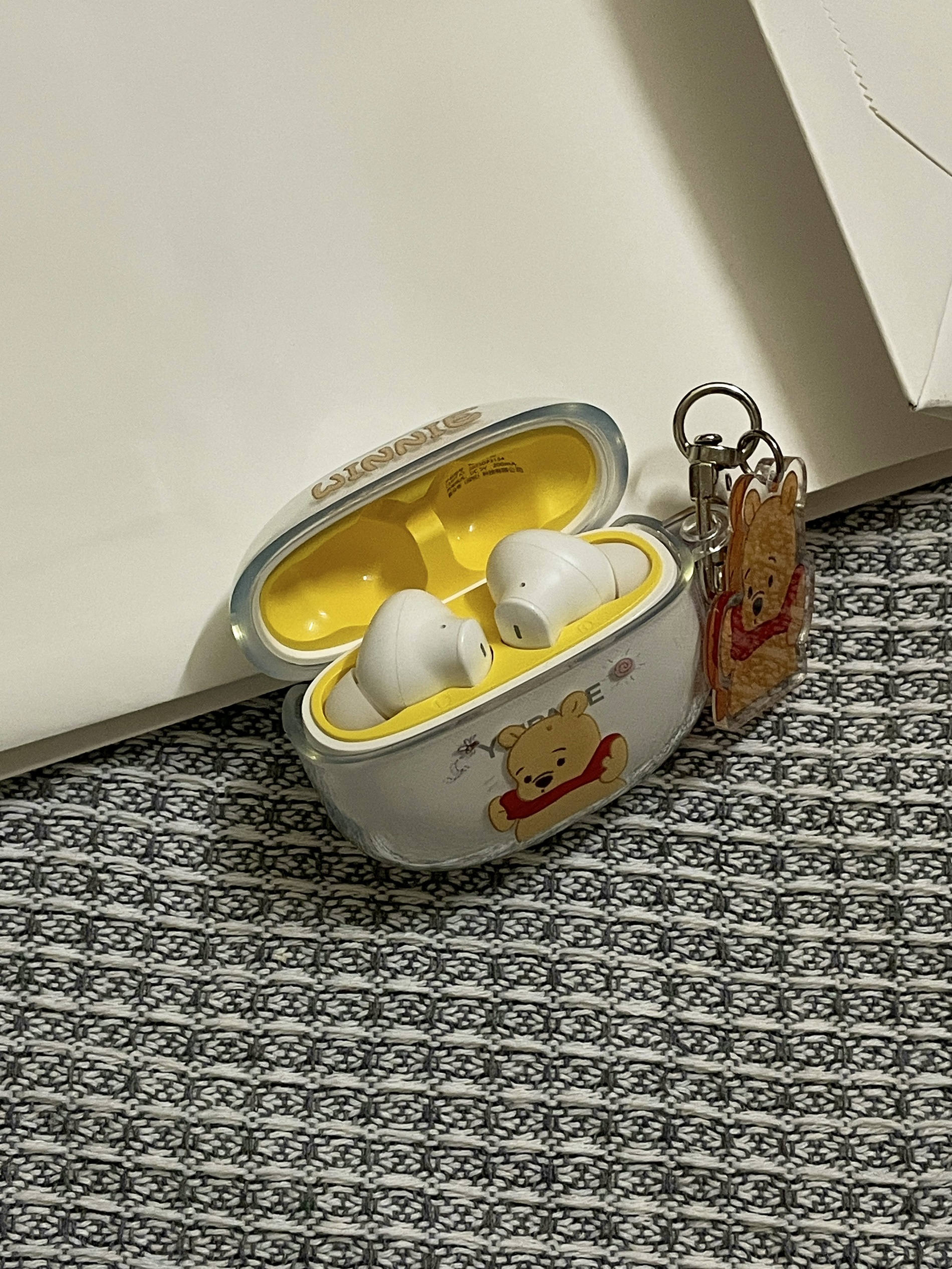 高颜值耳机,这个保护套是我自己买的,这个裸机也很好看,白色外壳内里是橙色,两只小小的适合小耳朵的朋友们戴,音质很好,没有杂音,但是放大声一点会漏一点声音,不影响!!声音比较明亮,不是那种闷沉的,价格也十分优惠,适合学生党,推荐推荐