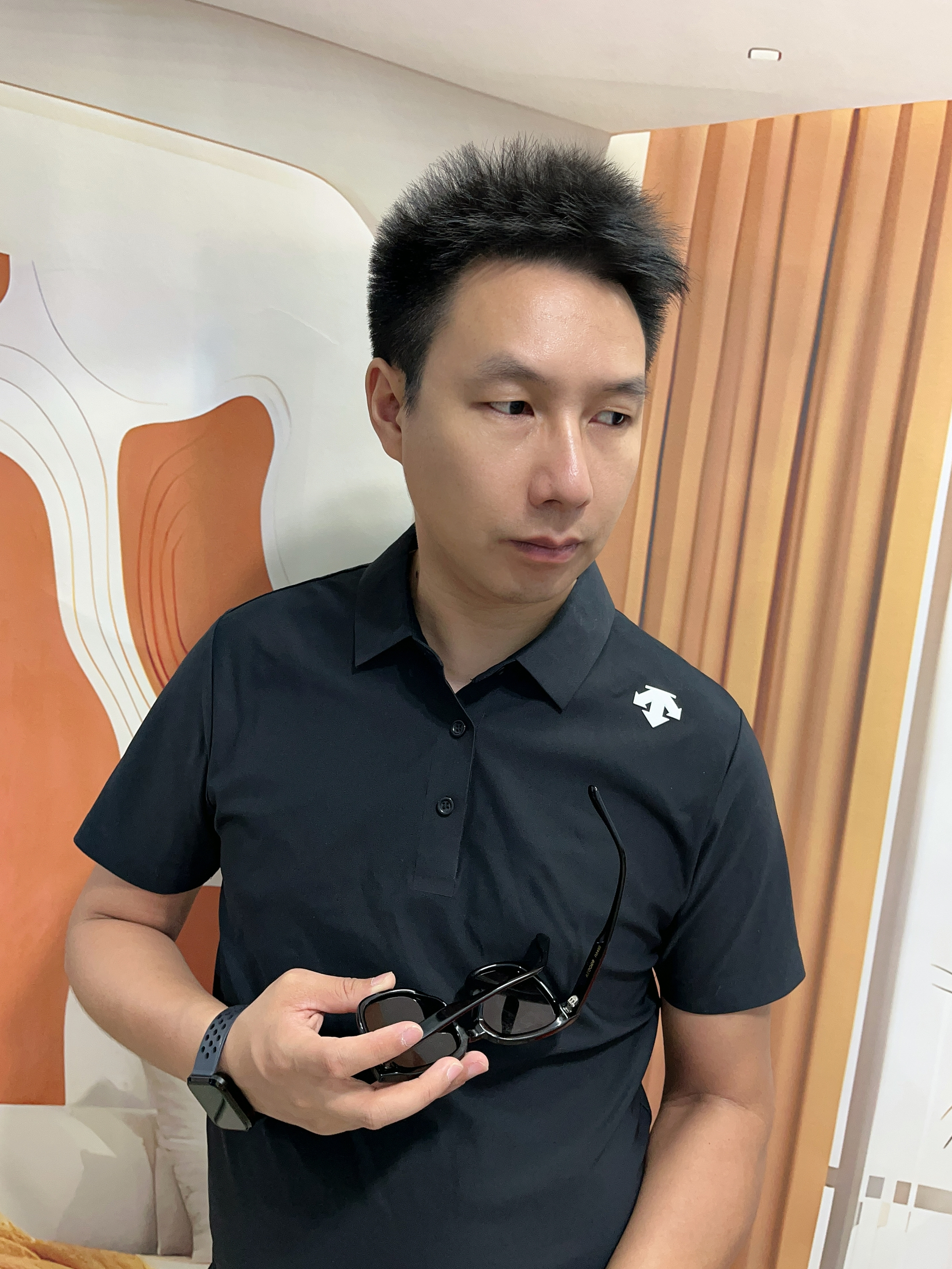 真没想到,一整套黑色穿搭也可以这样! 上衣黑色polo衫 透气舒适不紧绷 修身显瘦还不勒的慌 再搭配黑色墨镜 简易不要太帅了 这身搭配可还行吗?