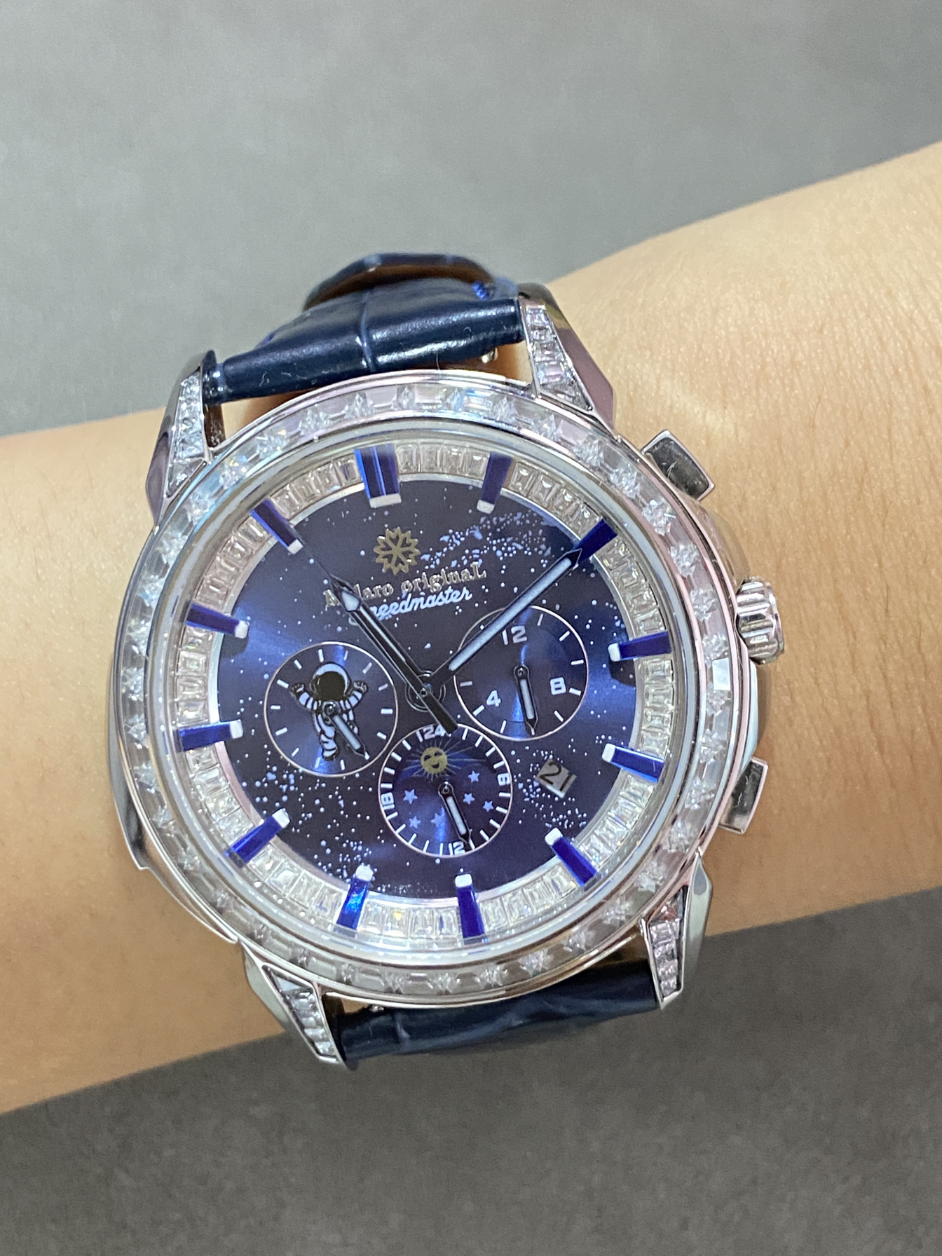 好喜欢这个宇航员手表 背面的宇航员可以转动 正面也是酷酷的三眼表盘设计