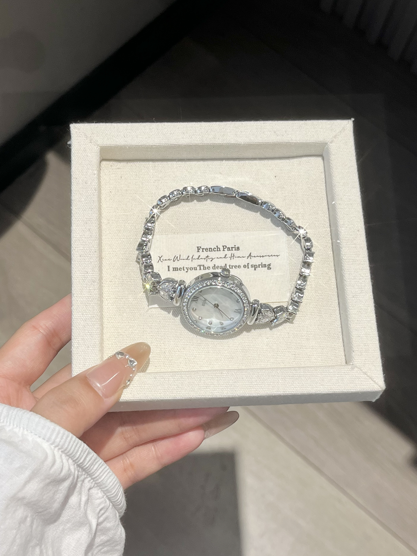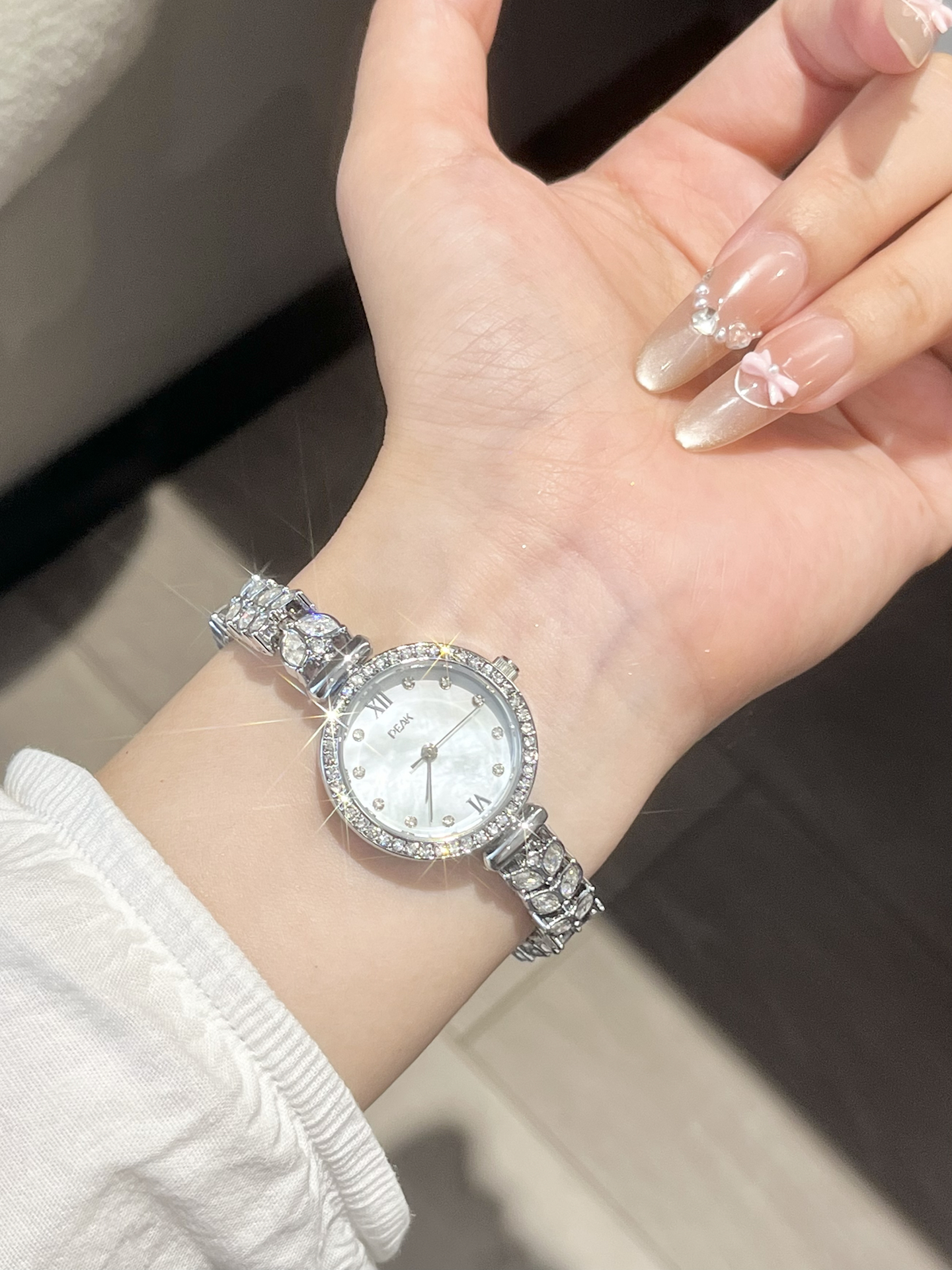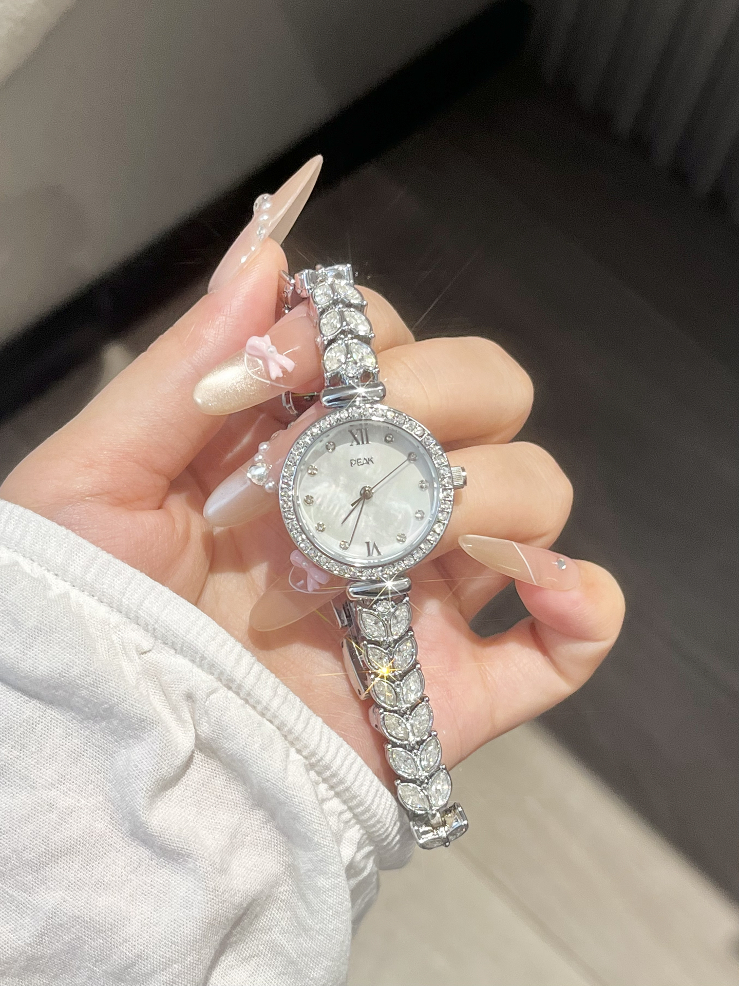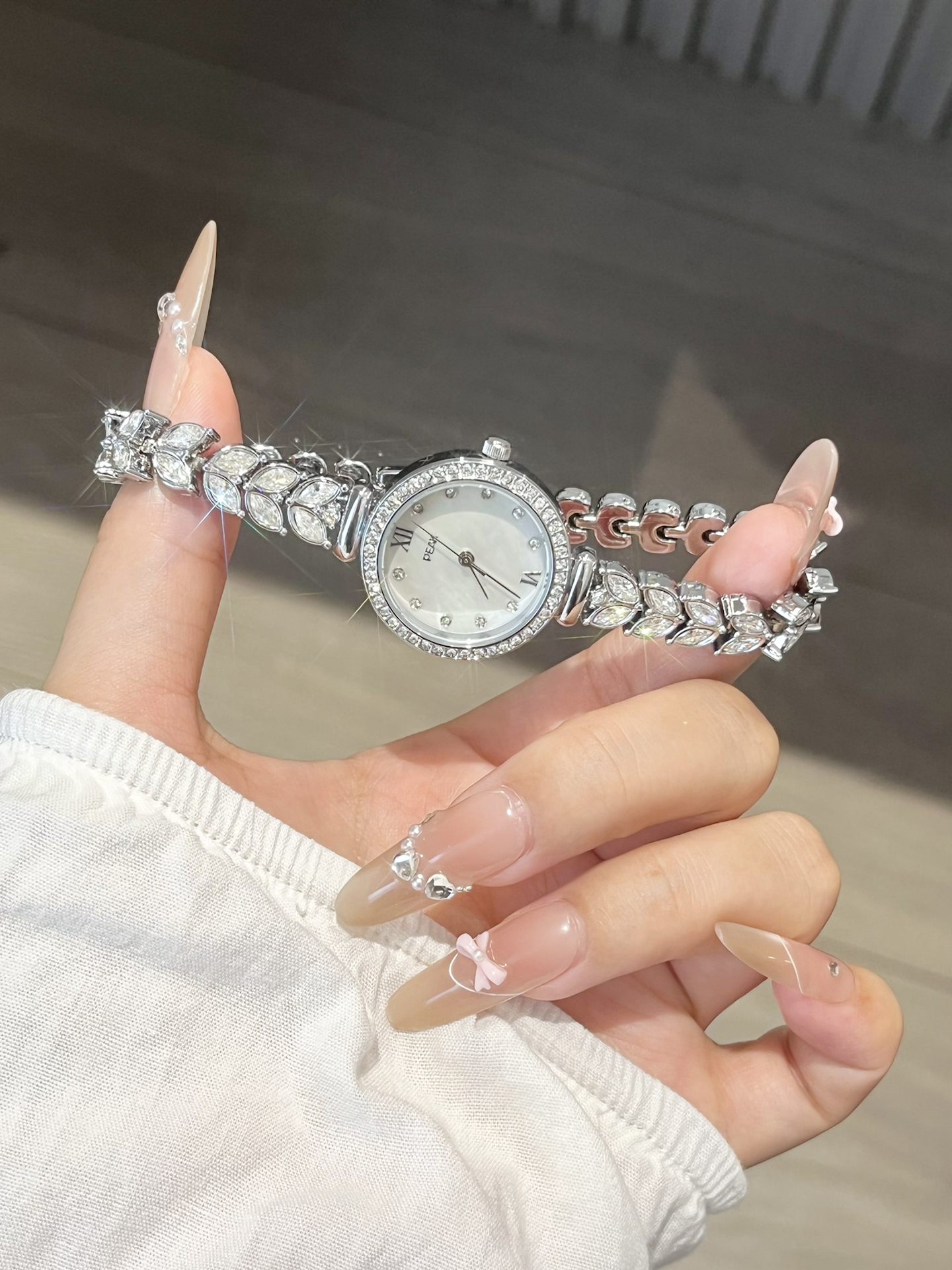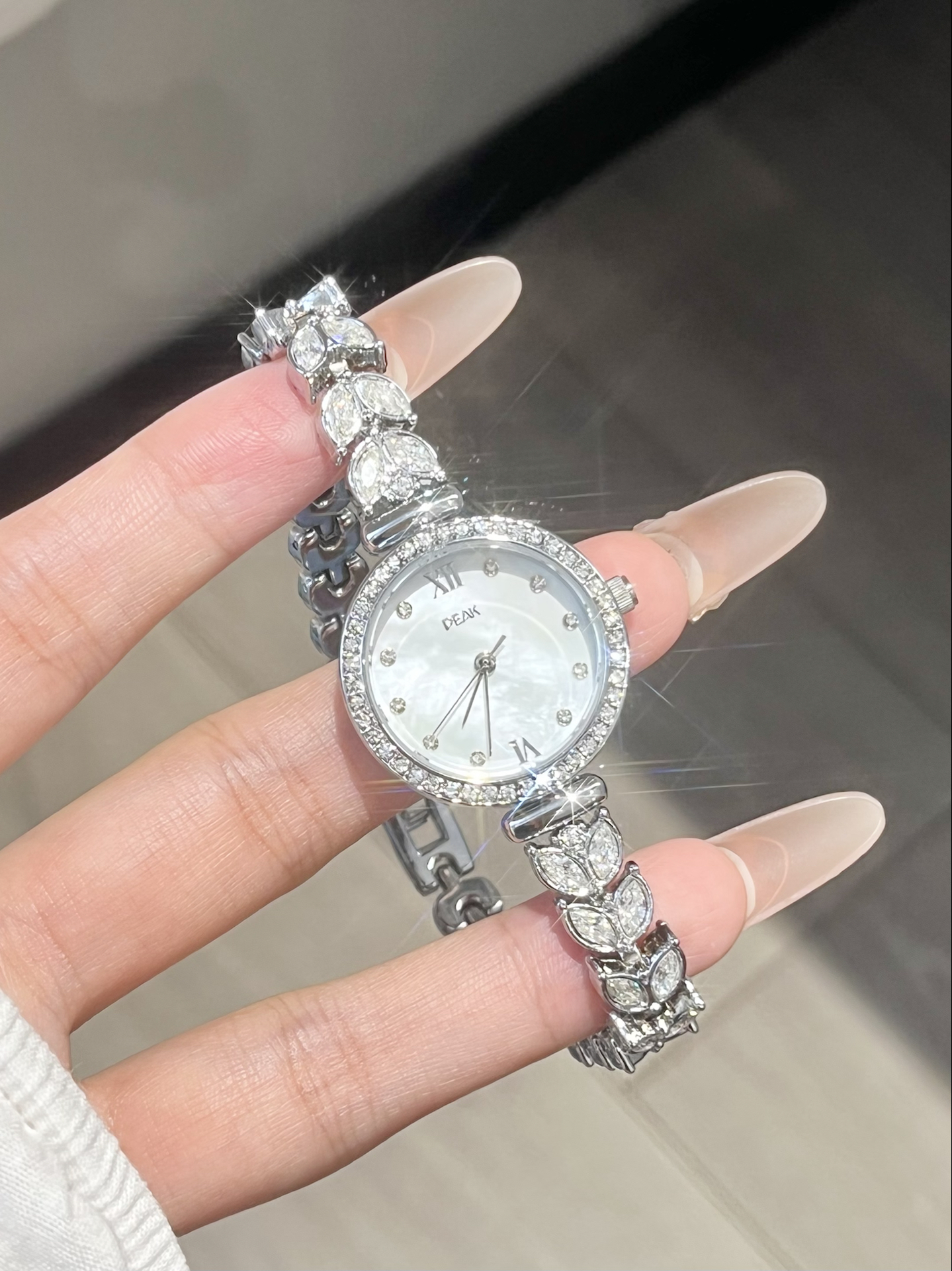 救命🆘 看见这款匹克美人鱼系列手表狠狠心动啦~手链式表带,圆贝母表盘镶满钻,blingbling✨,精致感拉满有没有💃 感觉好适合夏天搭配裙子呀~就是我手肉肉的不知道戴上啥效果🤔,有没有宝子戴过呀,会不会显胖~