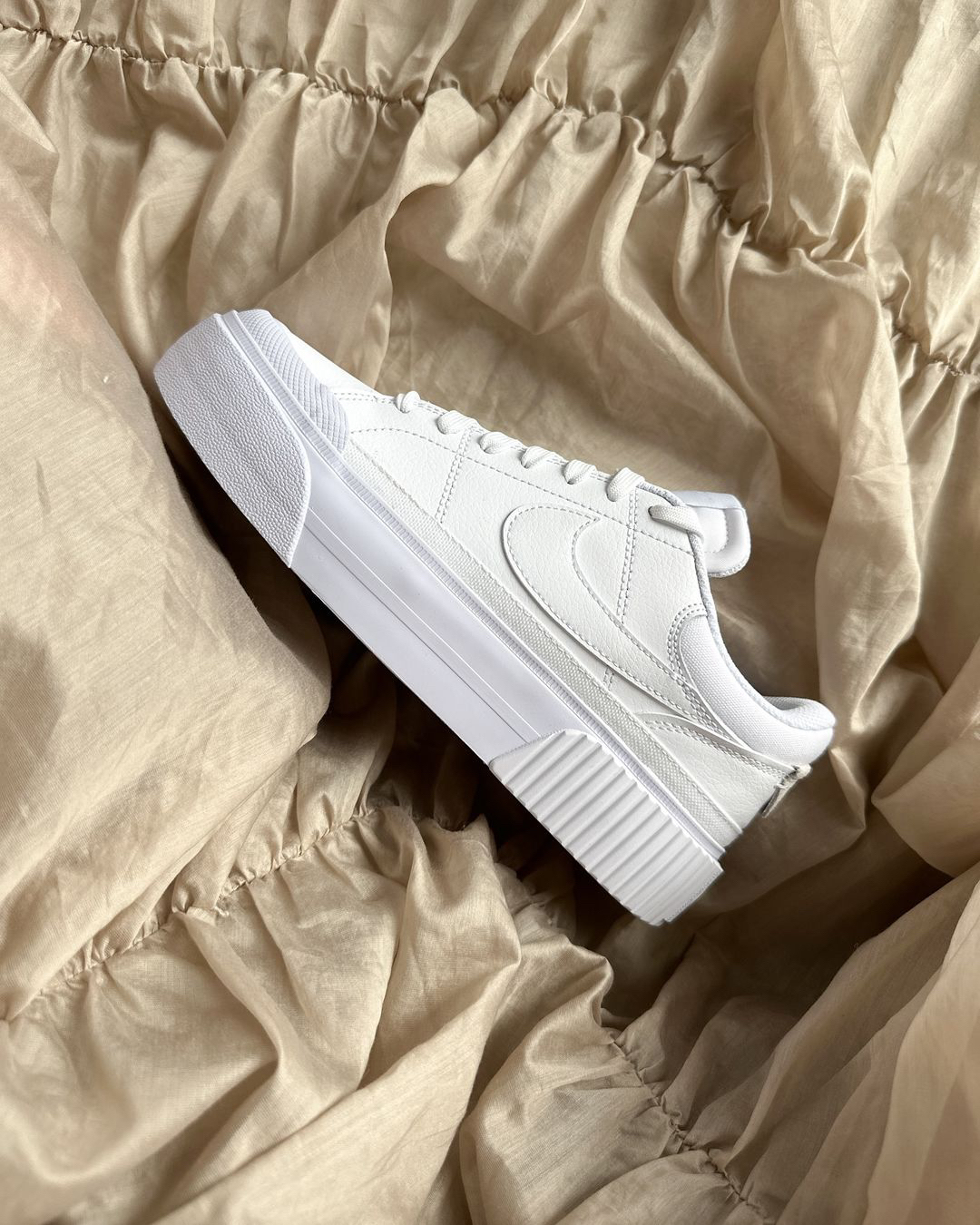 网面设计的耐克鞋,夏天穿特别的透气 脚感更是没的说,特别舒服 对于脚丫子宽的人群也很友好 这双鞋是亮灰色,搭配浅色裤子更适合 整体风格很是时尚