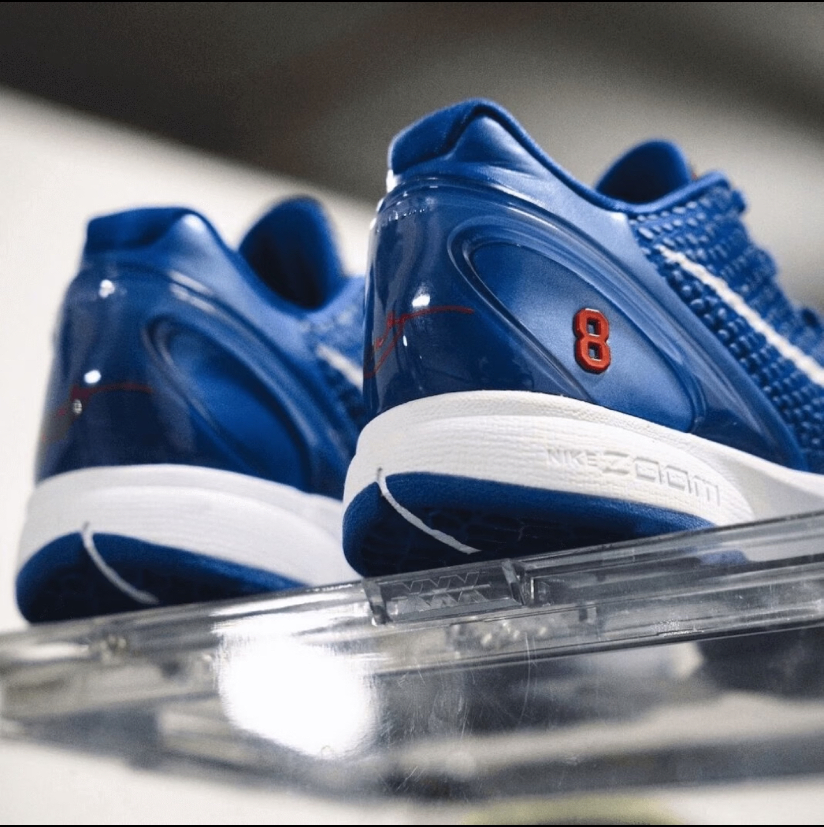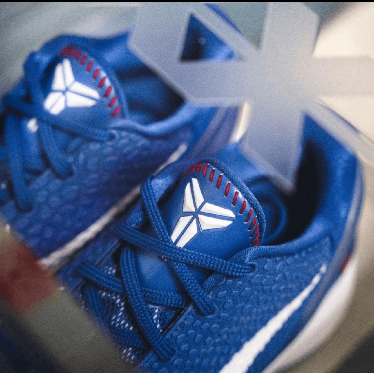 → 🌟 以洛杉矶道奇队经典白蓝为主调,鞋舌注入**棒球缝线细节**,呼应科比青少年时期的棒球生涯(专注篮球前他曾是棒球手)。