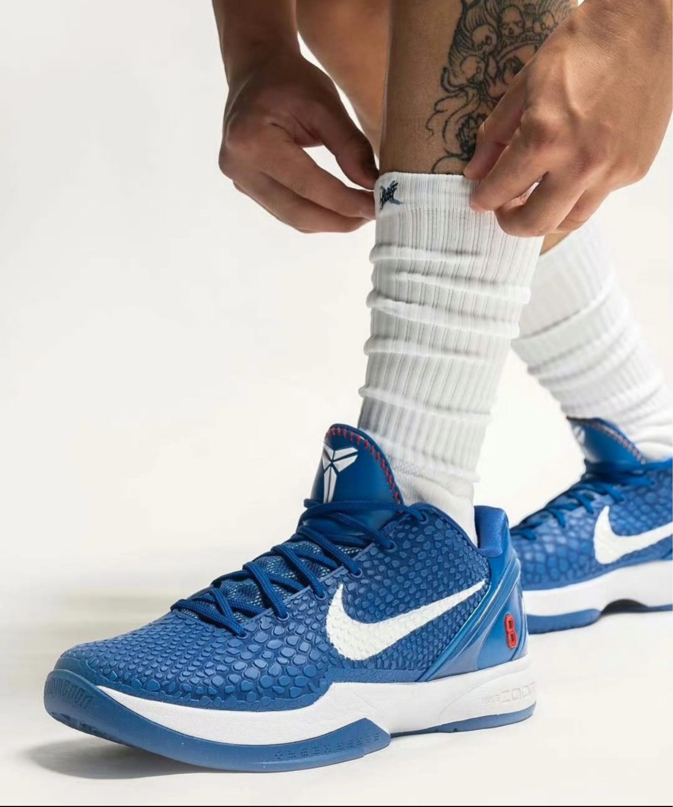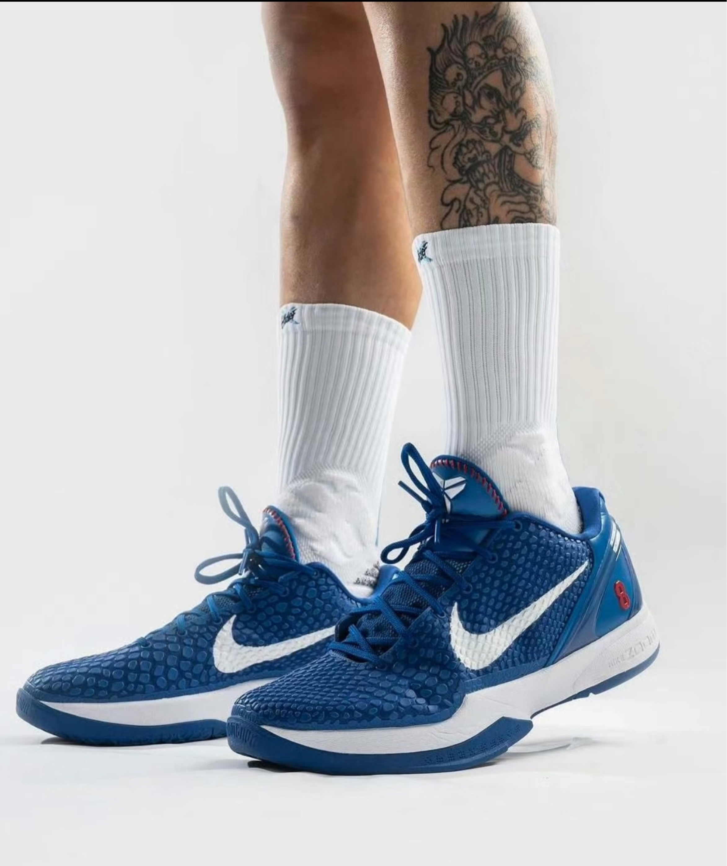 见过凌晨四点的洛杉矶,也见过道奇球场的钻石光芒——这双Kobe 6 Protro "Dodgers"以洛杉矶道奇队经典配色为灵感,把棒球豪门的热血与科比的偏执基因揉进了球鞋里。靛蓝色鞋面如道奇队服般深邃,鞋头蛇鳞纹理暗涌,呼应科比“黑曼巴”的象征,而鞋舌处刺绣的道奇队LOGO与科比签名交织,鞋跟跃起的白色“LA”字样,踩下去就是西海岸的阳光与荣耀。最戳心的是鞋垫上的细节:道奇队主场 Chavez Ravine 球场轮廓与科比背号“24”重叠,每一步都像踩在曼巴曾热爱的土地上。