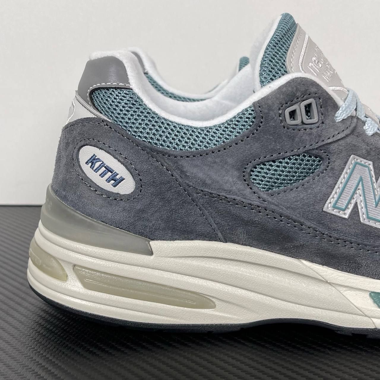沿用了引以为傲的跑鞋手工技艺 采用猪皮绒面并包裹局部透气网面的鞋身设计 菱网鞋舌上刻有New Balance USA 鞋面依旧身着经典的大热之灰 彰显了其高端的品质身份