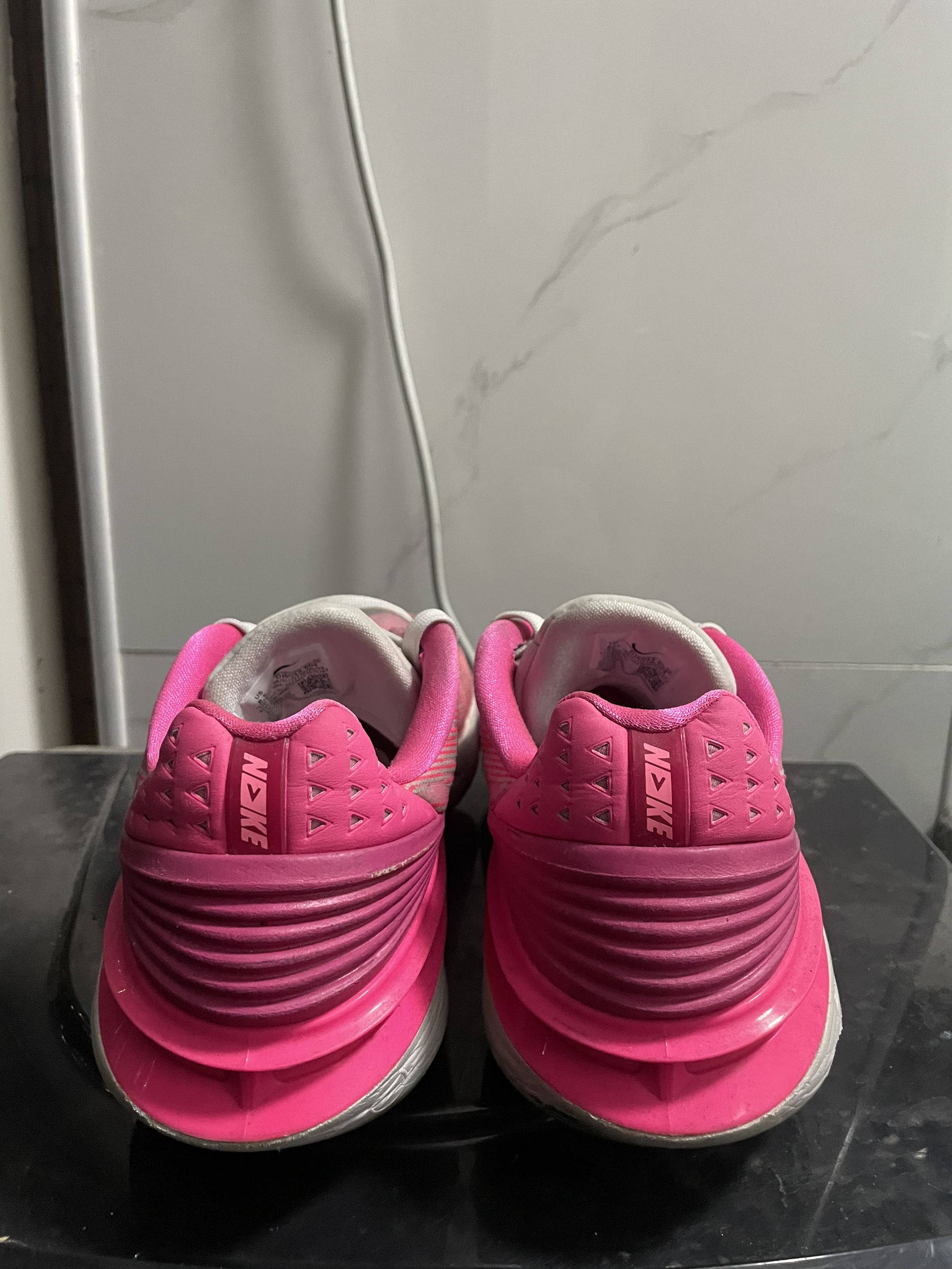 这双篮球鞋的粉色系配色十分亮眼吸睛 鞋侧有标志性的nike标志 整体鞋型兼具时尚感与运动感 鞋面运用工程网布还有织物材质,具备良好的透气性,减轻了闷热感 在弯折时能较好贴合脚部动作,提供一定灵活性 有不错的缓震性能,抓地力强、但是这鞋中底重心略高 鞋舌也容易跑偏 喜欢的可以考虑
