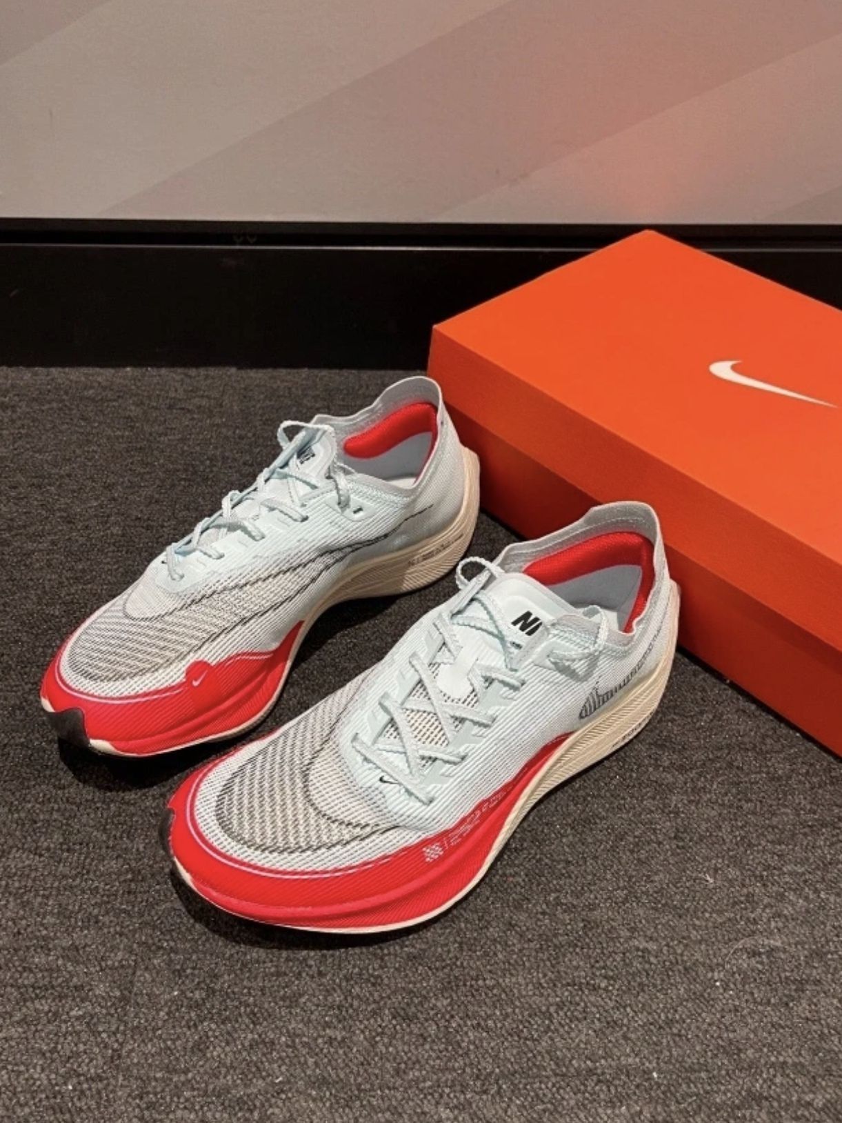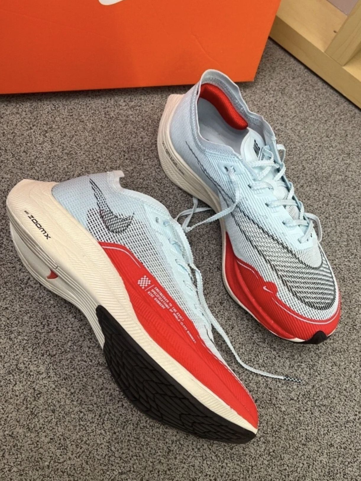 本篇笔记关联了Nike ZoomX VaporFly NEXT% 2 跑鞋 全掌碳板舒适支撑防滑耐磨减震透气织物泡棉包裹性回弹长跑 冰蓝/橘红等商品,为用户提供真实的使用体验和购买参考。