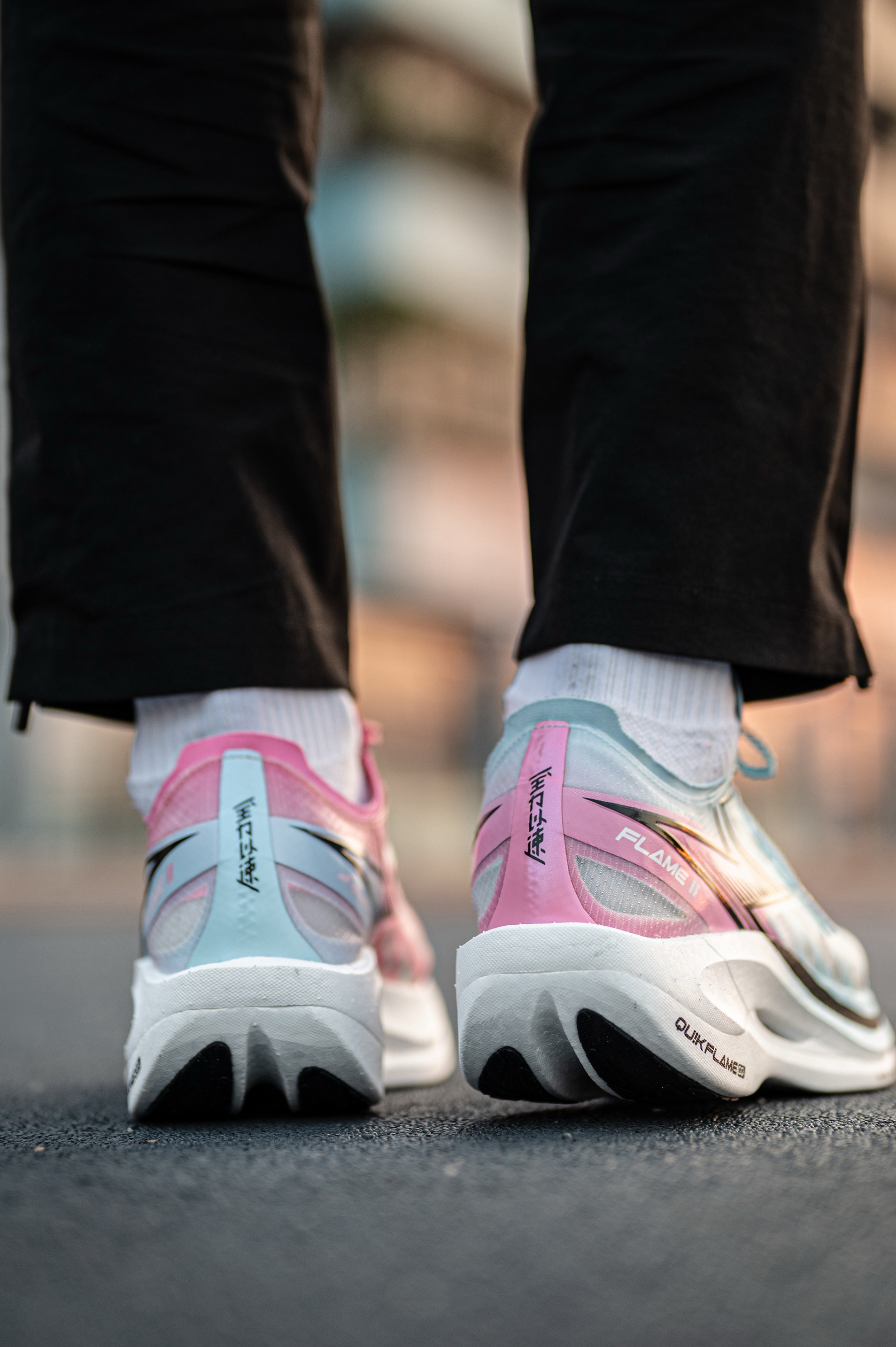 飞燃2如今已经是发售两年的鞋款了,这款鞋在最近是还有穿着的。 喜欢这双鞋很大原因也是因为这款鞋的配色,但并不是说性能不好,而是我认为这款反转“鸳鸯配色”太适合我的审美了。 飞燃2的鞋面其实是可以看出来非常薄的,夏天穿着没问题。 中底采用双密度尼龙弹性体,有着碳纤维板的叠加,这双鞋穿起来脚感反馈韧弹,中底强度良好,很建议在中长距离竞速穿着。