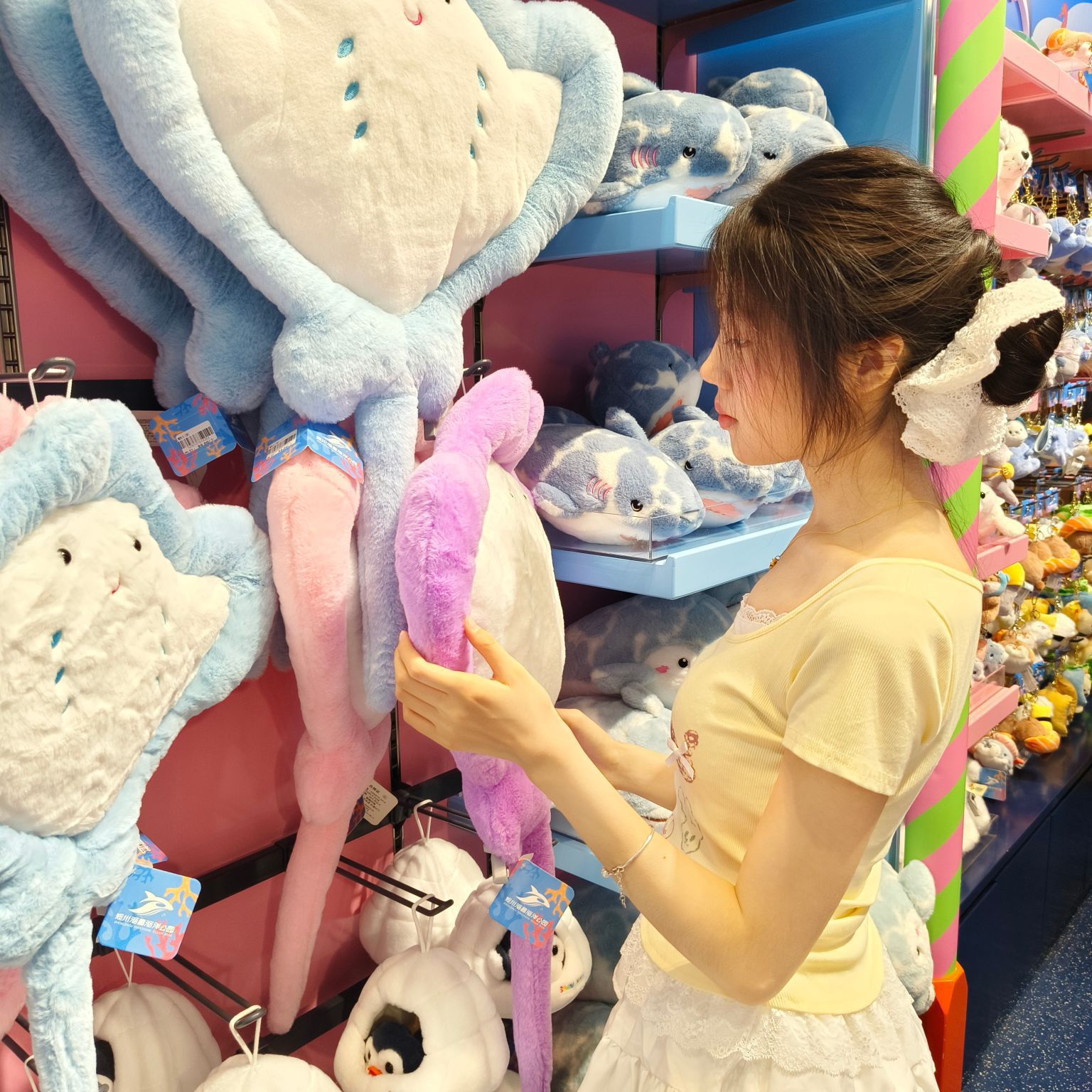 04女大学生逛识货日记🎀 今天是勇闯识货的第二天✨ 主打一个把可爱和青春焊在身上~ 这套奶黄色兔兔短袖也太乖啦🐰 软fufu的面料,印花还带小丝带,穿去逛海洋馆被问爆!搭配蓬蓬白裙和小腿袜,直接甜妹氛围感拉满💕 跟M豆大可爱合影也超搭!还有这双厚底小皮鞋,显高又百搭,配JK格裙绝绝子,新入的紫格套装+波点丝带包🎀 一整个学院风拿捏,谁看了不说青春无敌! 在识货挖到好多宝藏,每天都在...