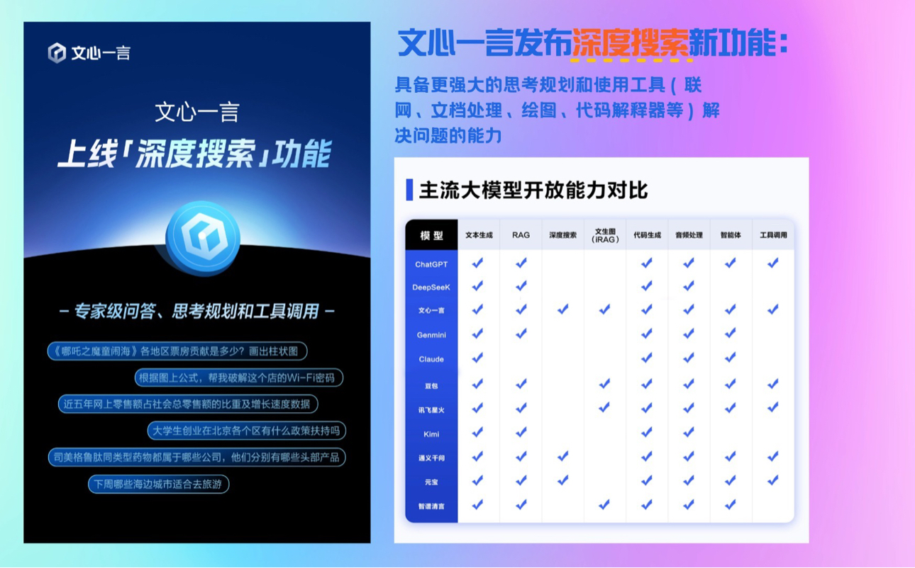 家人们,数码圈又有大新闻啦!就在2月13日,文心一言和ChatGPT同时扔出“免费炸弹”。文心一言这波操作尤其吸睛,宣布从4月1日起全面免费开放,不管是PC端还是App端的用户,都能畅享免费福利。而且从即日起,超实用的深度搜索功能也已火热上线。
