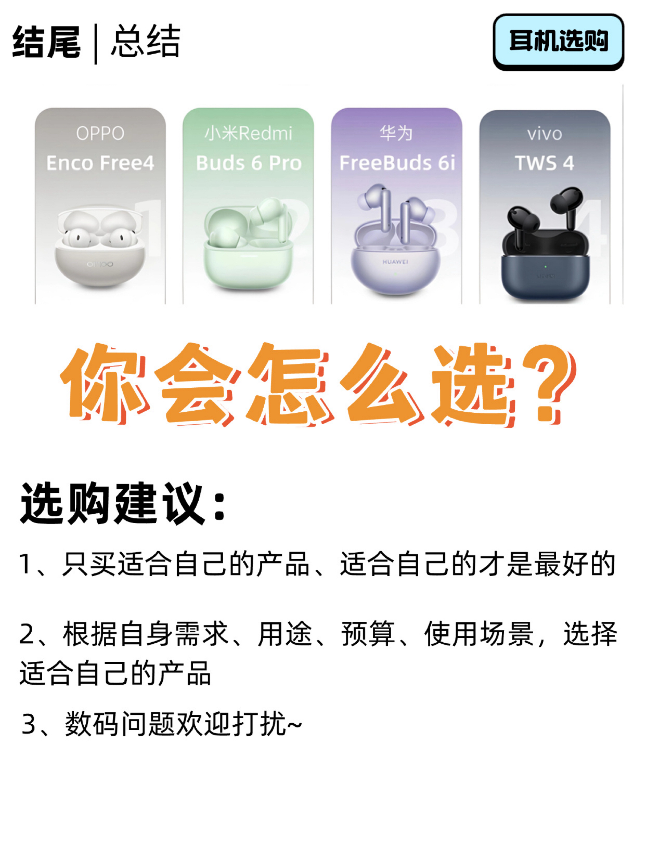 本篇笔记关联了vivo TWS 4 入耳式 蓝牙 耳机 真无线 主动降噪 超长续航 高保真 55dB 深海降噪 深海蓝、HUAWEI/华为 FreeBuds 6i 入耳式 蓝牙耳机 旗舰级降噪深度 智慧动态降噪3.0 低音澎湃 真无线 高解析音质 超长续航 低延迟 流光紫、Redmi/红米 Buds 6 Pro 入耳式 蓝牙耳机 深度降噪 超高性价比 超长续航 高度降噪 高音质 真无线 玄悟黑等商品,为用户提供真实的使用体验和购买参考。