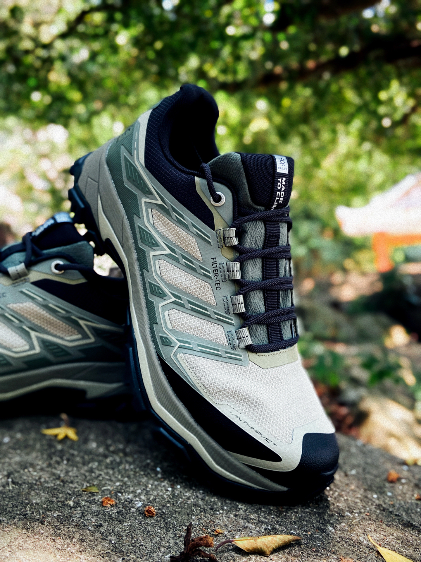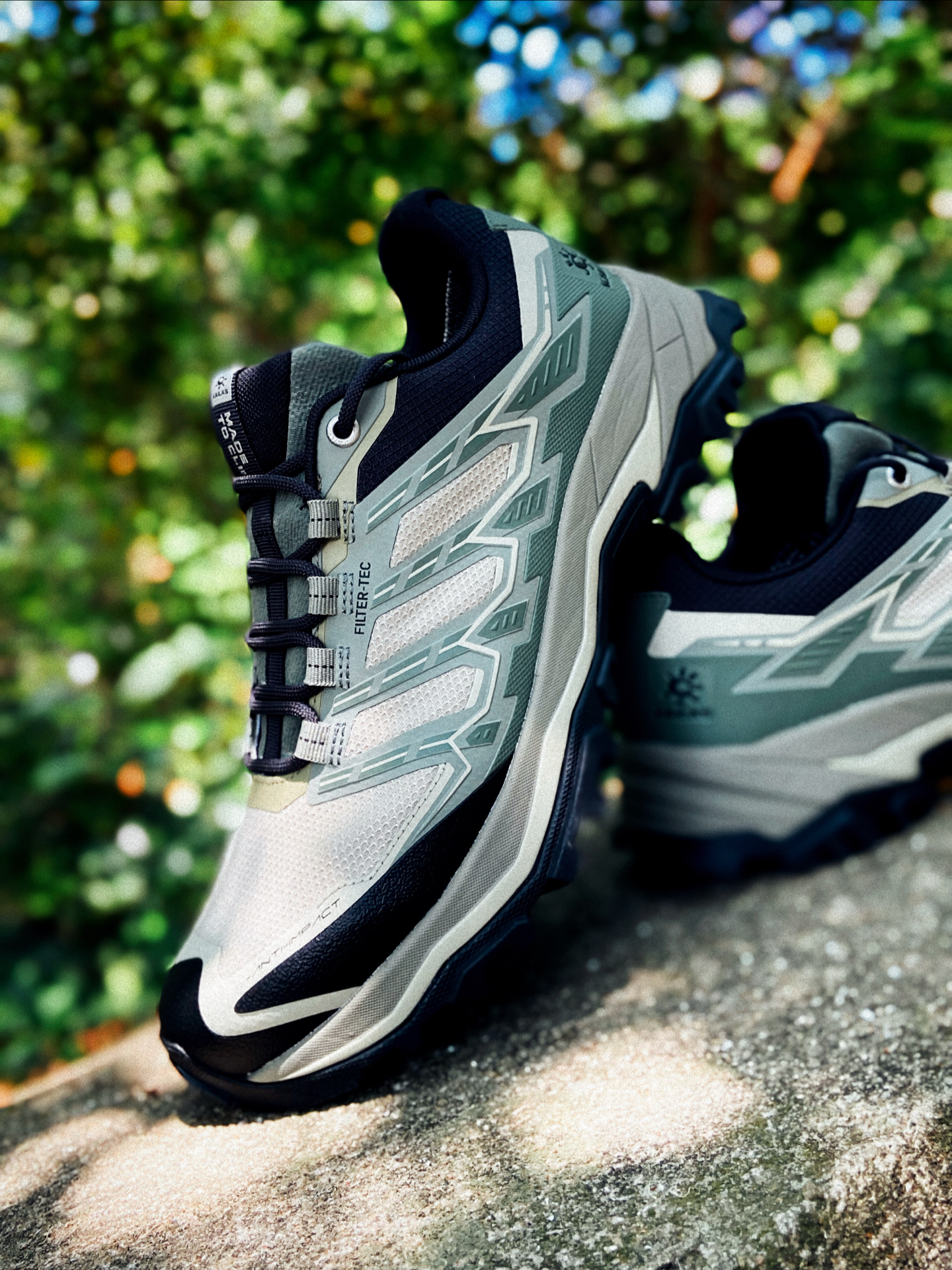 夏日户外徒步鞋怎么选? 这双凯乐石远征5-FLT 很值得推荐 ! 首先颜值长在我的审美上 线条流畅 外观很硬朗 其次穿着脚感也不错 最让我喜欢的还是它的 FLT 防水内靴科技 可以让我的双脚始终保持干爽 有着 vibram 加持的鞋底深纹路设计 防滑耐磨 抓地很稳 各种户外场景都能轻松应对 而且黑绿耐脏 蛮好搭配的 即便日常短时间城市通勤 我觉得也可以的 尺码不偏 正常选择就行 ! @...