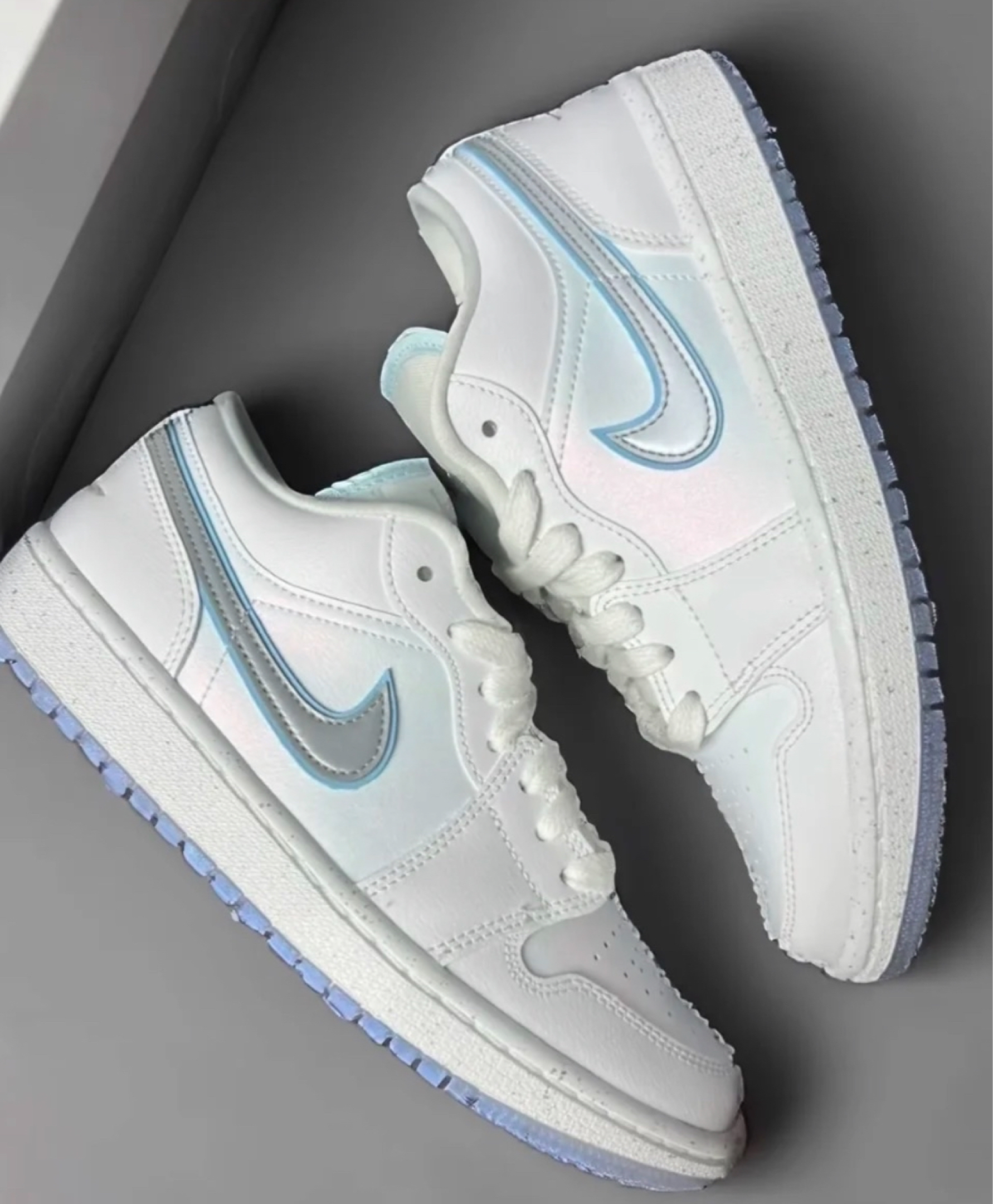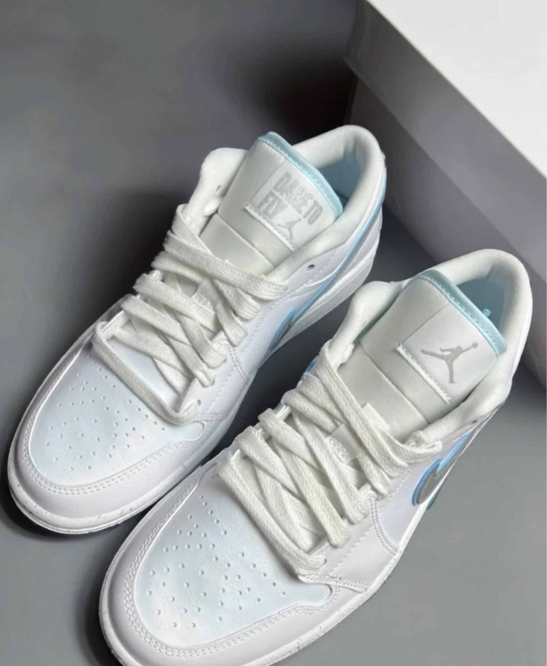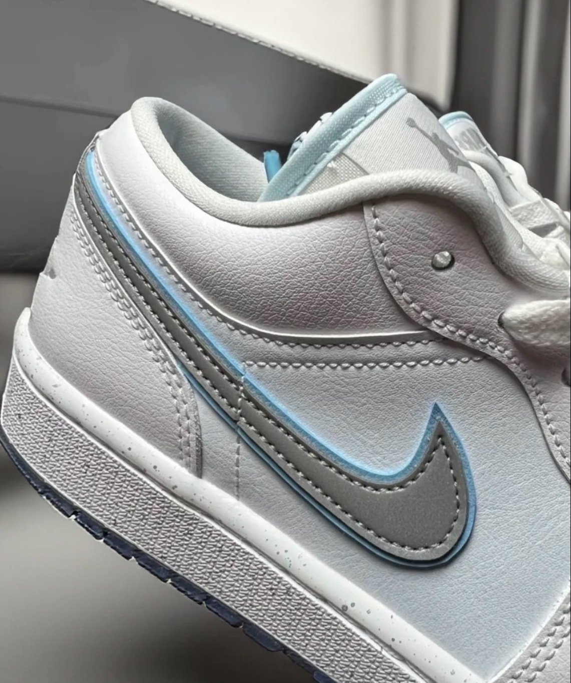 家人们,一定要试试这双AJ低帮板鞋!纯净的白色鞋面,仿佛自带清冷滤镜,浅浅的蓝色线条点缀,就像春日天空中那一抹温柔的云彩,简约又不失灵动。 作为AJ系列,它不仅颜值在线,品质更是没得说。优质皮革材质,质感满满,上脚舒适又耐穿。无论是搭配牛仔裤、运动裤,还是小裙子,都能轻松打造出不同风格的时尚造型。 日常通勤、逛街约会,亦或是校园漫步,它都能成为你造型的点睛之笔,让你轻松成为人群中的焦点。还在纠...