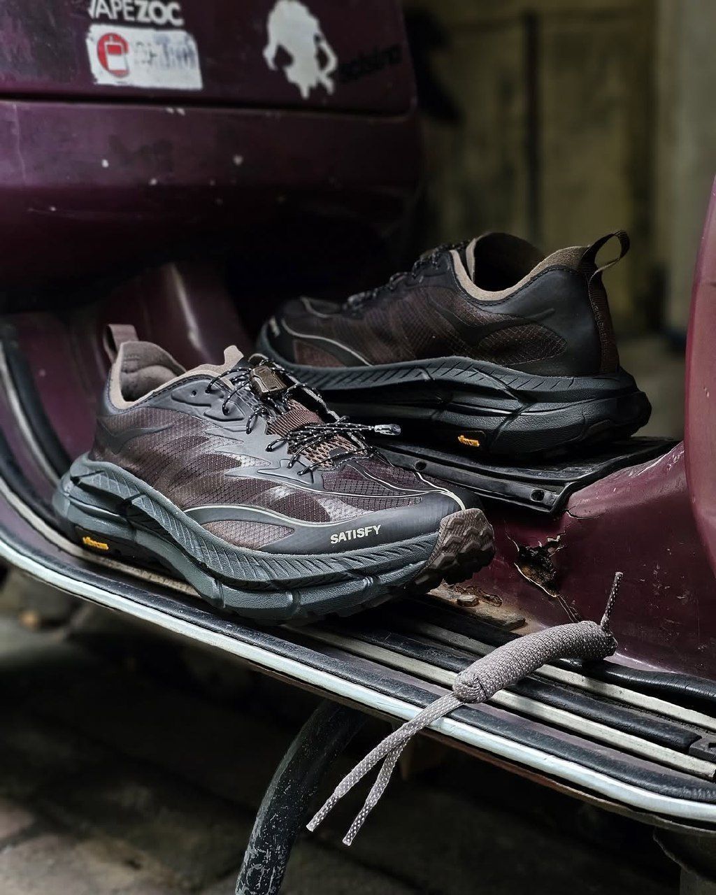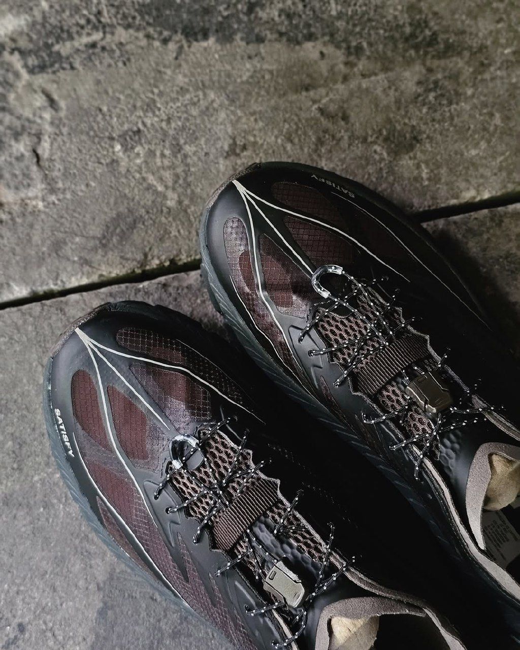 👟Satisfy x HOKA ONE ONE Mafate Speed 4 这个配色真是太户外了,红棕色搭配黑色,感觉是把岩石山丘踩在脚下,时刻保持热爱户外的内心 防滑做的很好,走在有水的岩石表面也不会打滑!作为户外鞋,透气性肯定没的说,舒适性也很好,不磨脚,鞋带速系也做得很棒,简直是户外利器 价格方面可能是需要考虑的地方,不过作为户外用品,也算正常,性价比还是很高的!