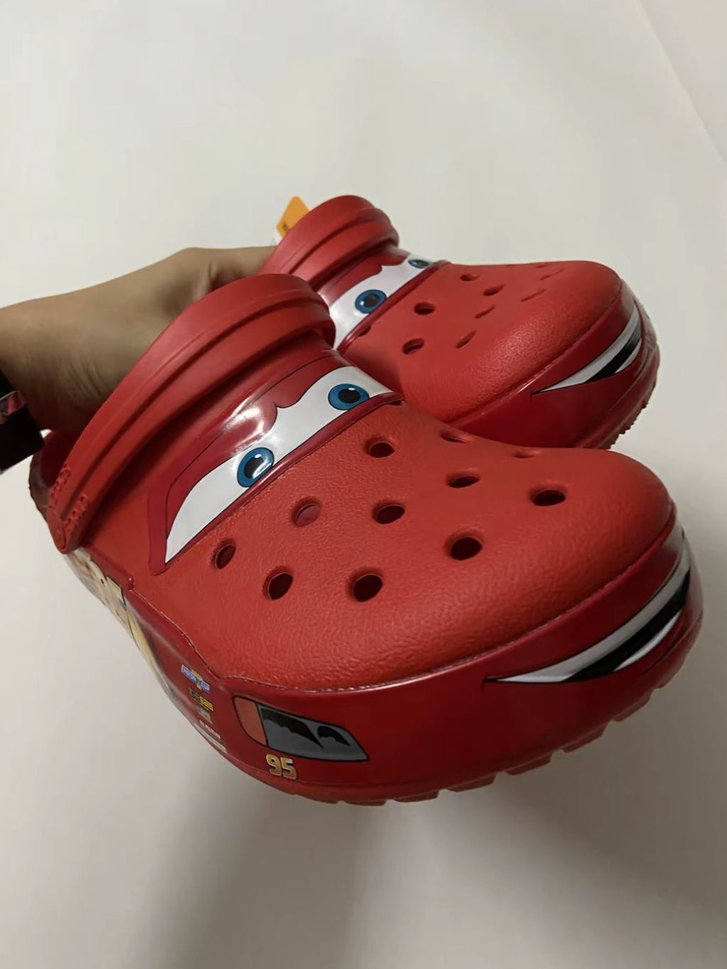 童趣爆棚!麦昆联名洞洞鞋来袭 家人们,Crocs和《赛车总动员》联名啦!这双麦昆主题洞洞鞋,把电影里闪电麦昆的经典形象完美复刻。超亮眼的红色鞋面,标志性的大眼睛和 “95” 号涂装,仿佛麦昆就在脚下飞驰 。 采用舒适轻便的材质,经典洞洞设计,透气不捂脚 ,无论是日常出街、户外玩耍还是居家休闲,都能轻松适配。一脚蹬的款式,穿脱超方便,简直是懒人和小朋友的福音 。 哪个小车迷能拒绝这样一双...