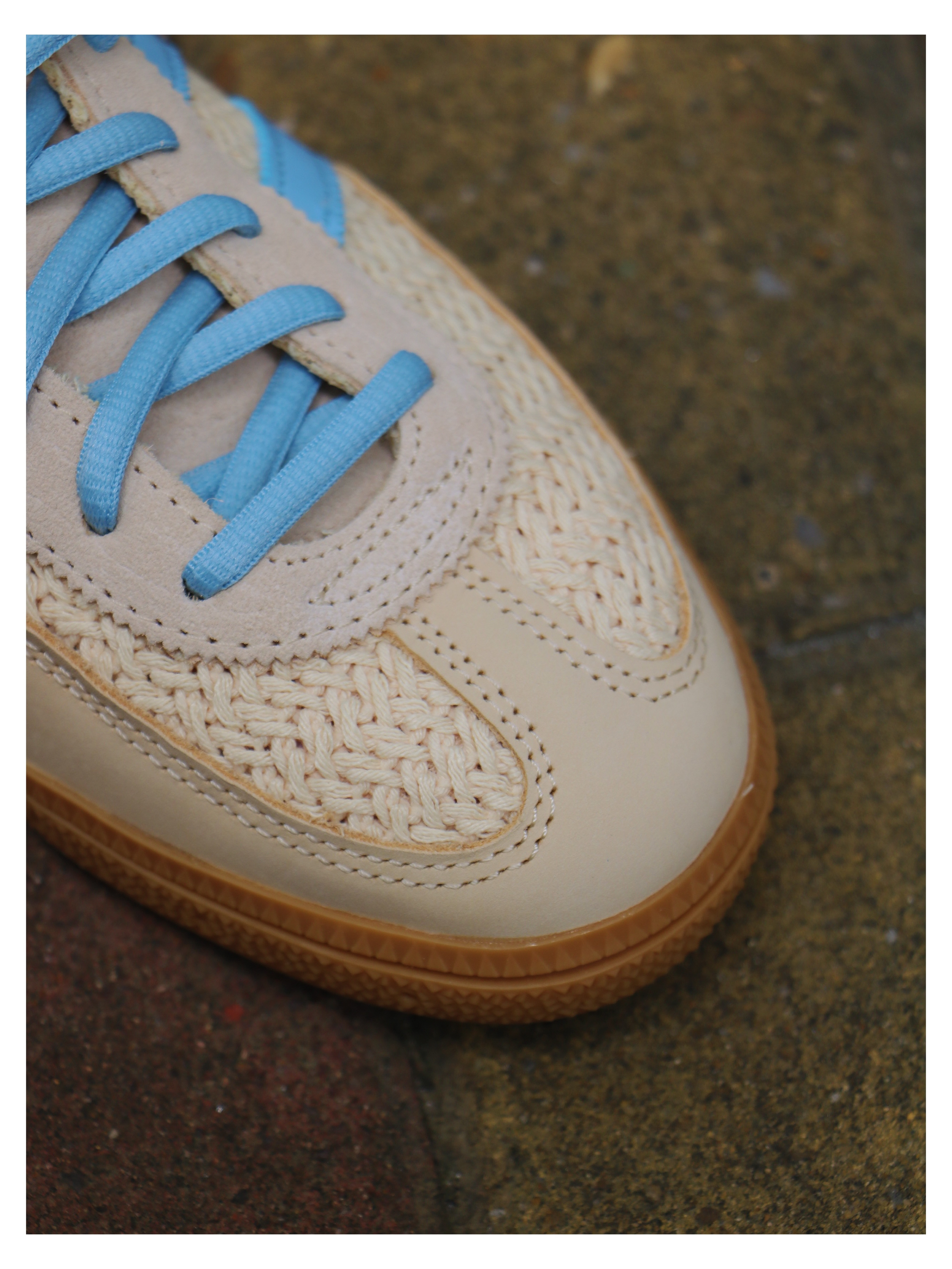 夏日透气#经典德训鞋adidas T头休闲鞋 编织料 +翻毛皮 包裹 帮面 蓝 色系鞋带 结合 皮革三条杠 logo 点缀细节 橡胶底面耐磨防滑 尺码正常 出游百搭 高级感满满