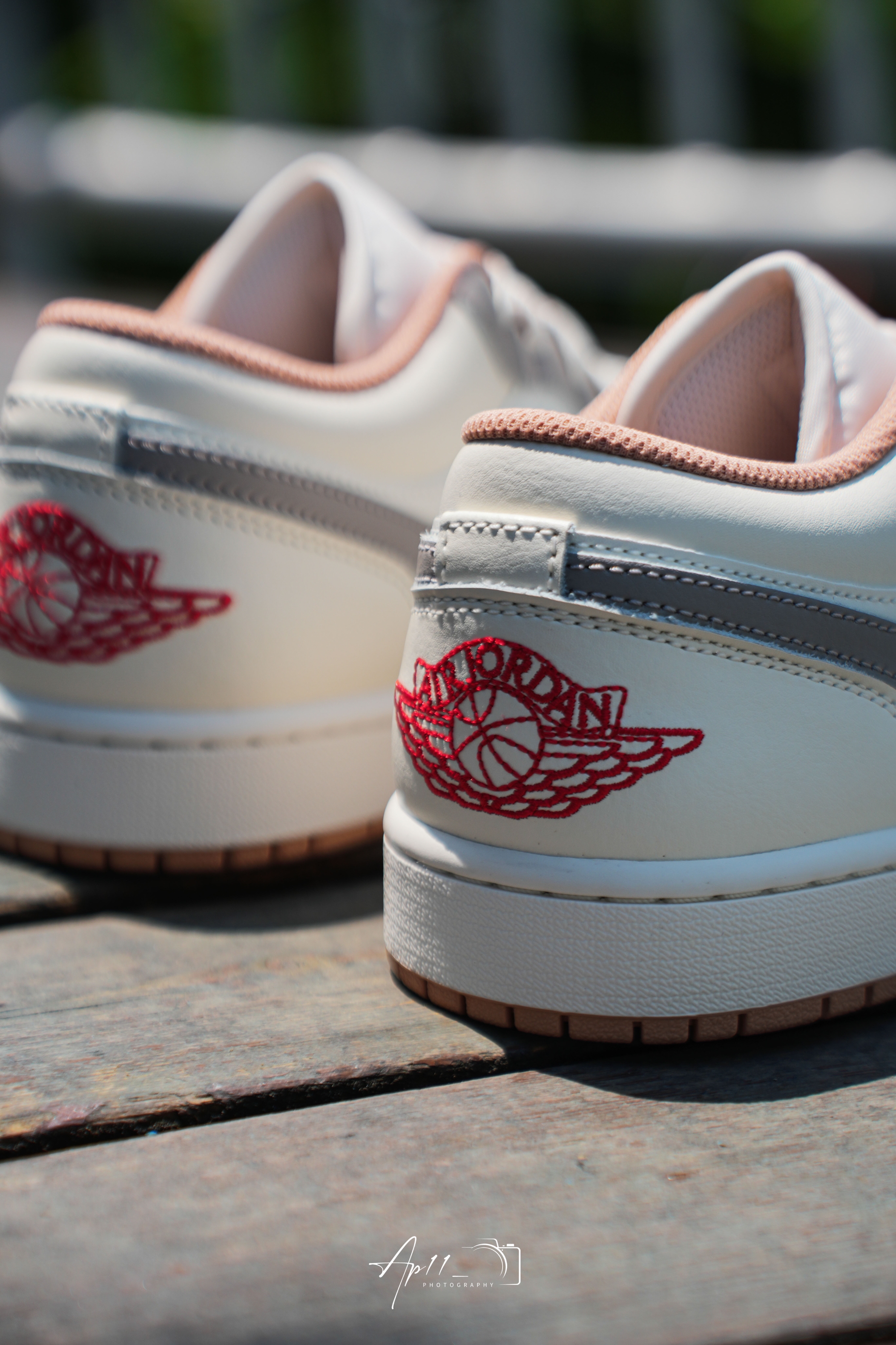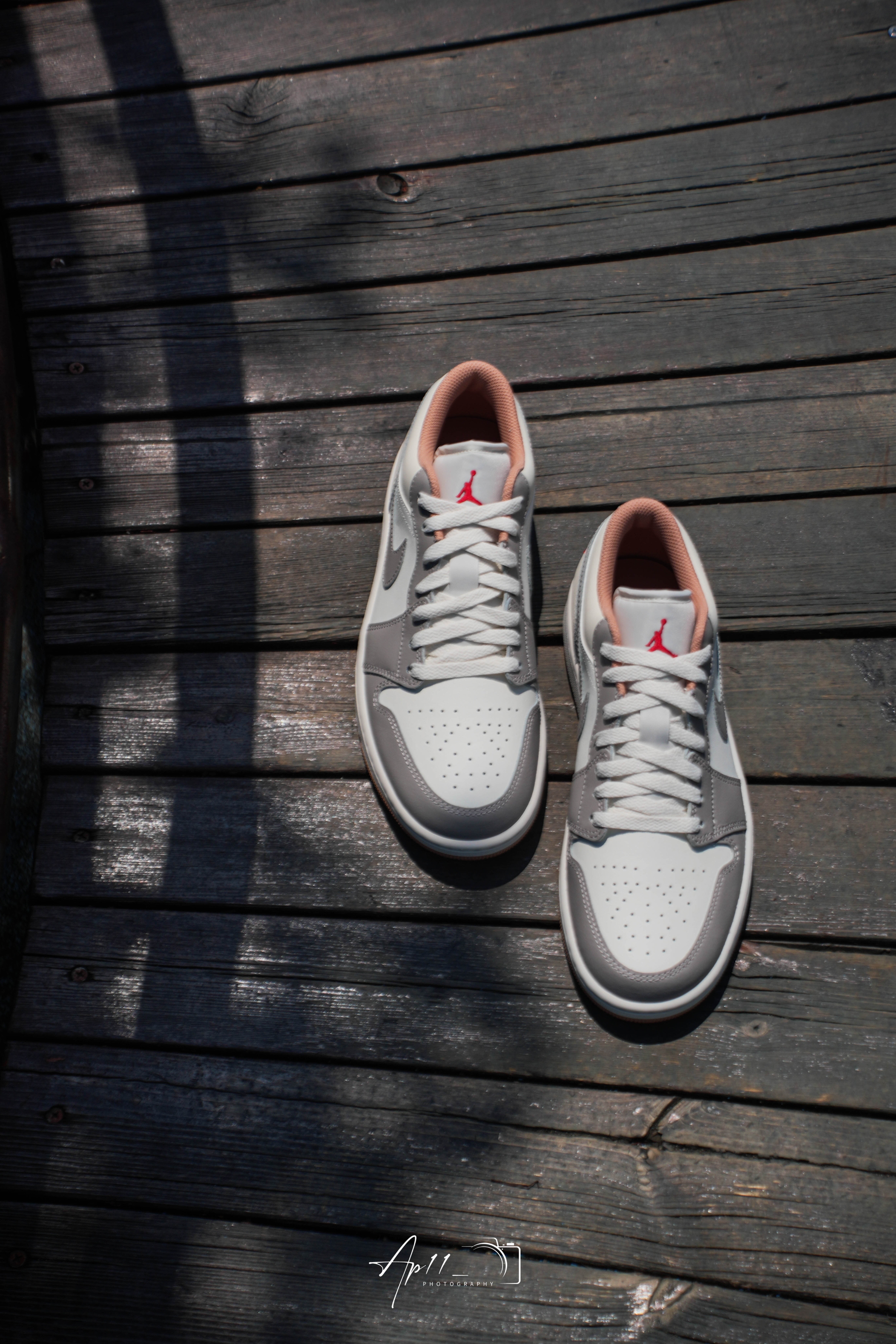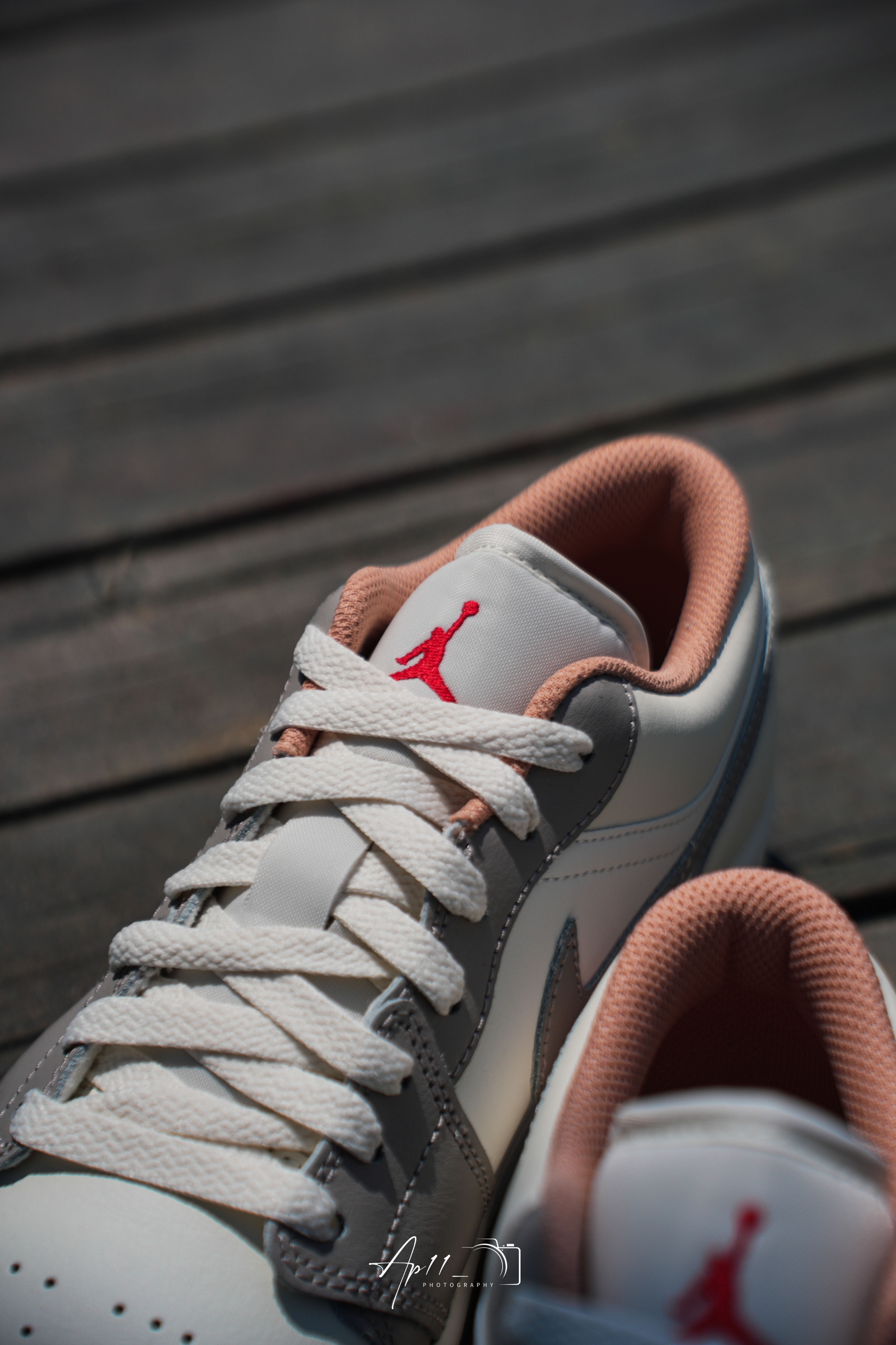 低帮的aj1鞋型果然还是深得我心,对短裤,或是休闲长裤的搭配来说都很百搭,米白跟灰色的搭配也蛮有高级感,橘色的内衬搭配也是点睛之笔。个人感觉日常的街头穿搭或是休闲搭配都很不错。