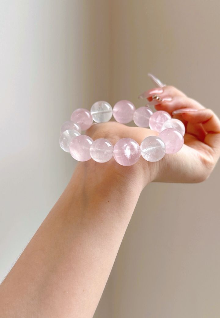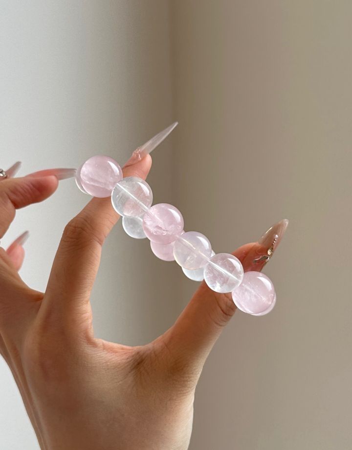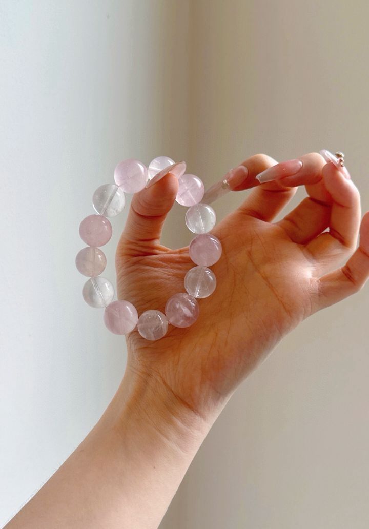 朱珠同款莫粉水晶手串 项链 莫粉水晶通透感十足,通勤约会佩戴尽显温柔,戴上它仿佛被治愈啦~ 被这套水晶温柔住了💗 着实美到我了🤩