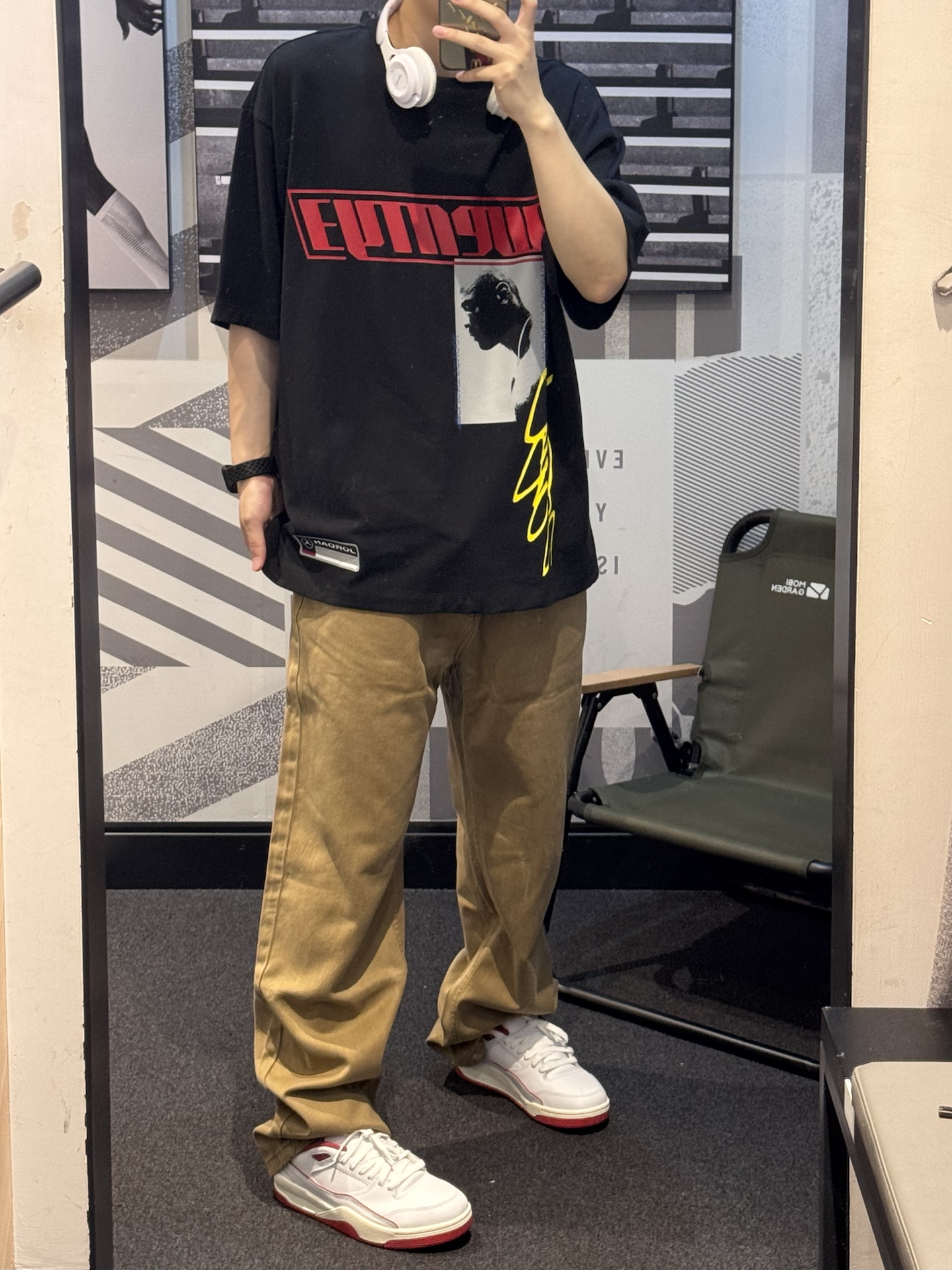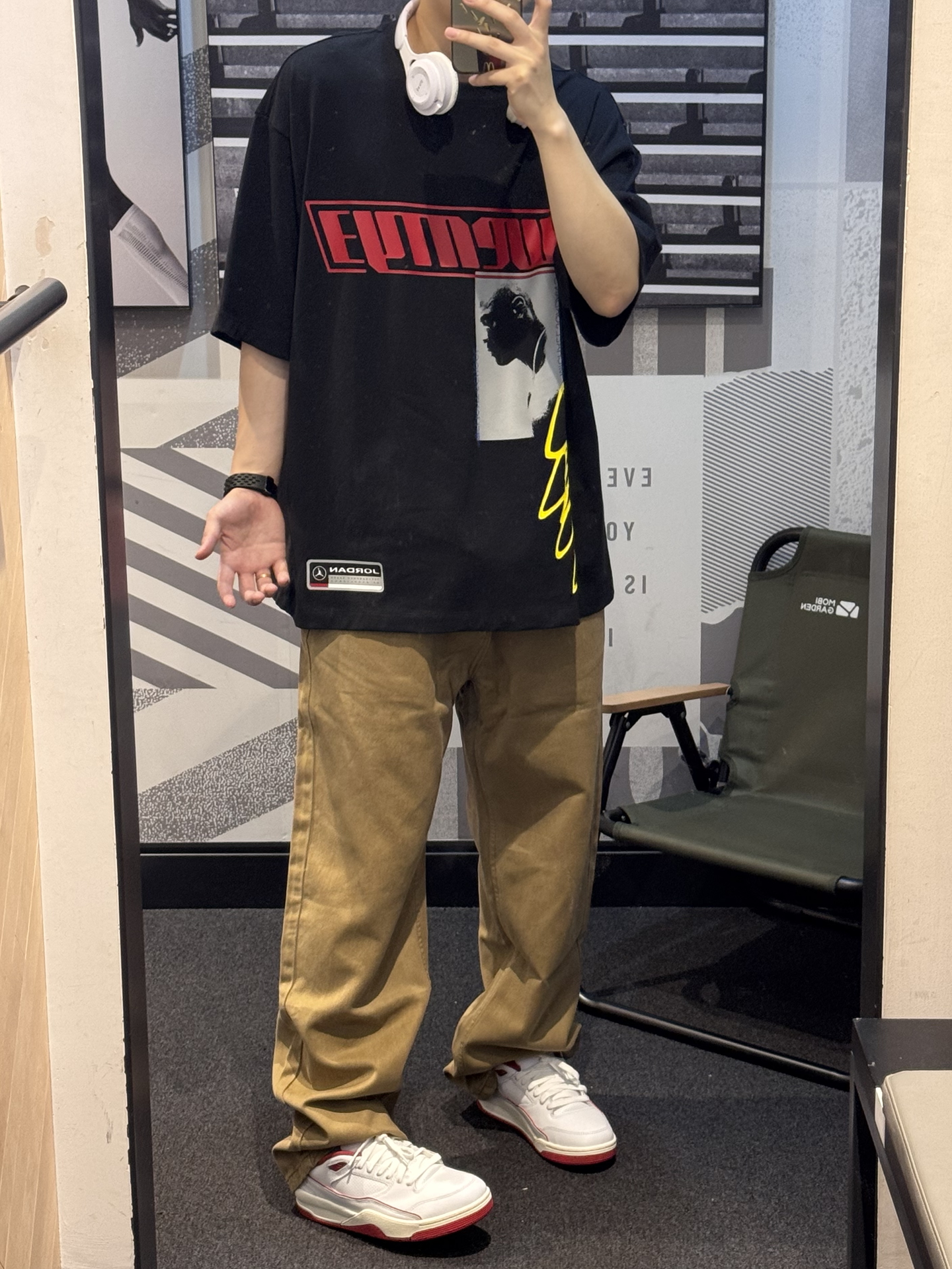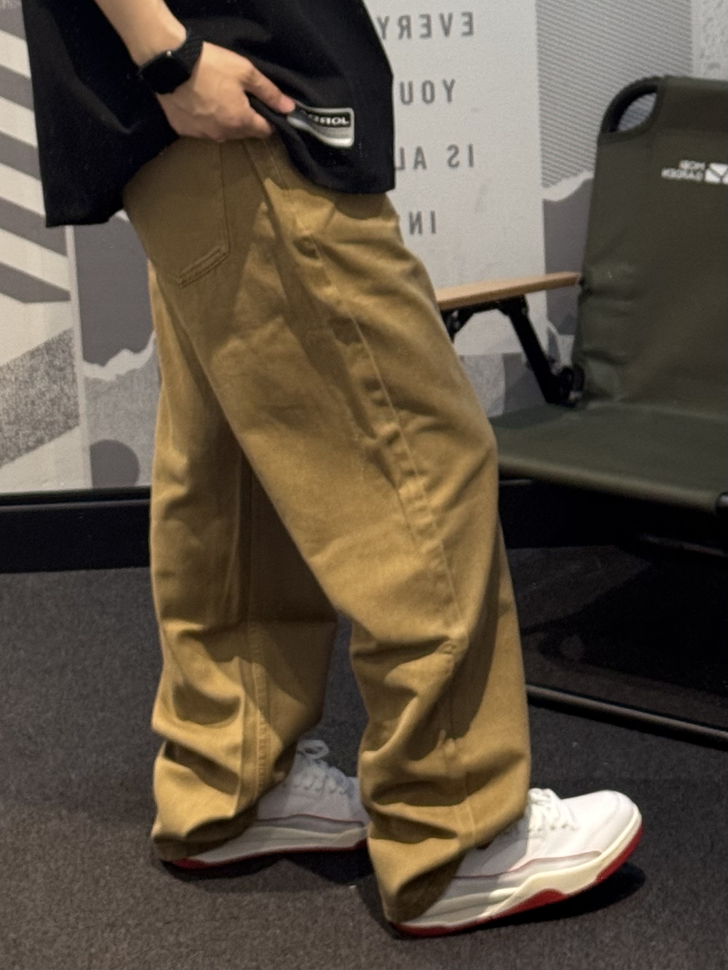究竟谁懂这件牛仔裤的含金量🥺 卡其色自带复古感~ 阿苏特染水洗工艺 质感拉满💯 上身嘎嘎帅气😉 搭配白红aj4rm➕同色系T恤 轻松get美式街头风🎧 #夏日少年感出游 #夏日穿搭主打松弛感 #年中潮服购物分享 #不靠建模靠穿搭 #夏日松弛感OOTD