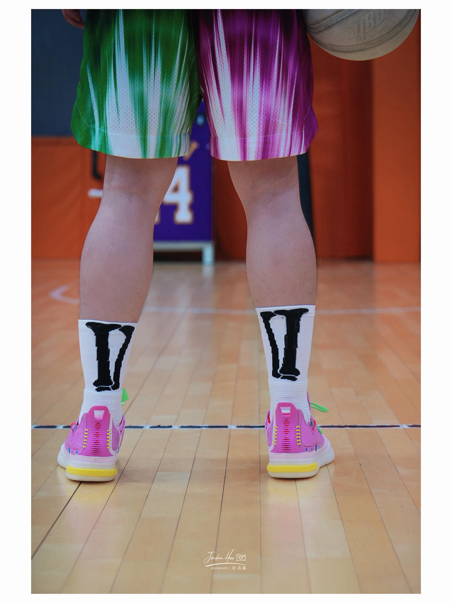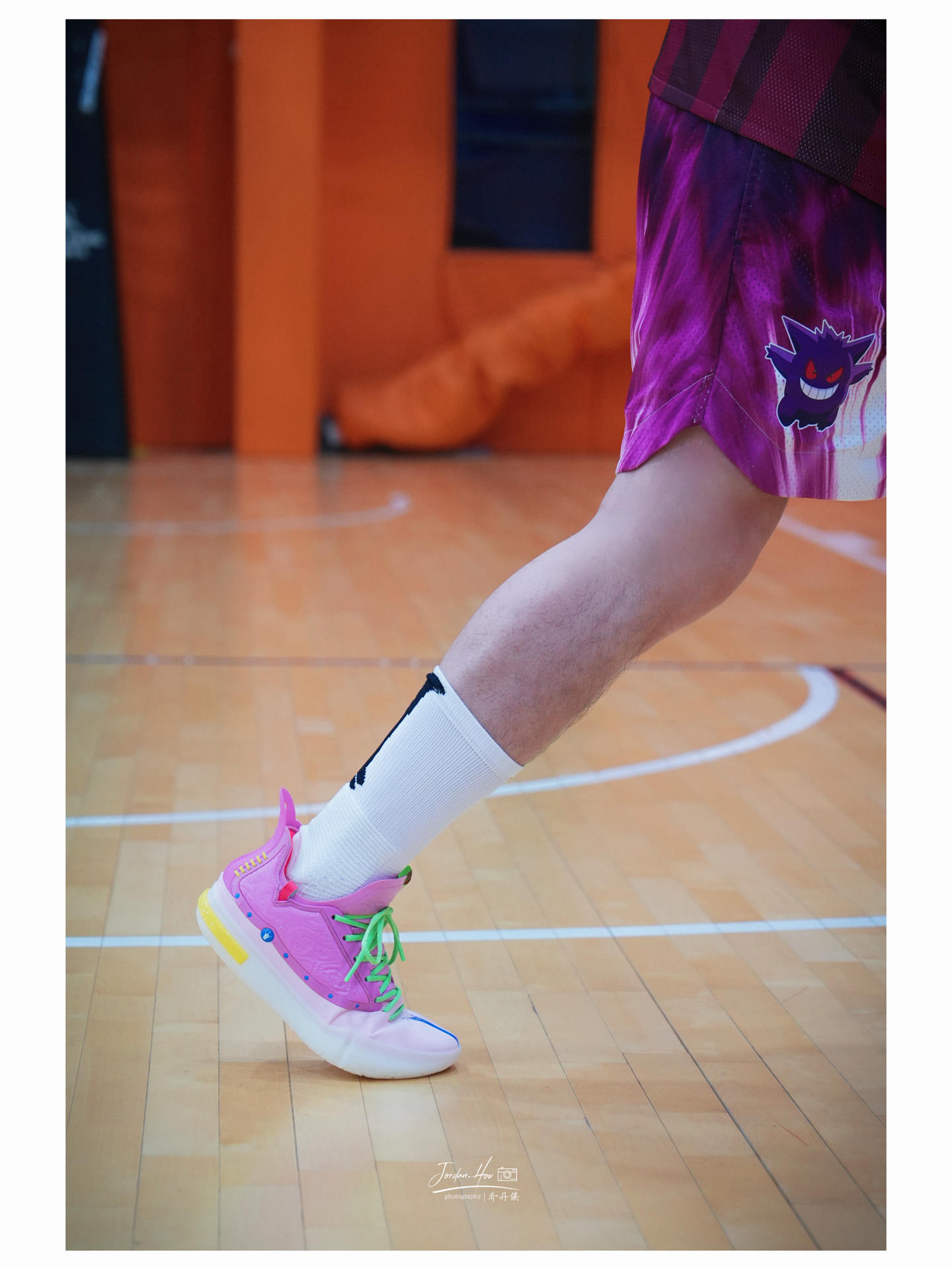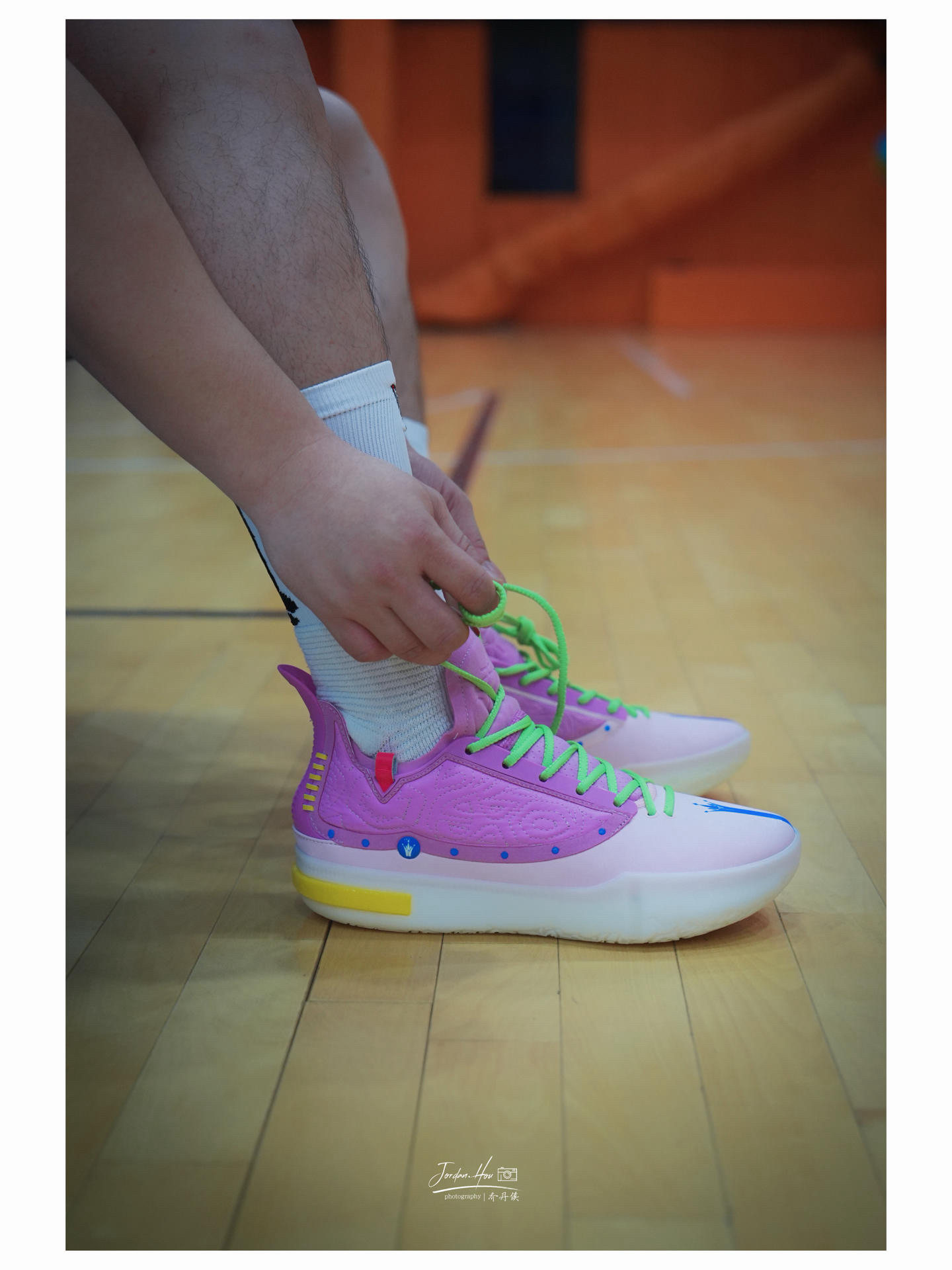 侯哥拿到这双鞋已经实战一周了,这双361度Joker 1 GT“小猪佩奇”联名款,颜值确实非常高。粉白配色确实挺吸睛,鞋身印着小猪佩奇和朋友们的卡通形象,后跟还有立体的猪鼻子装饰,上脚特别有意思。鞋面用了MONO纱线材质,透气不闷脚,鞋舌上的3D立体logo质感也不错。🌈 中底搭载了361°自家的Q弹超科技,实战时能明显感觉到缓震很扎实,起跳落地脚感柔和,后跟还有稳定TPU片,急停变向不容易侧翻...