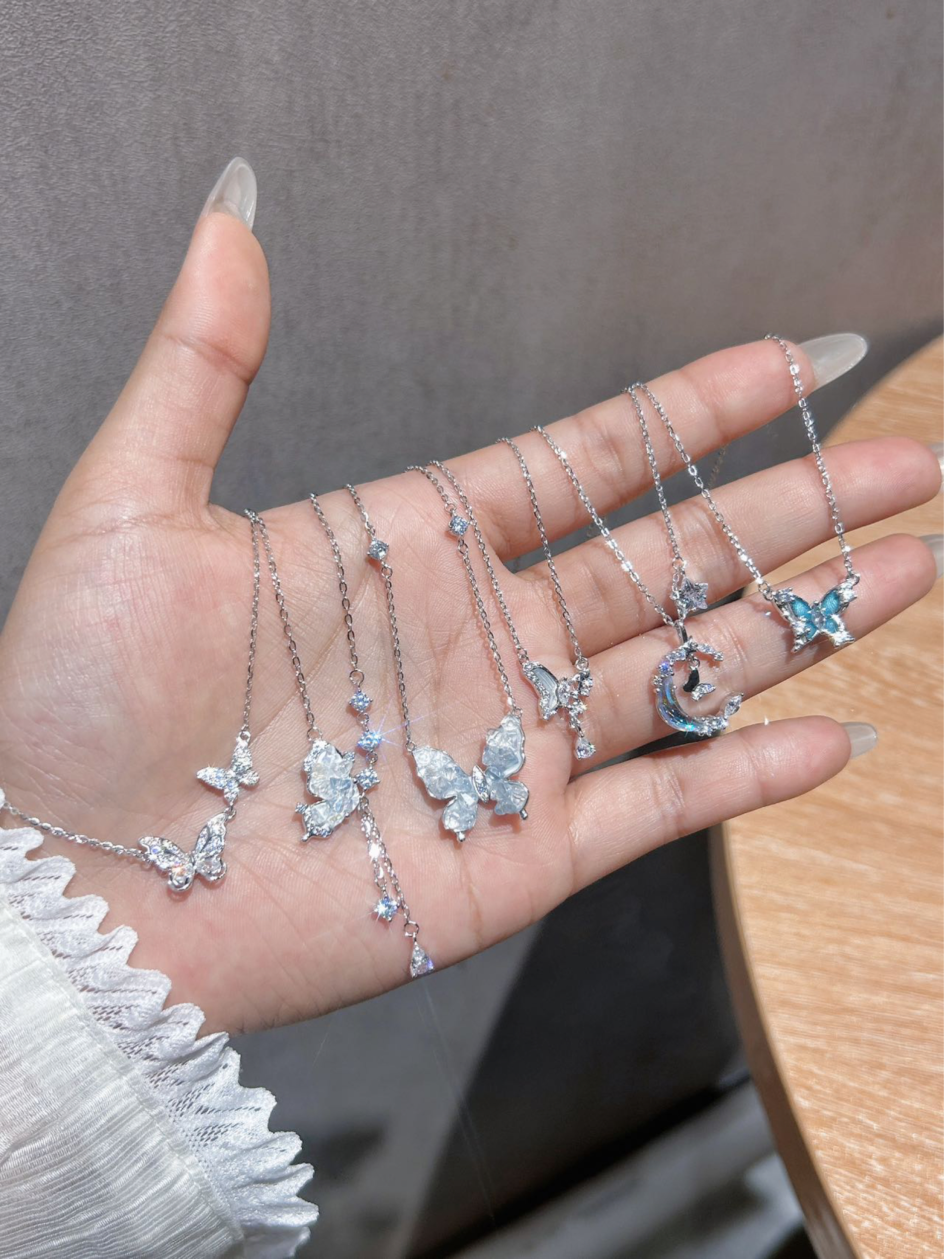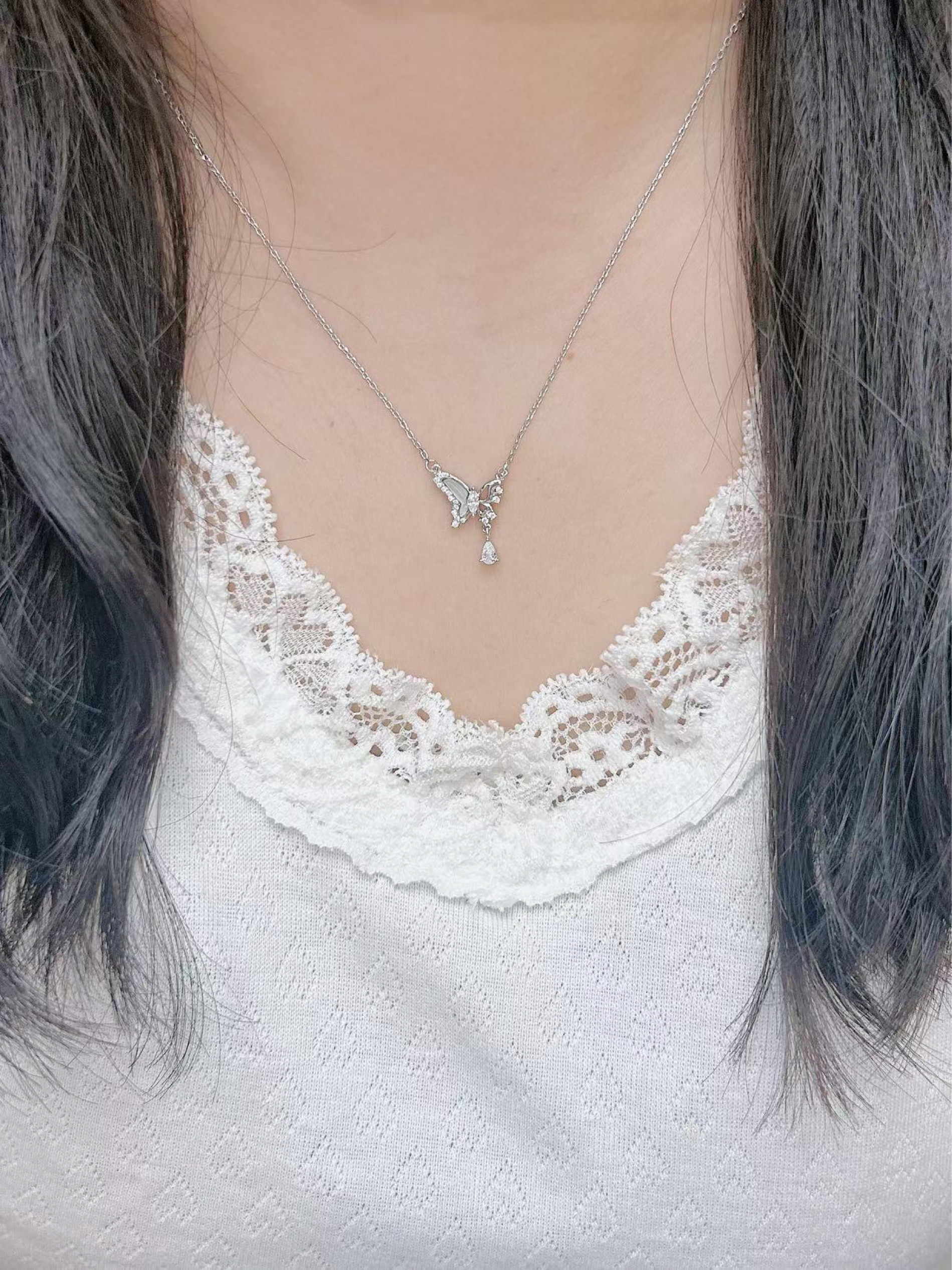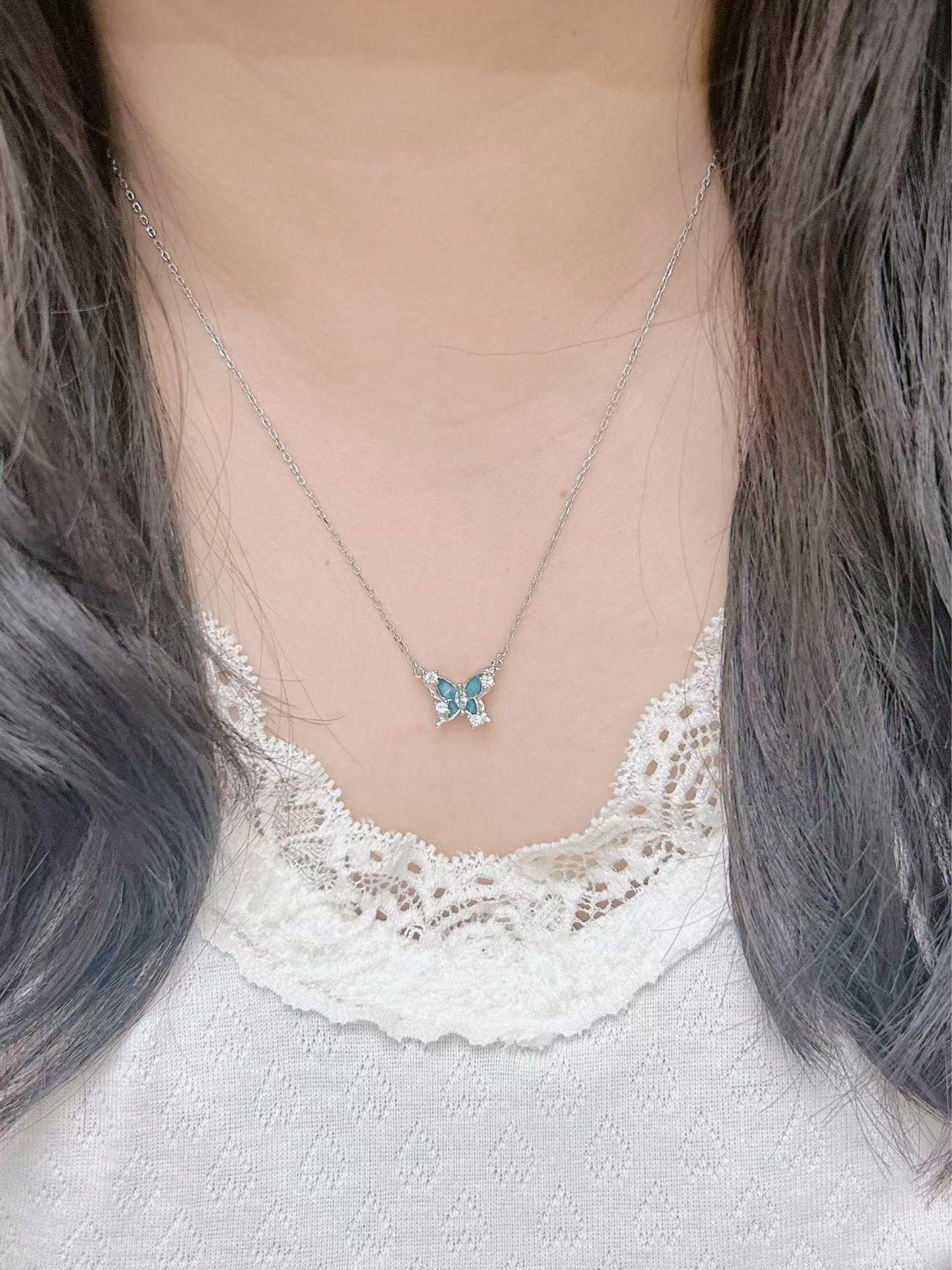 尊嘟是要夸一夸我囤了一整个学期的小蝴蝶项链啦 bling bling滴每一条都是我的心头爱 小蝴蝶上镶嵌了锆石温柔又带点灵动感 我感觉随便搭配衣服都蛮有氛围感呢 戴在脖子上有一种温柔的俏皮公主的 feel