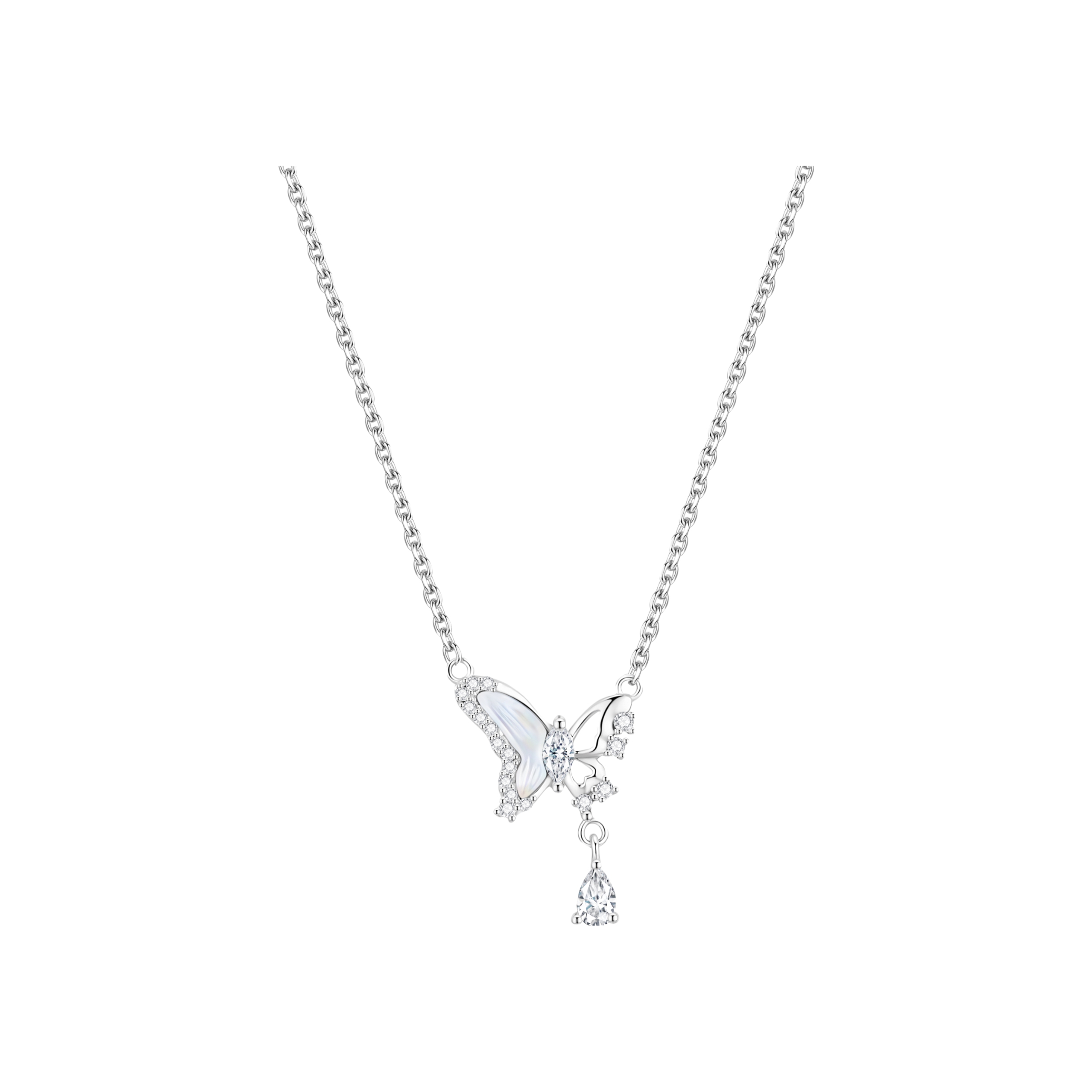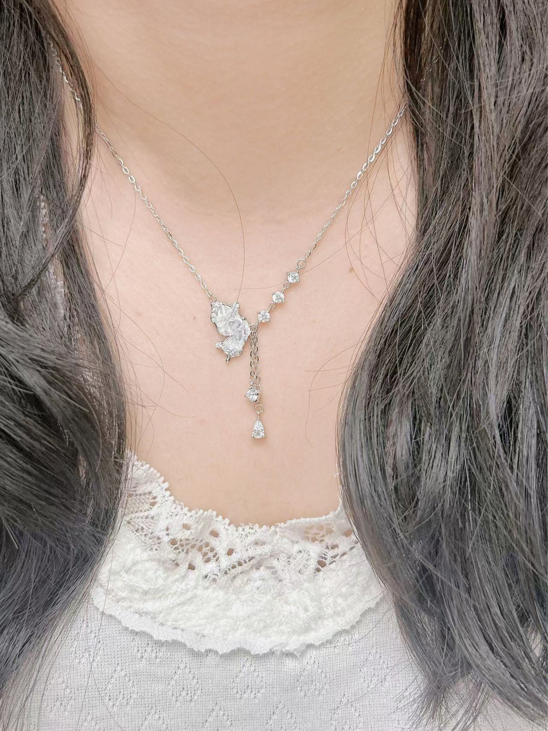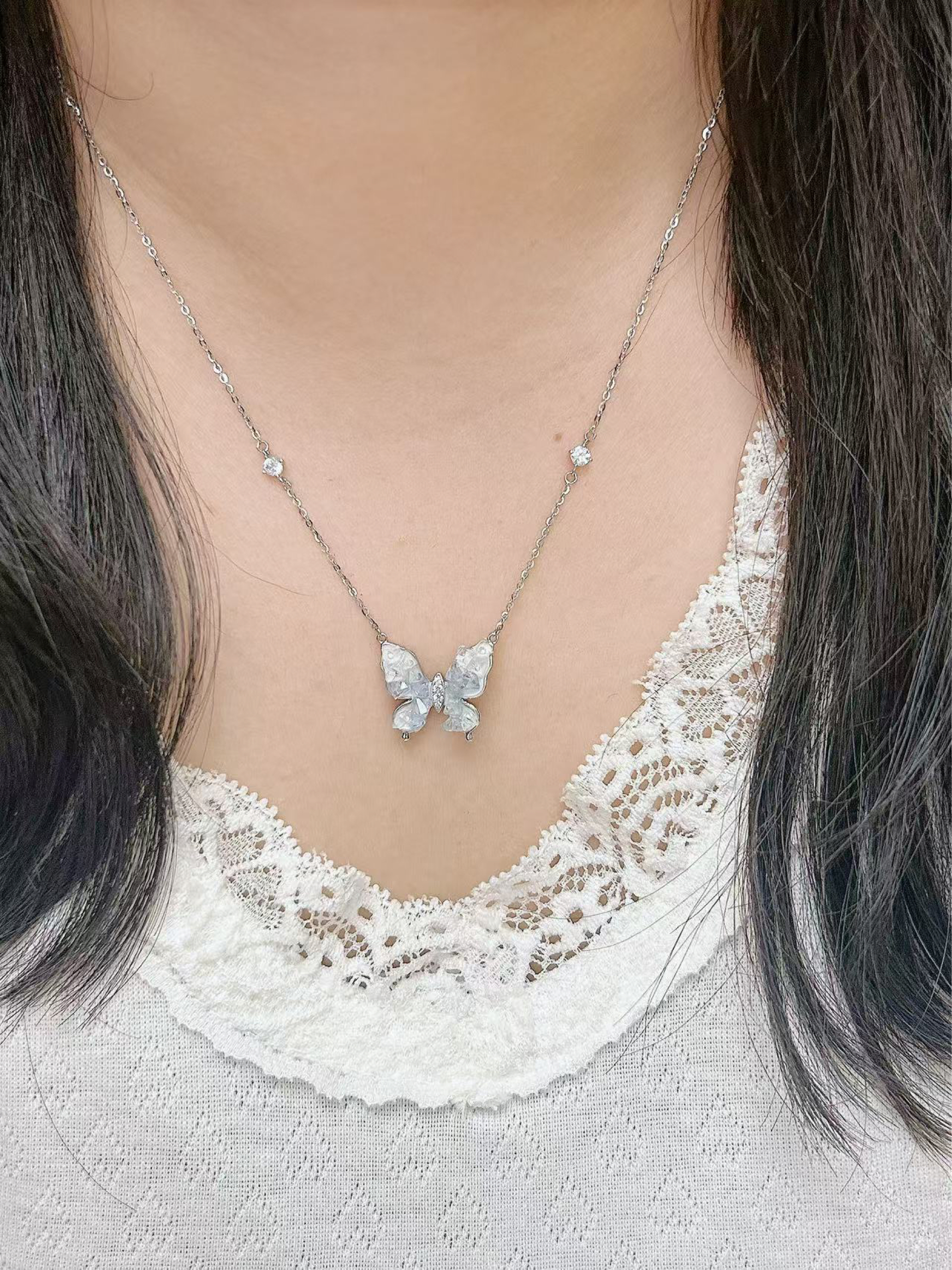 尊嘟是要夸一夸我囤了一整个学期的小蝴蝶项链啦 bling bling滴每一条都是我的心头爱 小蝴蝶上镶嵌了锆石温柔又带点灵动感 我感觉随便搭配衣服都蛮有氛围感呢 戴在脖子上有一种温柔的俏皮公主的 feel