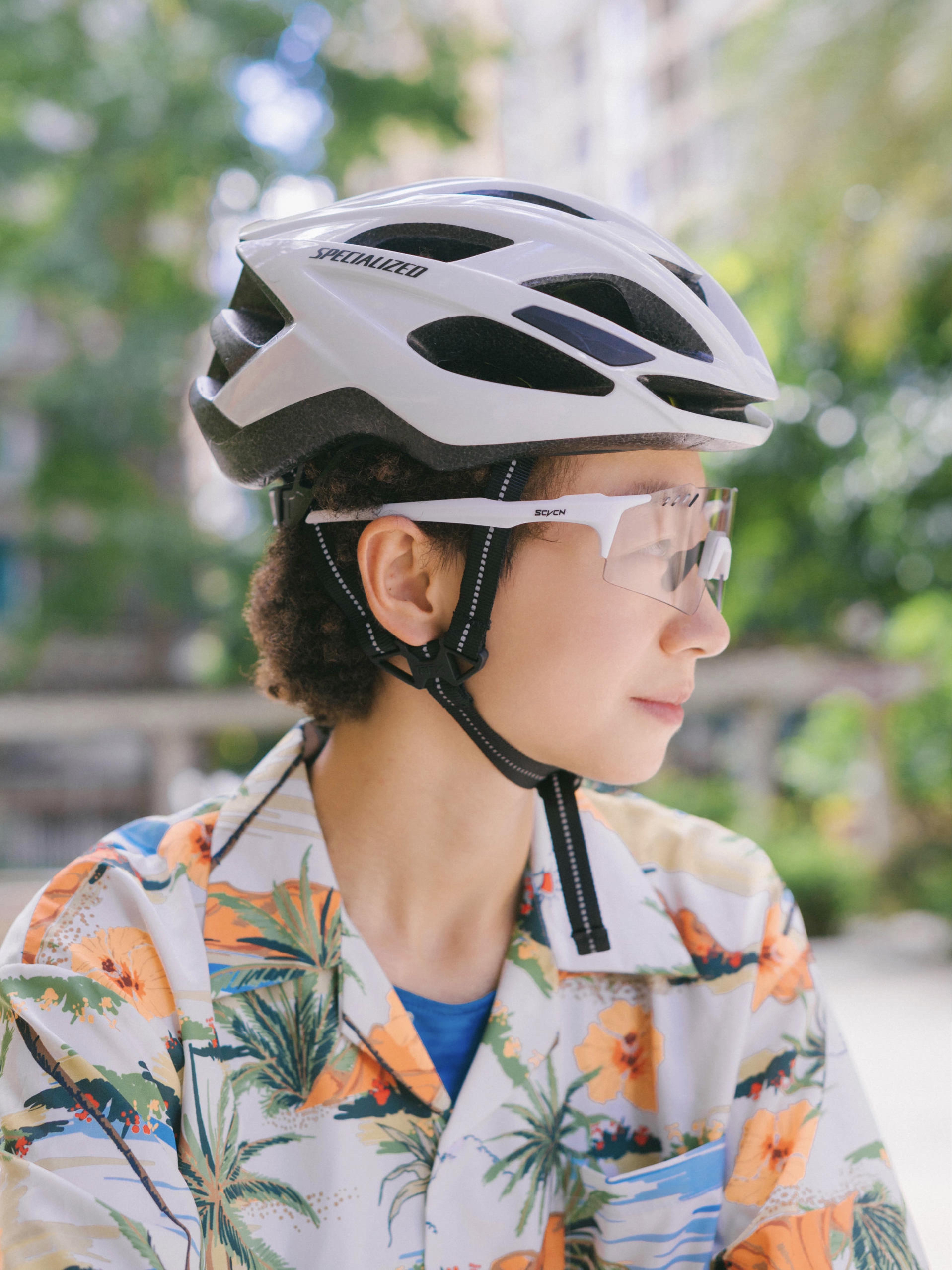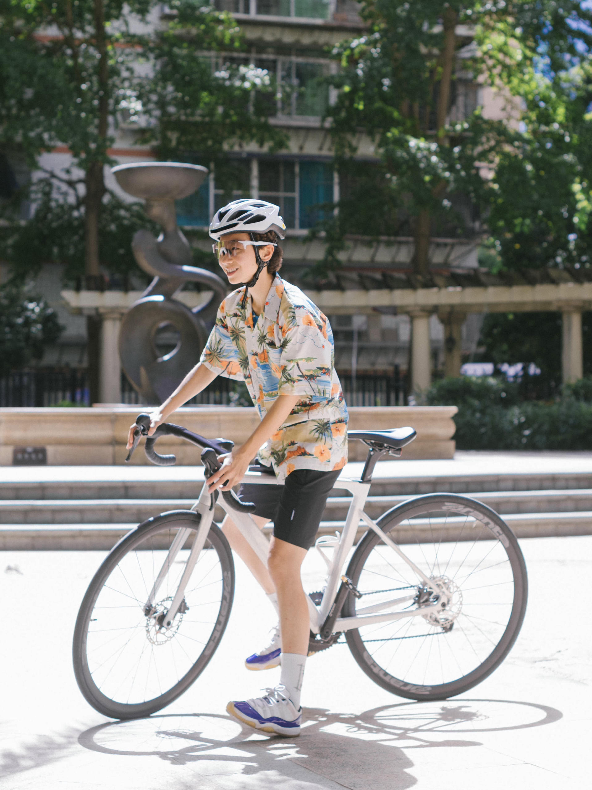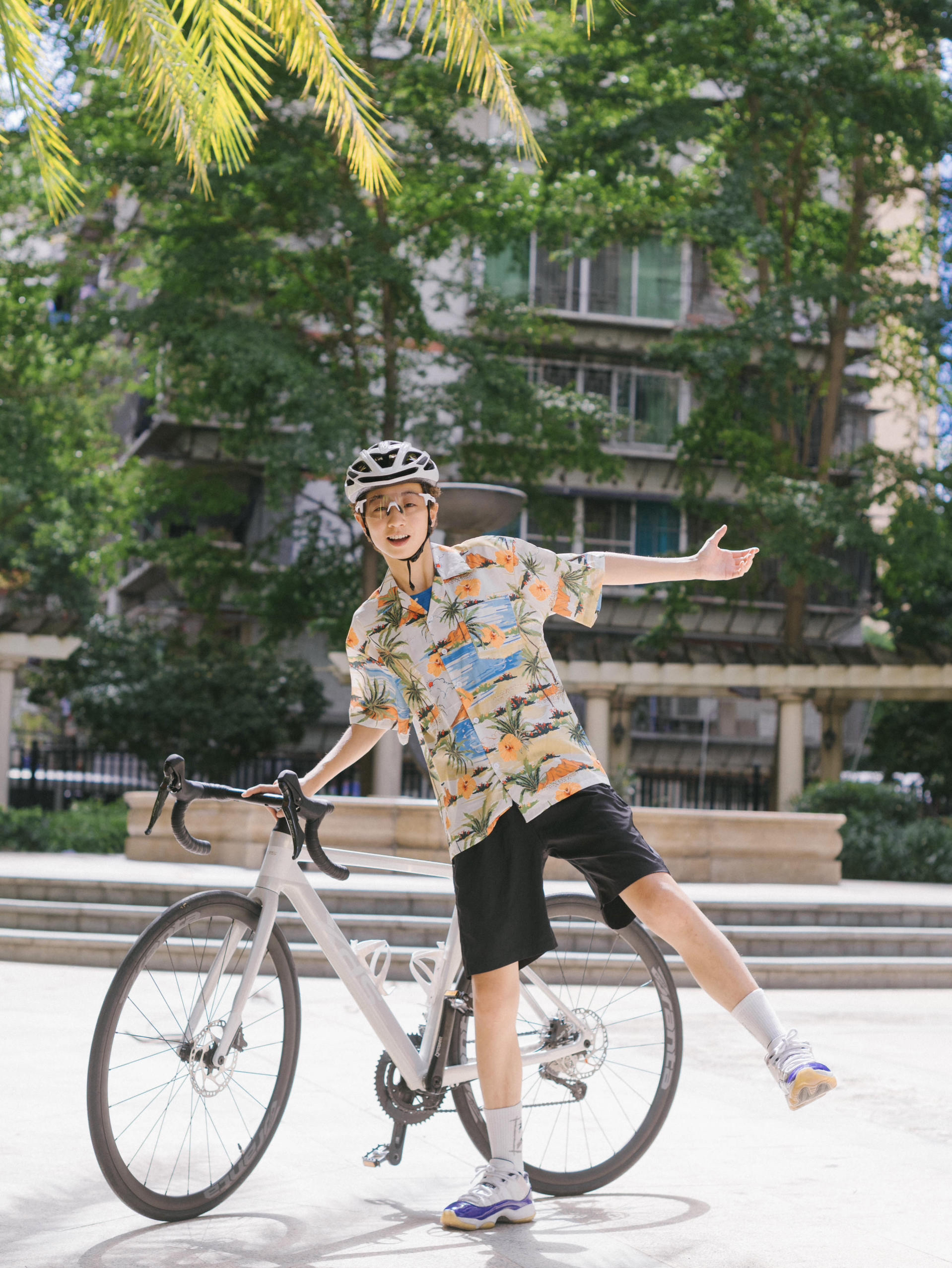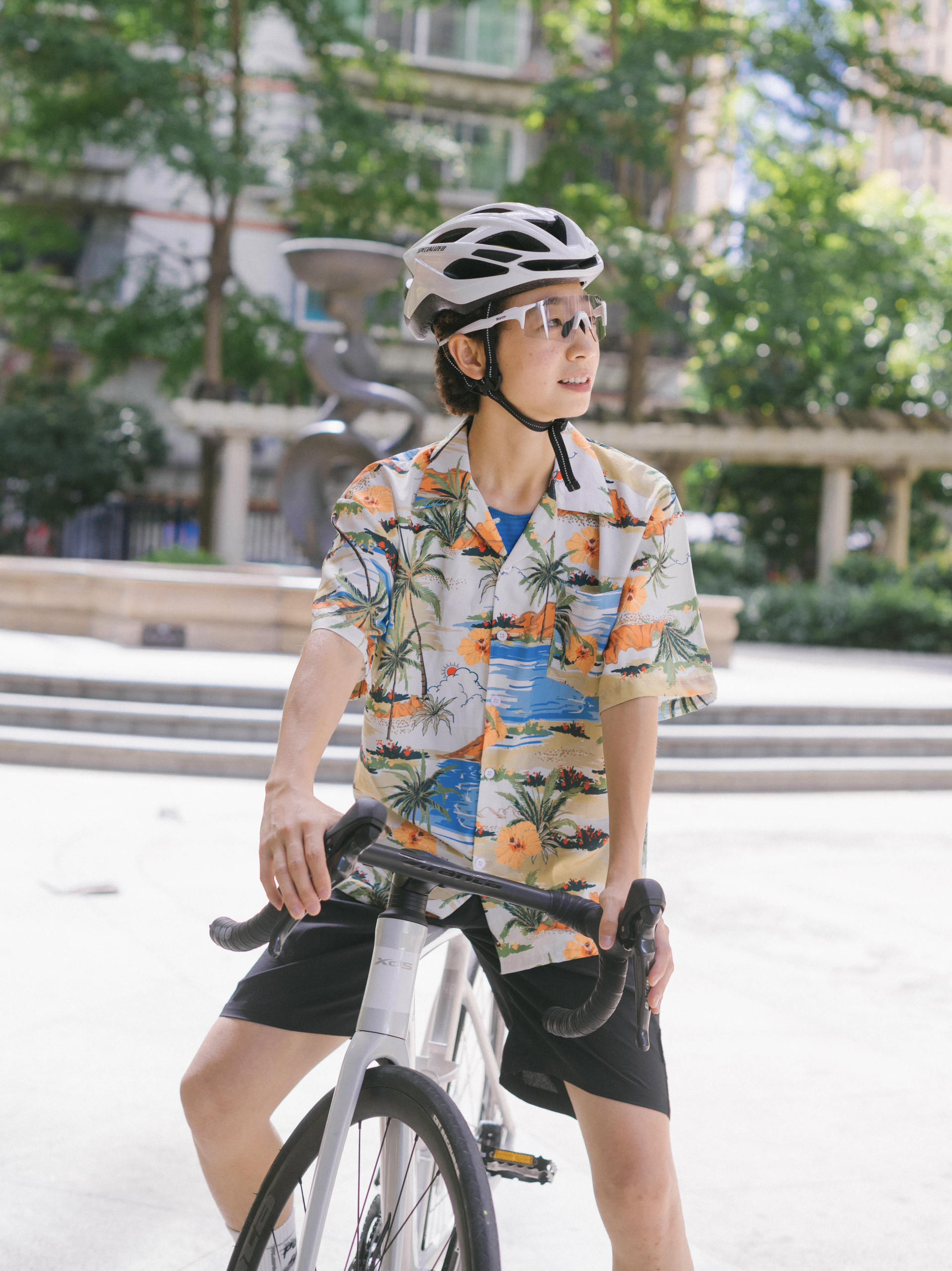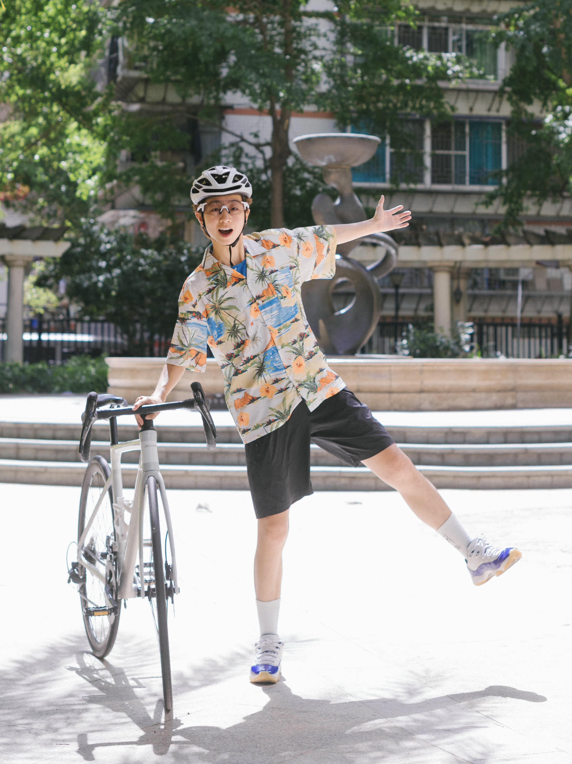 欢迎进入无敌小圆哇子的穿搭分享频道 172CM|55KG 👔:m👖:m|👟:39码 出门啦!今天骑行日阳光正好 上身选了件海岛花衬衫 下身是轻便的运动短裤 简单收拾,戴上头盔和俺的KAPVOE骑行眼镜,镜片变色功能真贴心 室内外场景切换顺滑,骑到树荫下也清晰舒适。 Gogogo出门骑行咯!