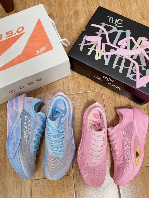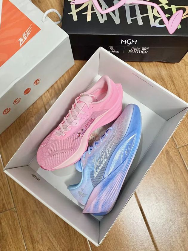 “救命!被这双 「粉红豹×渐变蓝」鸳鸯鞋 拿捏死了! 粉鞋上的粉红豹贱萌又可爱,蓝鞋渐变像把爱琴海踩在脚下,左右脚完全不同风格,出街直接杀疯—— 跑步时,网面透气到能听见风在鞋里冲浪🏄♀️ 鞋底弹得像踩在云朵上,颜值和性能居然能两头抓! 现在满脑子都是「左脚粉红豹蹦迪,右脚渐变蓝追风」的画面,谁懂这种又甜又飒的炸裂感啊!!”