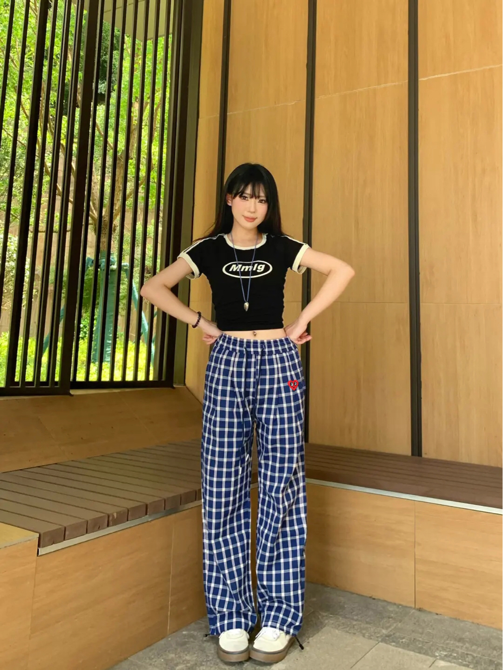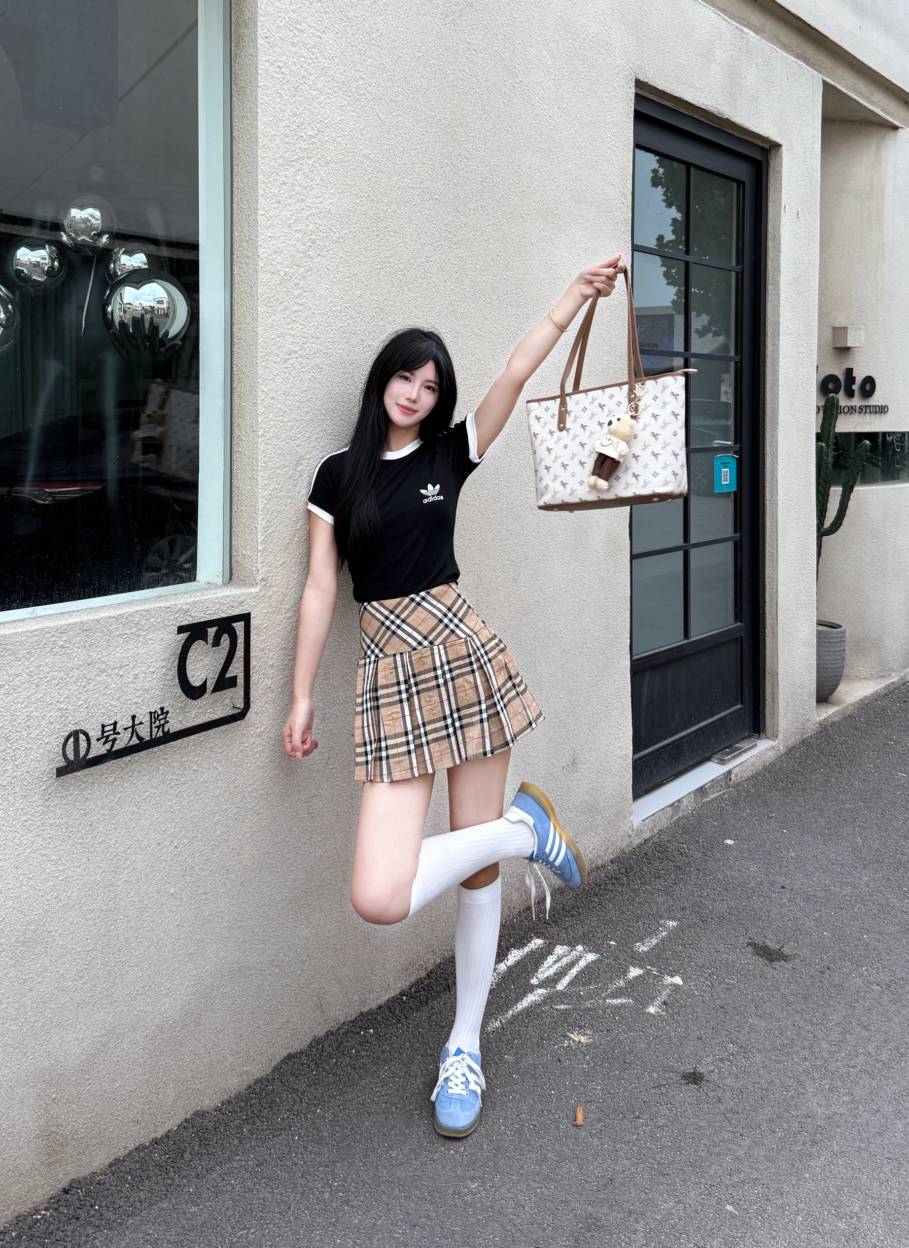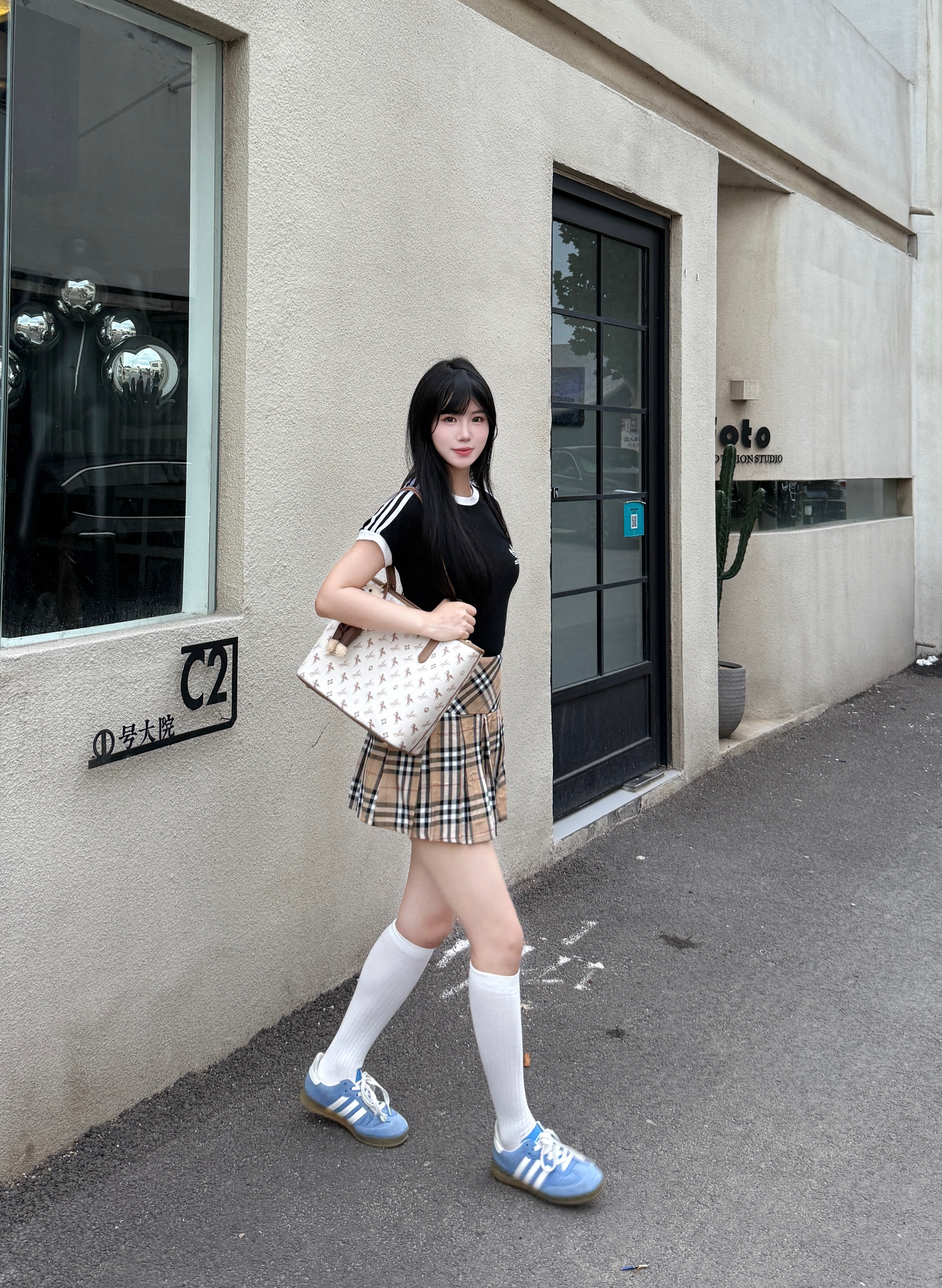 韩女都爱的韩系T恤衫 黑色搭配学院风短裙就很不错哦 再搭配一双经典德训鞋 这一套舒服又出片