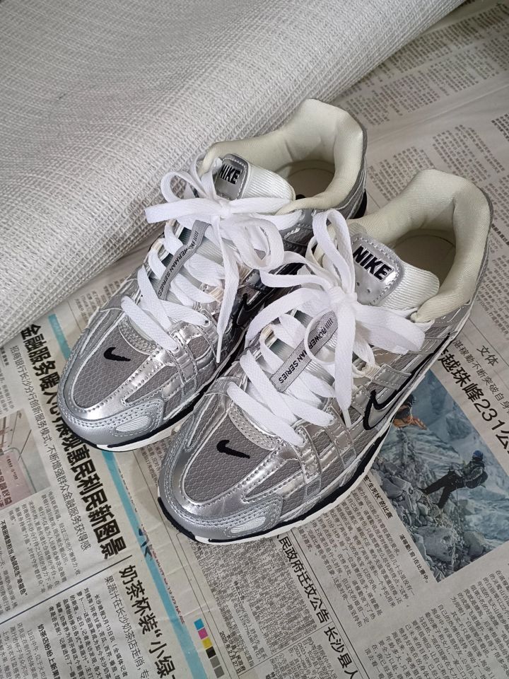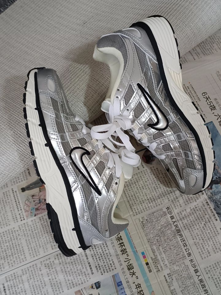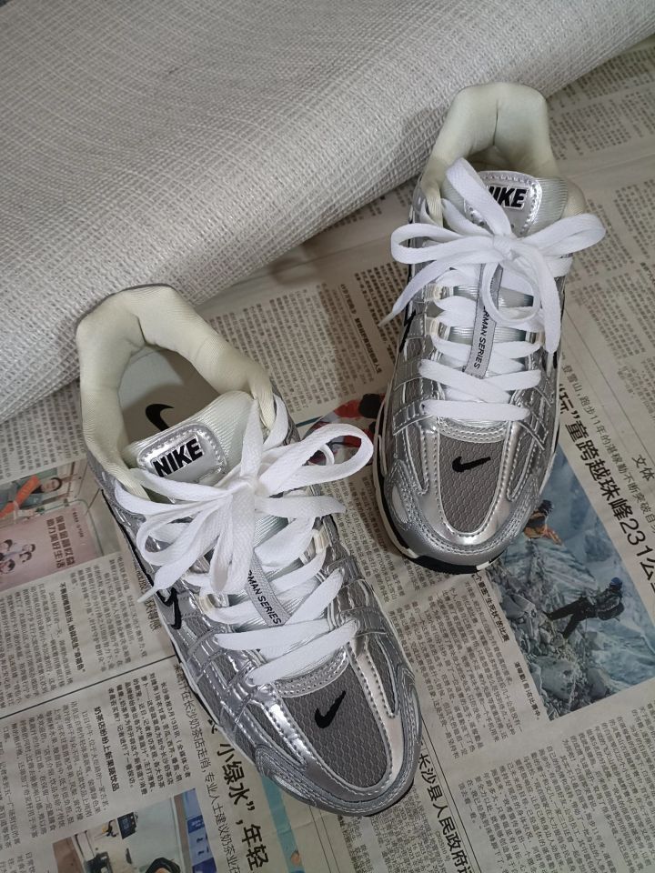 今天和大家分享一双P6000的银子弹配色 ✅鞋面主要以织物网纱为主, 银灰色配色非常酷炫 鞋面的包裹感很自然, 透气性特别好,非常适合夏季穿 着。 ✅鞋子上脚舒适很好,不磨脚不硌脚, 📐鞋子码数标准,不偏码~正常拍。