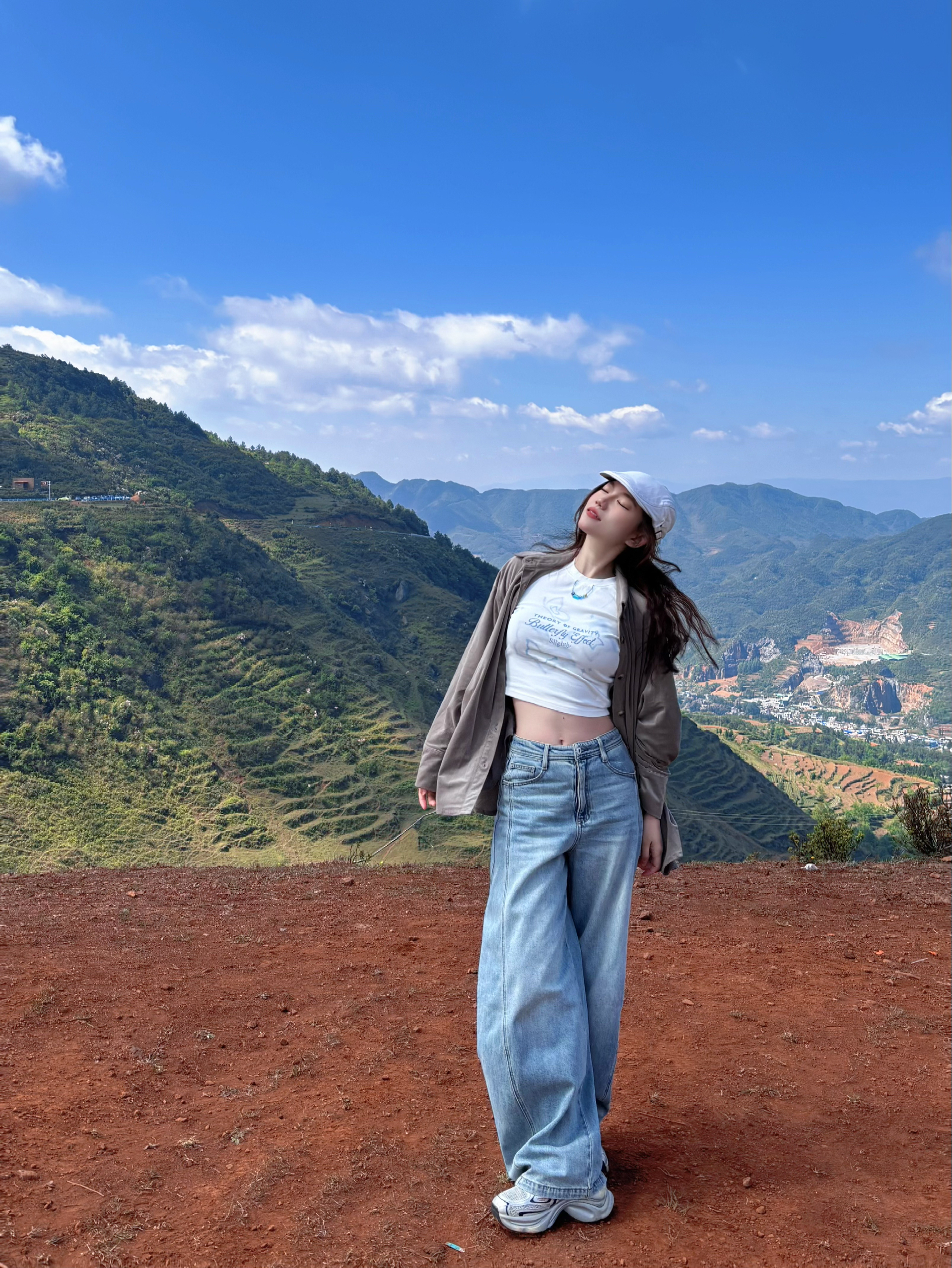 ✨草原ootd来啦 👕乐町小短T➕👖ONLY牛仔弯刀裤➕👟GG-CC老爹鞋 💡既然是去草原那颜色尽量区别于绿色会更出片噢 可选⚪️白色、🔵蓝色、⚫️黑色 即使不化妆也能衬托肤色! 搭配配饰墨镜帽子超级出片🕶️🧢 另外,大山草原需要徒步所以穿裤子更方便🚶♀️ ‼️tips:【上窄下宽】的穿搭法会在视觉上更显瘦 然后,就可以放心撒野啦!☁🐎🐂 (记得做好防晒哦!)️