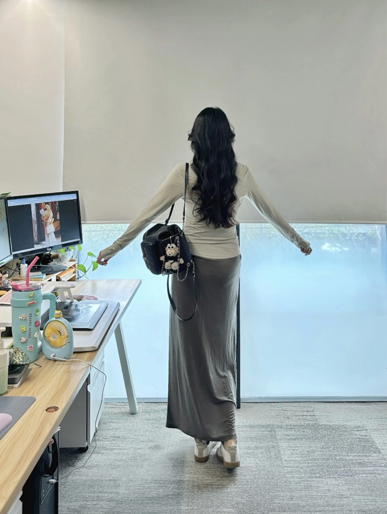 质量很好 滑滑的 穿起来很舒服 视觉上超级修身显瘦 上身非常好看 ☀️夏季必备
