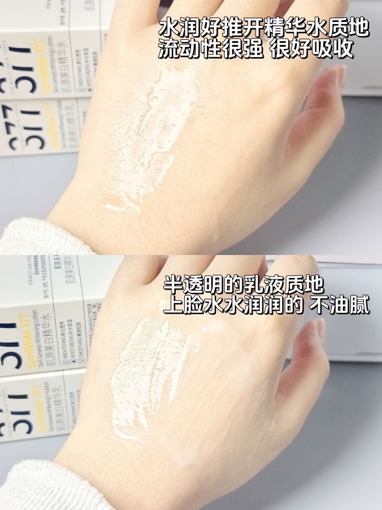 之前去水世界玩儿 没做好防晒😭 回来直接黑了一个度 还好之前跟着博主种草了肌肤未来家的377美白水乳套装 水乳质地是清透水润的 流动性也不错 温和好吸收 用起来也不会黏腻 洁面膏的泡沫绵密又细腻 洗完后也不会紧绷假滑 像我这样的大油皮用都觉得肤感很好 我早晚坚持使用一段时间 尊嘟感觉皮肤水嫩透亮了 夏天晒黑或者脸上有暗沉发黄的姐妹们真的可以试试
