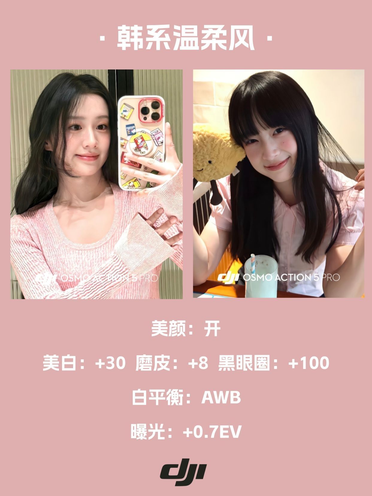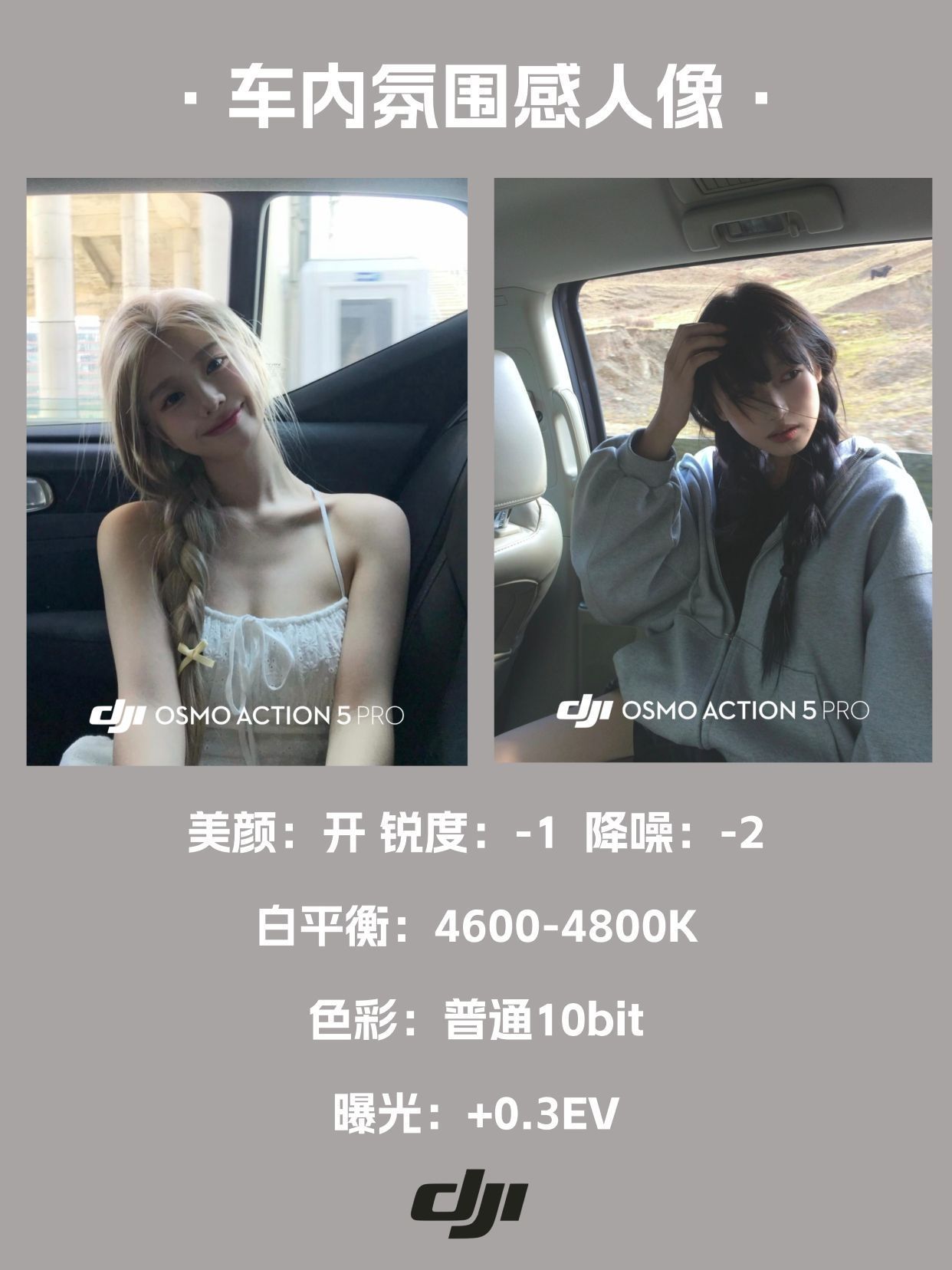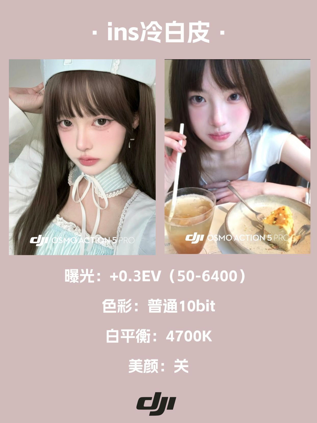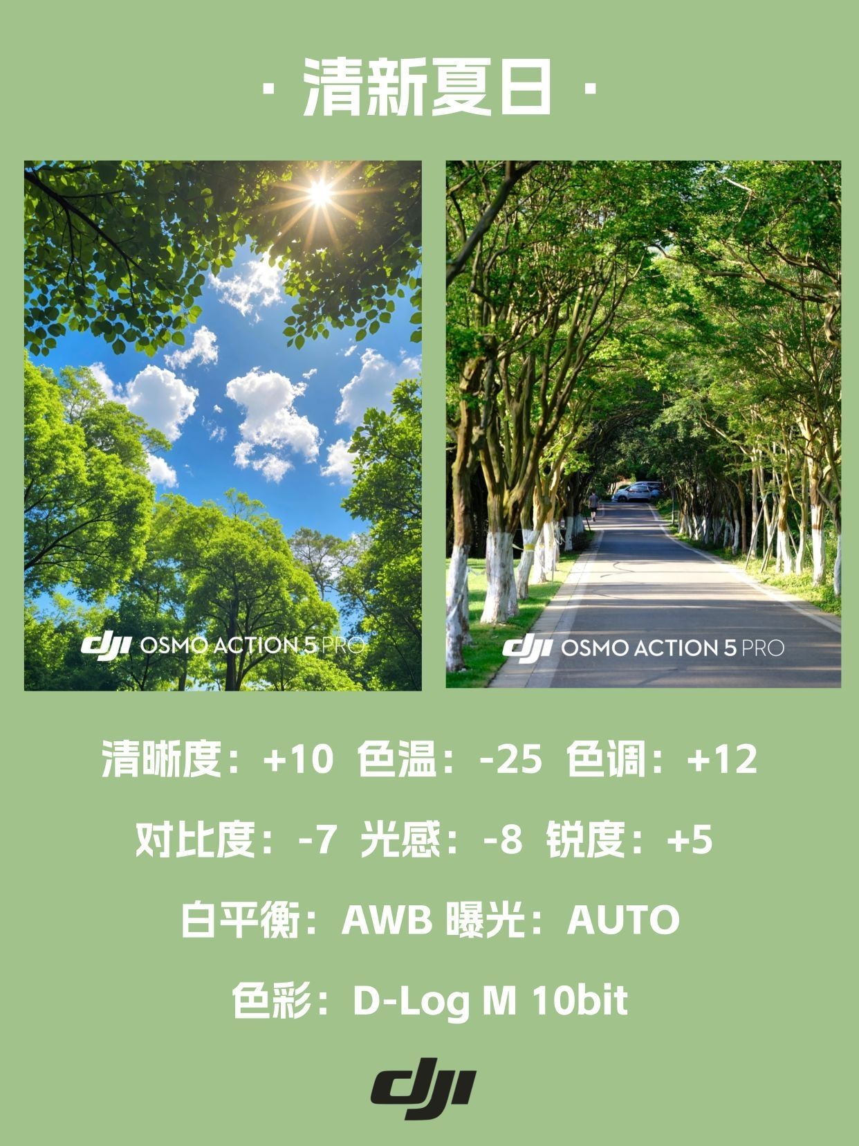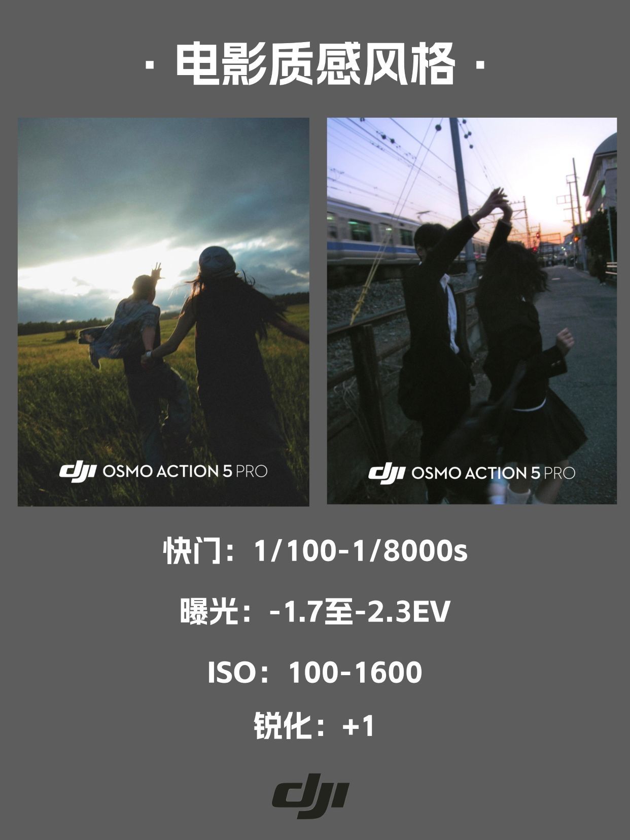 博主为大家整理了大疆action5pro八个万能公式 1⃣️ins冷白皮风 2⃣️食欲感美食 3⃣️清新夏日 4⃣️朗朗晴天 5⃣️演唱会模式 6⃣️韩系温柔风 7⃣️车内氛围感人像 8⃣️电影质感风格 宝子们快收藏起来吧,从此秒变专业摄影师哦! 再也不用为不出片而烦恼啦! 现实明暗光线均有不同,可自由调节参数哦!