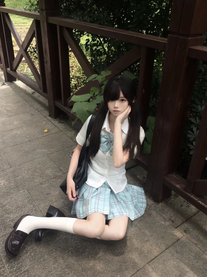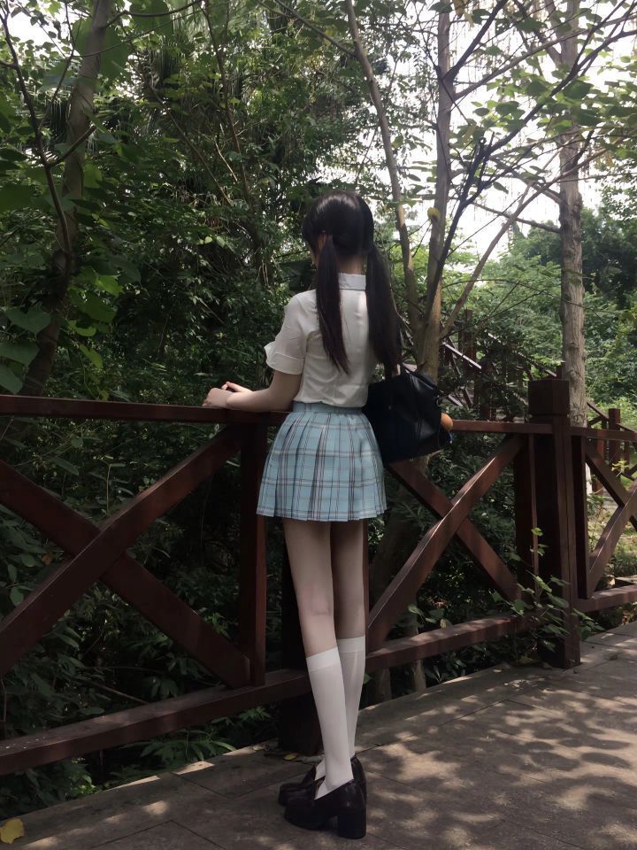 救命!这套JK穿搭把青春感锁死🔒 白衬衫+浅蓝格裙,配上同色系领结,清爽又治愈💙 小腿袜+小皮鞋,妥妥日系校园女主,公园拍照超出片,学生党闭眼入✨ #JK穿搭 #校园风 #清新穿搭