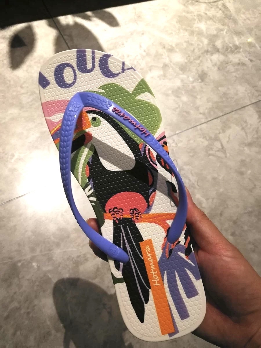 这双人字拖真的好好看啊!! 配色真的超级夏天 很亮眼!! 而且穿着真的好舒服啊!! 底是那种软软的材质而且不会磨脚!! 穿拖鞋最主要的一点还有不臭脚!! 真的很怕买到会臭脚的人字拖!