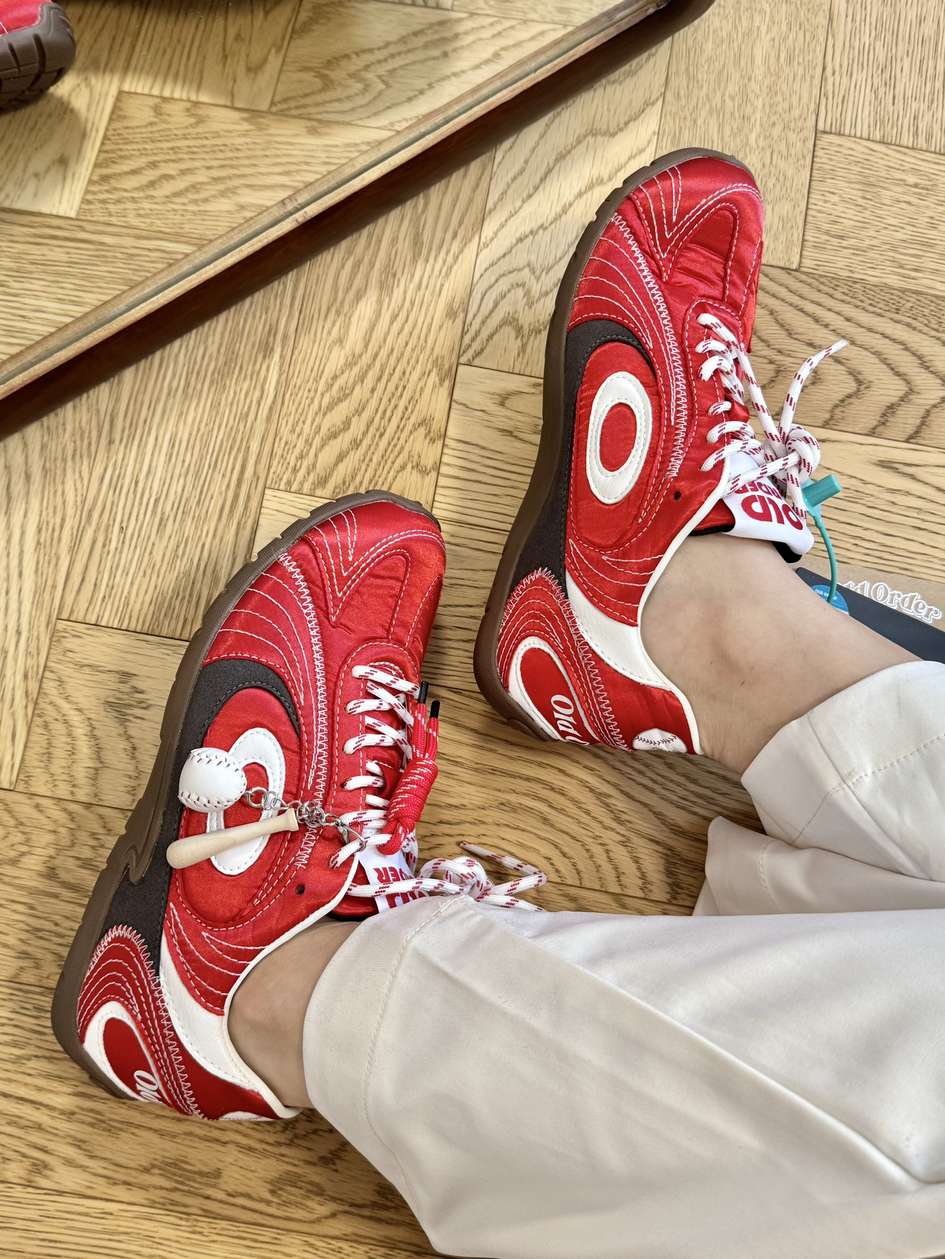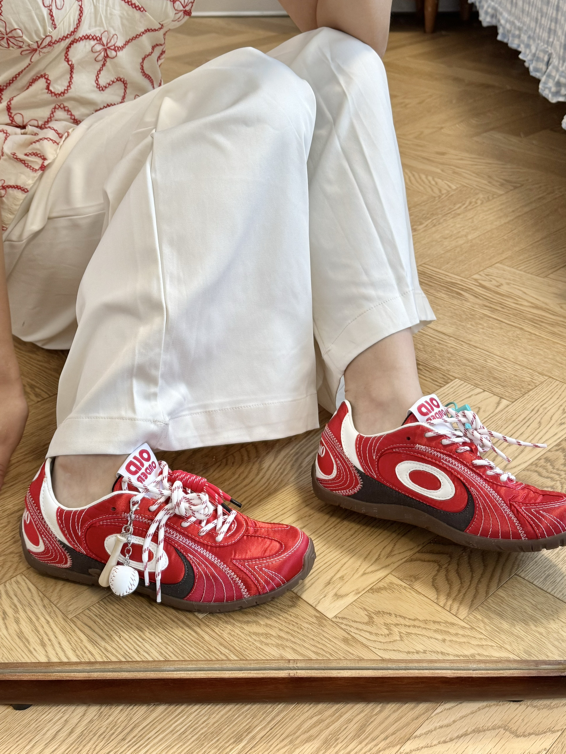 看到好多美女姐妹都在穿小红鞋 马上给自己也安排了一双~ 不得不说 红色真的是穿搭的点睛之笔🤩 鞋是缎面的还带有光泽 吼吼看呀 小棒球挂件可可爱爱的 好喜欢🥰 看着是薄底鞋,但鞋垫有微微增高也是很贴心啦 穿上也蛮舒服的 鞋码正常选就好哦~