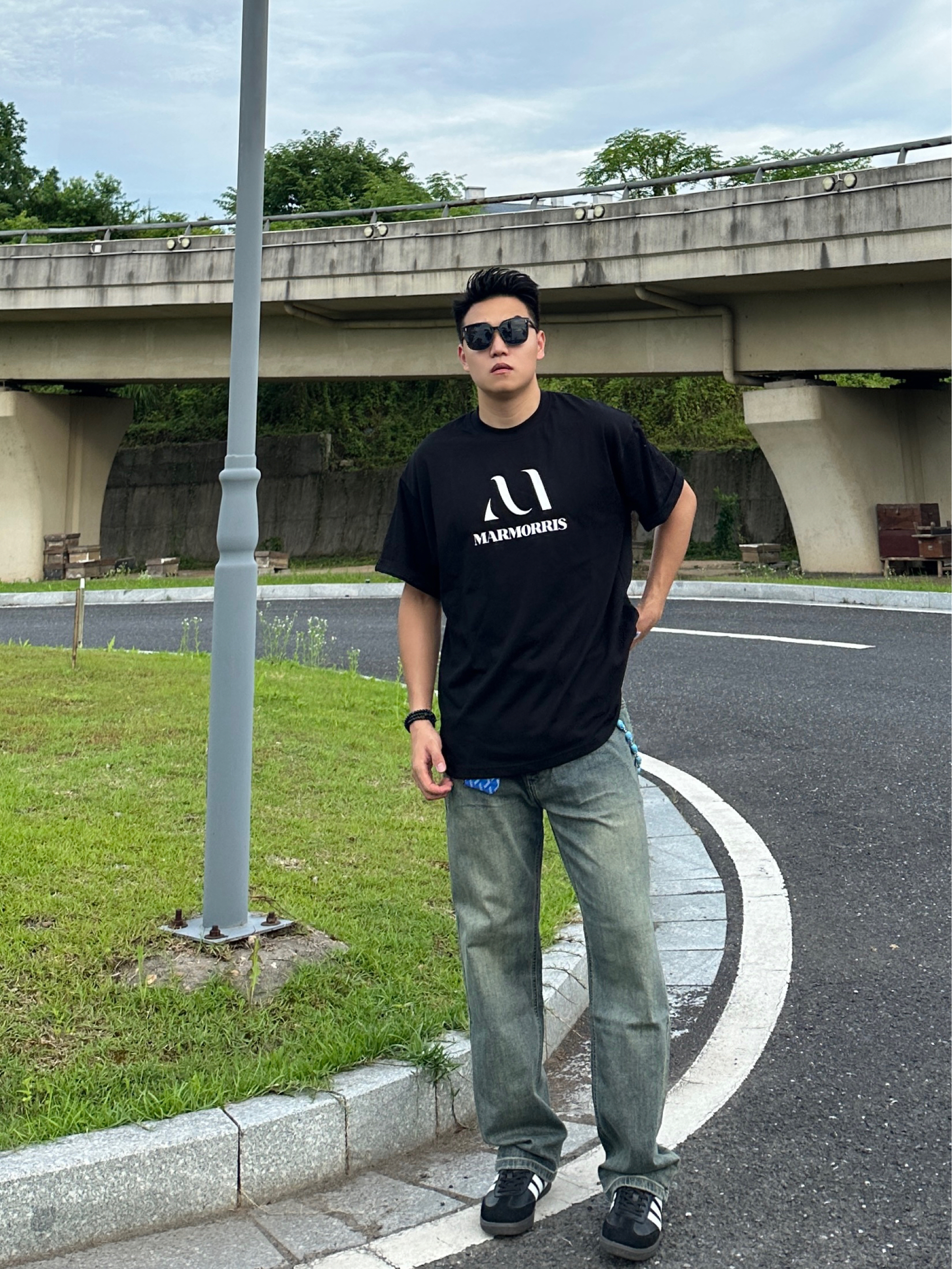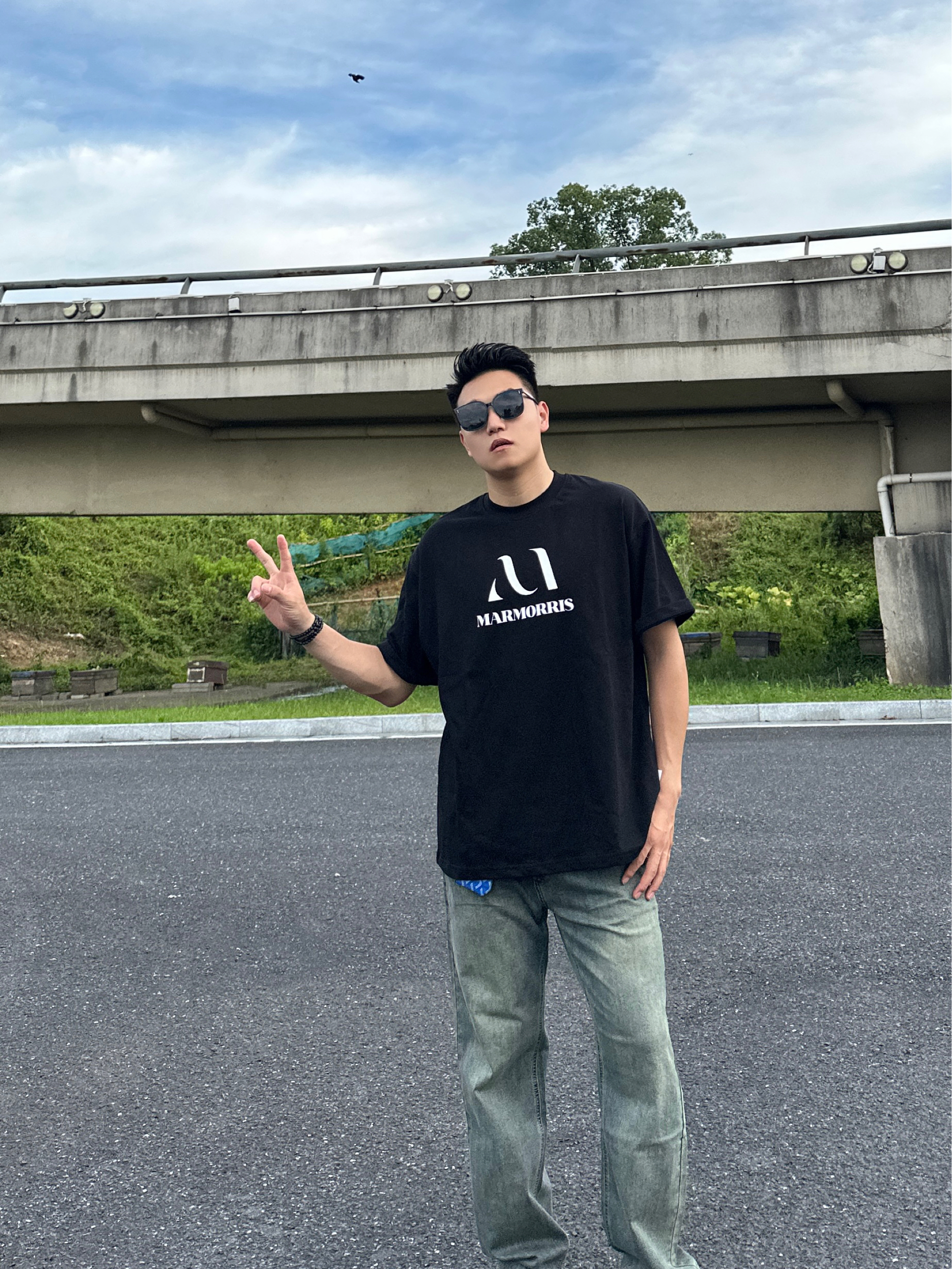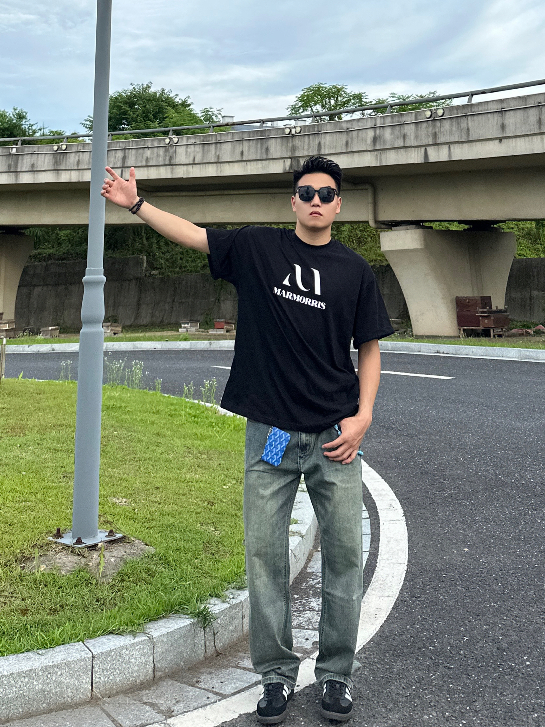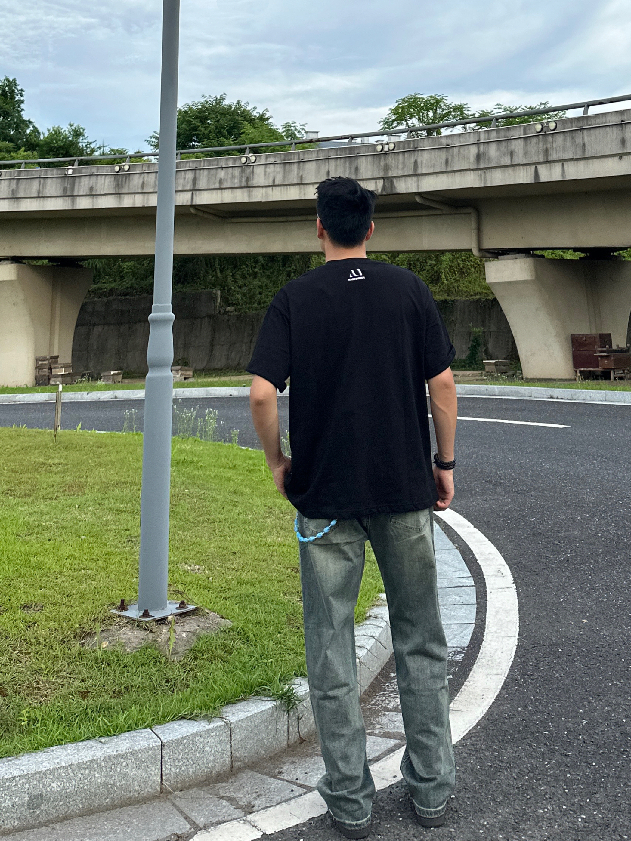 夏天就要美式复古出去炸街 一件黑色基础印花T恤 胸前的logo字母印花简约百搭且时尚 版型宽松廓形 穿起来利落板正 搭上一条复古做旧牛仔裤 水洗做旧的复古味十足 颜色也是恰到好处 很有质感 耐磨耐造 直筒版型很nice! 配饰搭上裤链和钥匙包点缀 回头率直接拉满了 真就硬帅没得办法哥们🔥