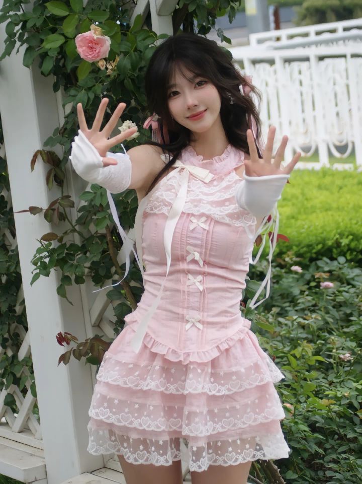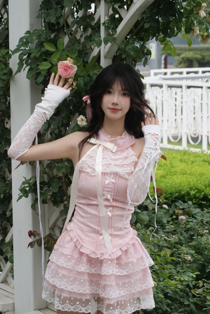 这件粉色挂脖裙简直是甜心炸弹 蕾丝花边与蝴蝶结元素 满满都是少女的浪漫与温柔💕 搭配上白色长手套 仿佛从梦幻花园中走出的公主 谁能拒绝这么甜美的风格呀~ #粉色穿搭 #甜美风穿搭 #少女穿搭