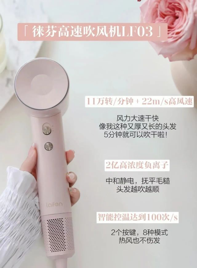 最近气温飙到35℃,每天洗完头,最痛苦的不是水多,而是吹风机那股热风迎面袭来,脸一红、汗一冒,整个人直接原地抓狂。 尤其我这种细软长发,不吹干容易塌、吹太久又热出一身汗,真的是左右为难。 直到前不久用了朋友的徕芬高速吹风机LF03,才发现夏天原来可以优雅吹头发。 它的风特别有劲,22m/s的高速风速,风量集中又均匀,不是那种乱飘的虚。 吹到发根水汽就开始蒸发,不用靠高温硬“烤”干。 每秒100次...