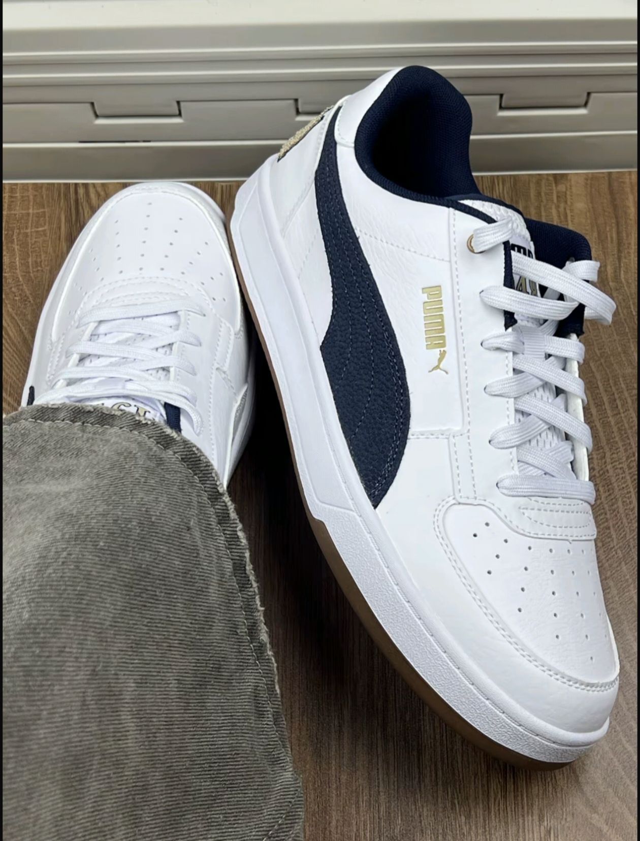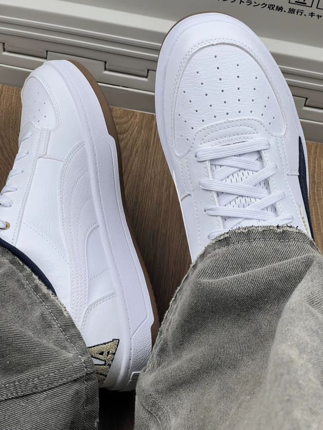 分享下我脚上这双PUMA板鞋 外观上,经典的白蓝配色,搭配金色的PUMA 标志,简约又不失精致,蓝向配色很新颖,让人眼前一亮,很有清新感,鞋面是皮质 的,质感在线,整体鞋型流畅,上脚挺显脚瘦。 优点嘛,就是它真的百搭,不管是搭牛仔裤、运动裤,还是短裙、阔腿裤,都能轻松适配,同常出街怎么穿都不会出错。 缺点也挺明显,刚穿的时候磨脚,特别是脚石跟那块,得贴个创可贴才能熬过磨合期女而且鞋底偏硬,走路时间...