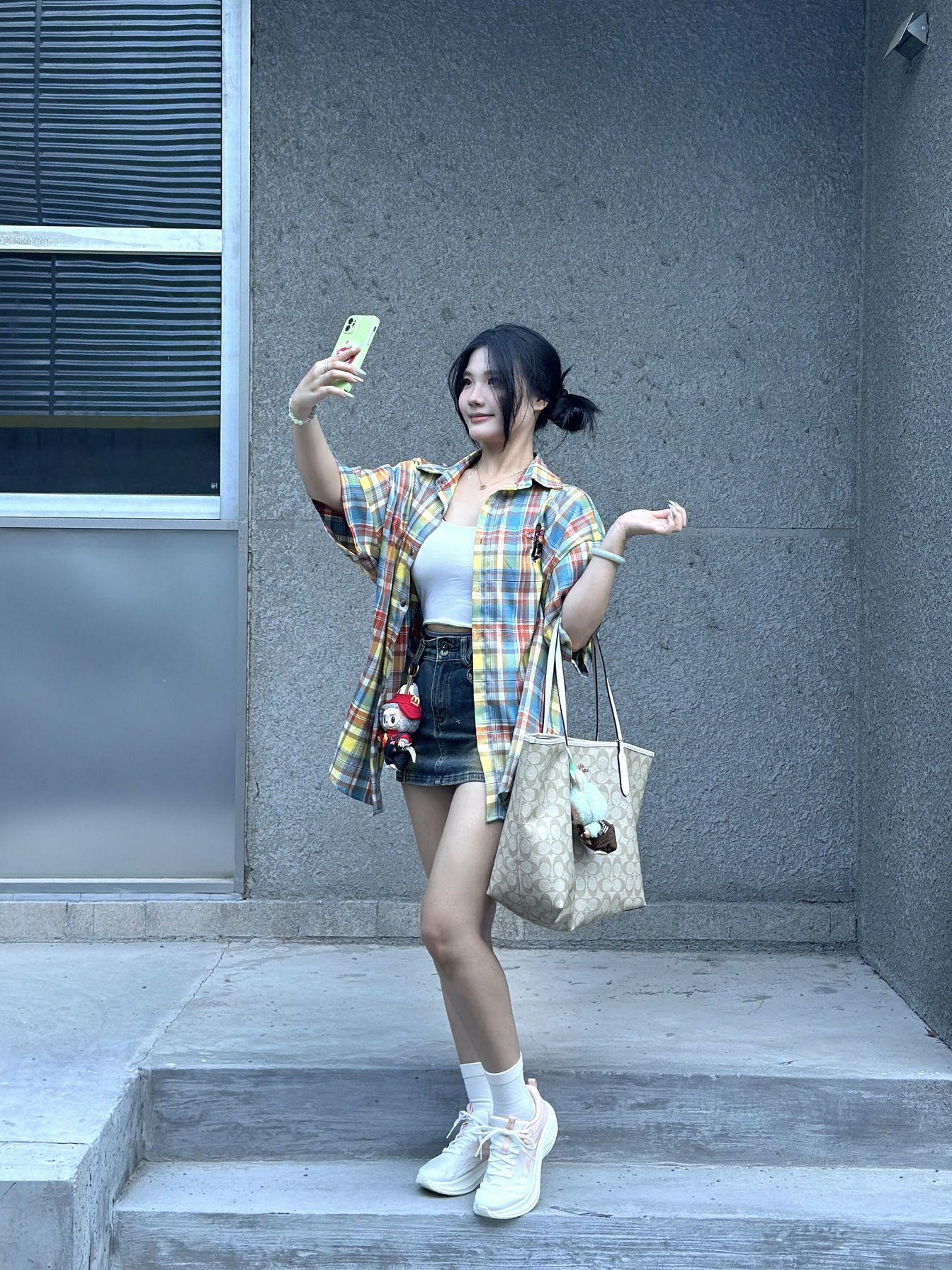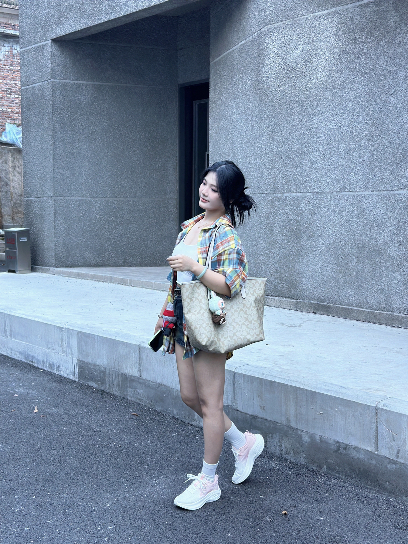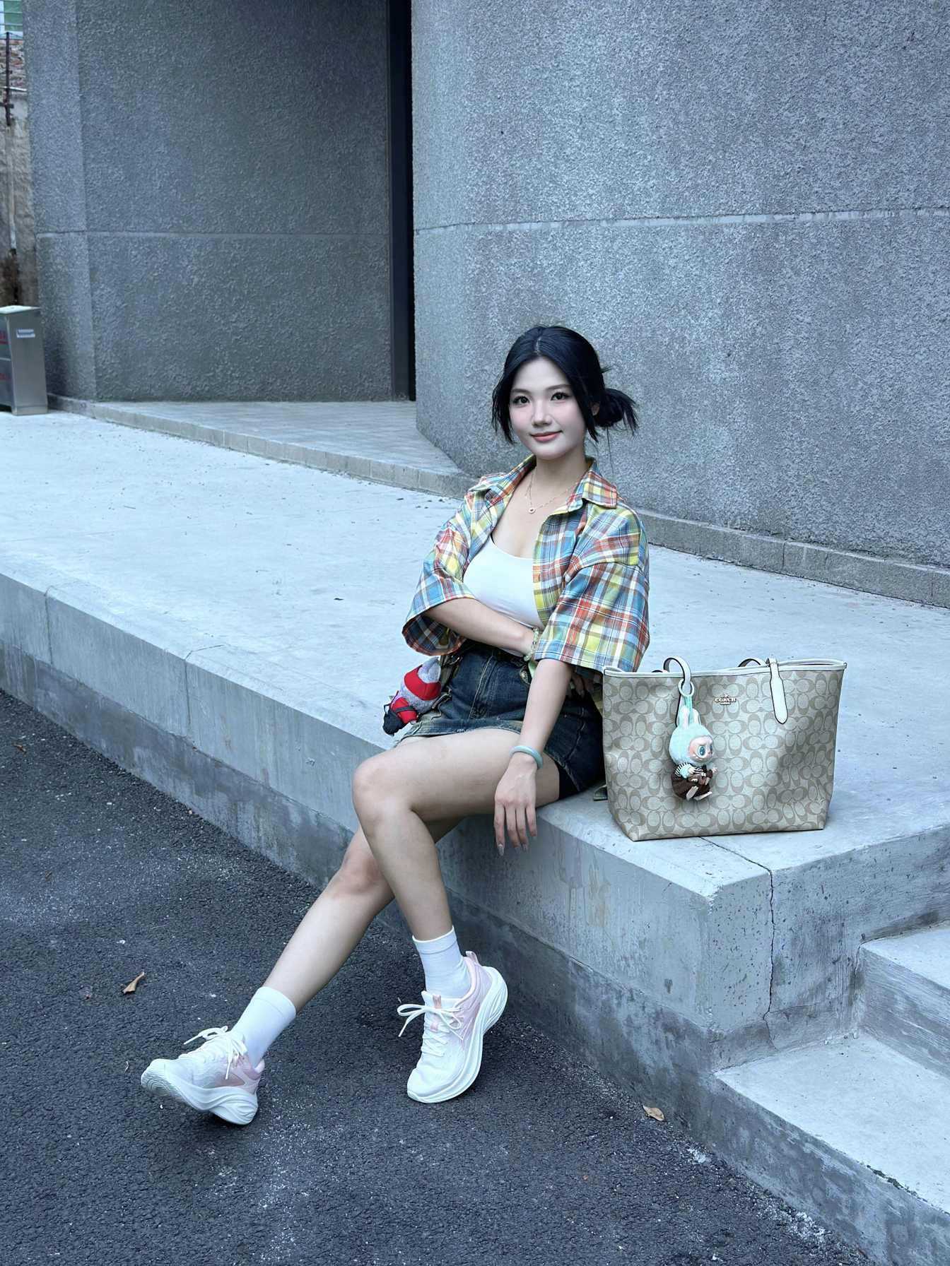 🫧夏天想穿出松弛感,鞋子选对超加分! 分享我最近超爱的这双鞋,浅粉配白色,清爽又百搭,跟我这套格子衬衫 + 短裙的穿搭适配度拉满✨ 脚感也很舒服,走路逛街一整天都不累~搭配白袜子,简约又有范儿,轻松拿捏夏日松弛感,日常出街穿它准没错 ~