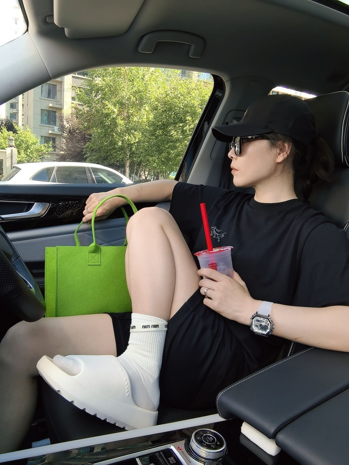 一件黑色短袖 一件棒球帽 一双三厘米的小拖鞋 简简单单出个门