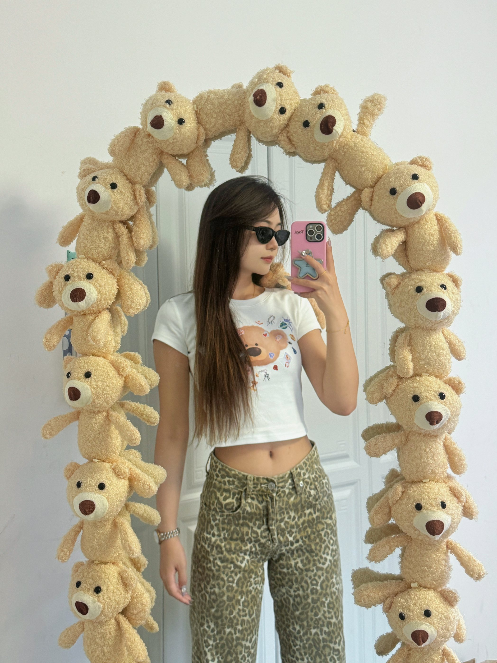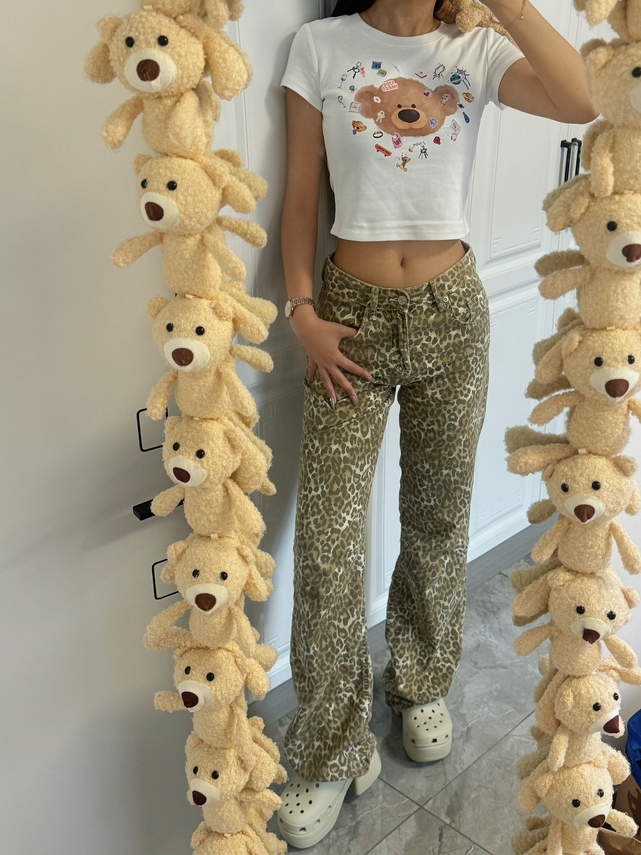 一旦尝试豹纹真的就是爱上豹纹💫 可可爱爱的小熊🐻短袖搭配豹纹裤真的我爱惨了💥 活泼可爱里面夹杂着一丝丝小性感谁会不爱呀🌪️